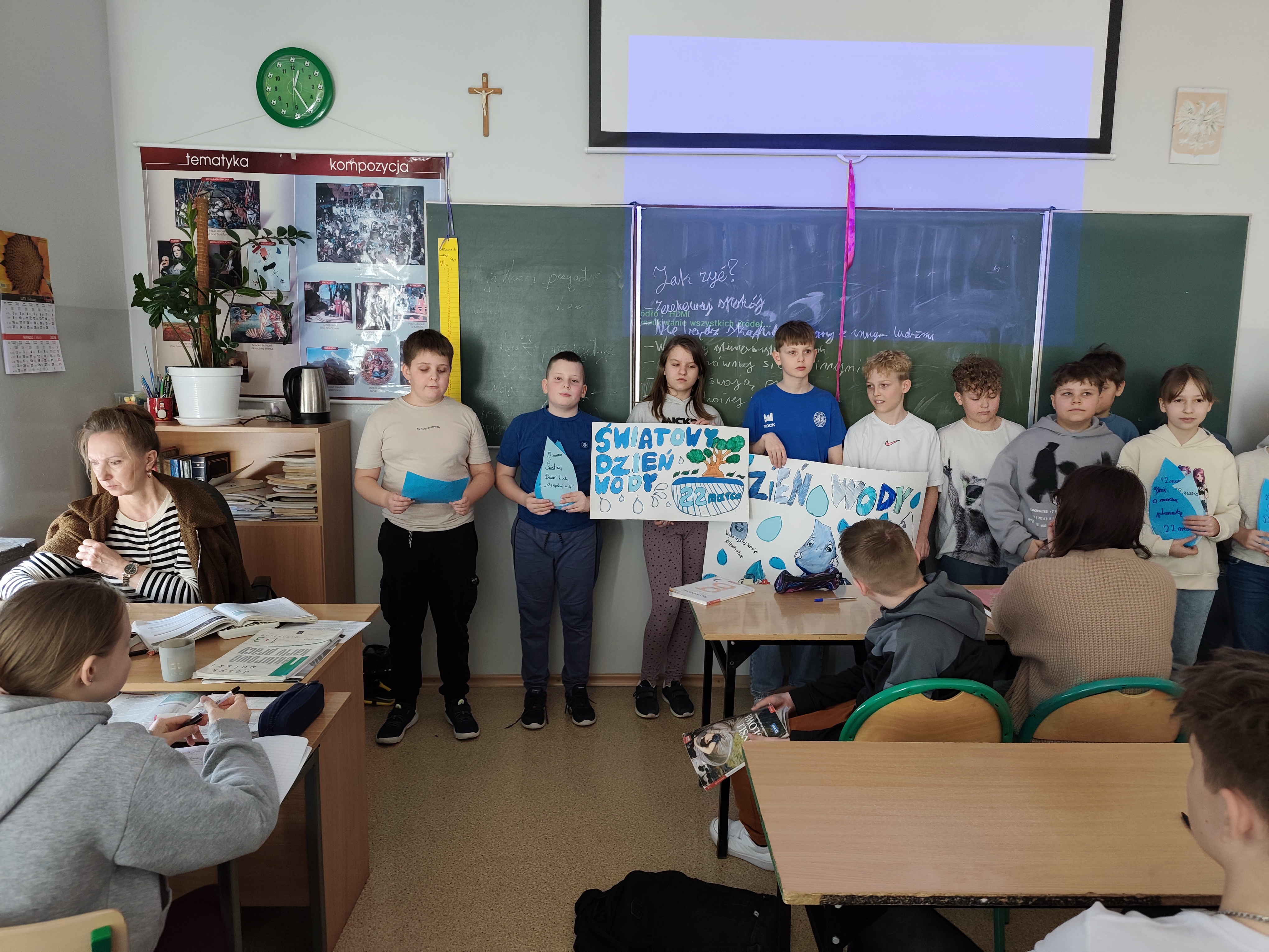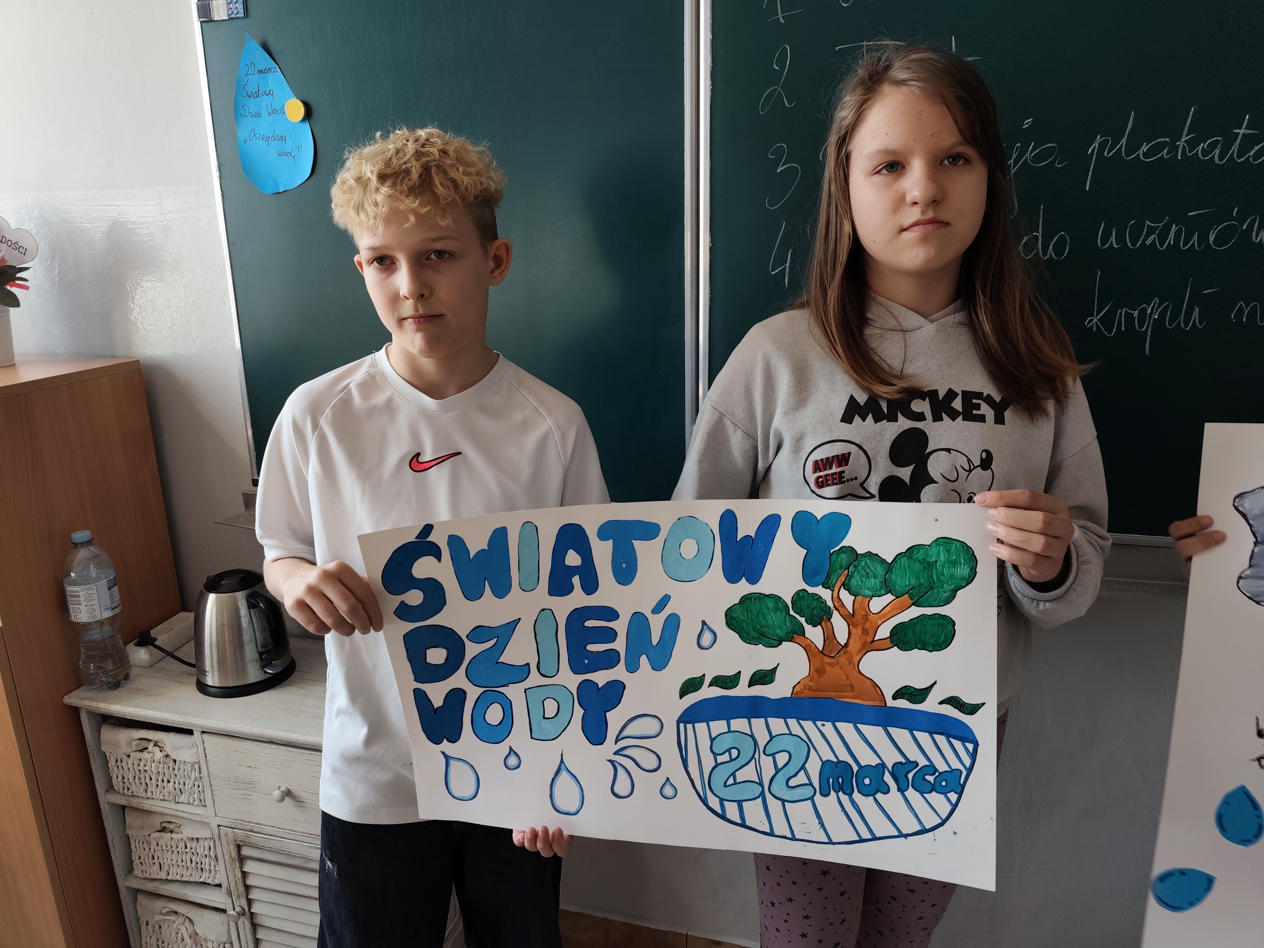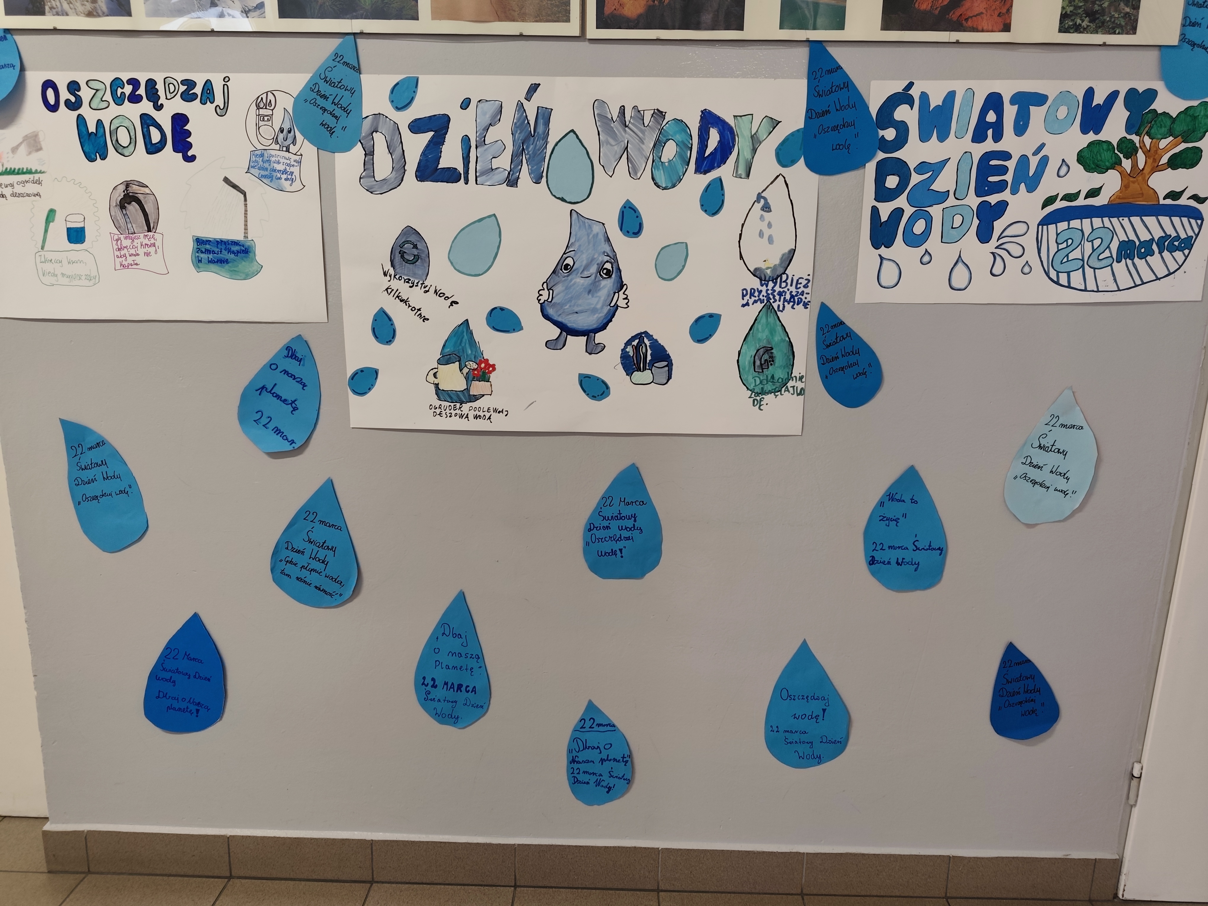 Z okazji Światowego Dnia Wody koło geograficzno-fotograficzne zorganizowało akcję promującą świadome i odpowiedzialne korzystanie z zasobów wodnych. Uczniowie przygotowali plakaty oraz hasła zachęcające do oszczędzania wody, które zostały rozwieszone na terenie szkoły. Członkowie koła odwiedzili także inne klasy, gdzie przedstawili ideę akcji i zwrócili uwagę na znaczenie wody w życiu człowieka oraz konieczność jej ochrony. Inicjatywa spotkała się z dużym zainteresowaniem i była cenną lekcją ekologicznej odpowiedzialności dla całej społeczności szkolnej.
