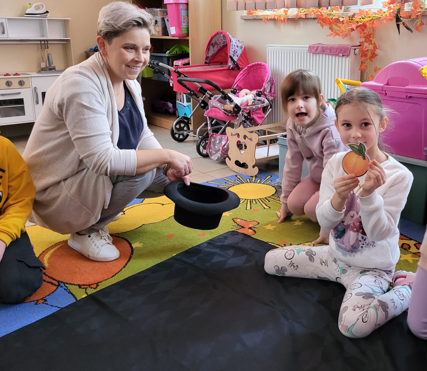 Przedszkolaki z ciekawością brały udział w tradycyjnych andrzejkowych wróżbach: losowanie magicznych karteczek, odgadywały przyszłe zawody czy przekładanie butów dostarczyło im wiele emocji i śmiechu. Każda grupa przygotowała własne zabawy, które pobudzały wyobraźnię i rozwijały kreatywność.