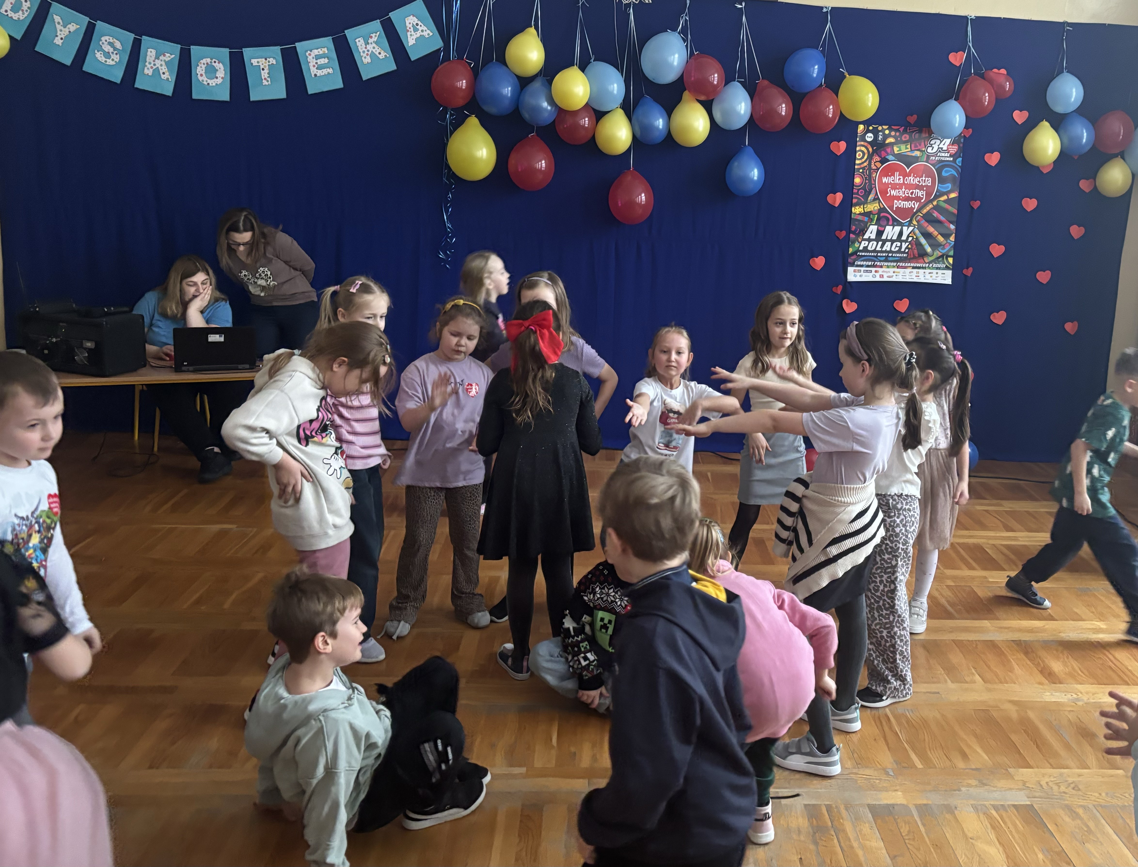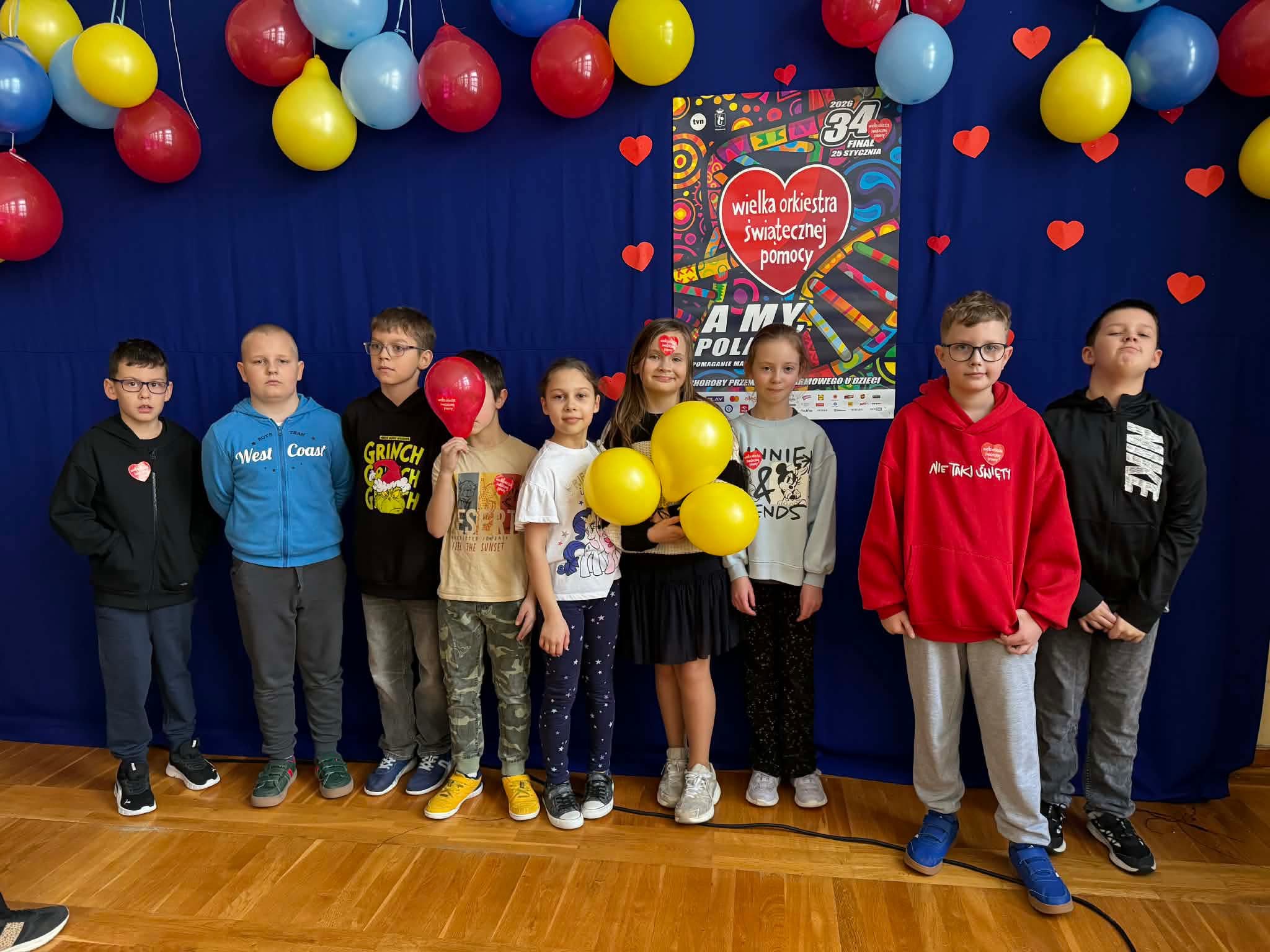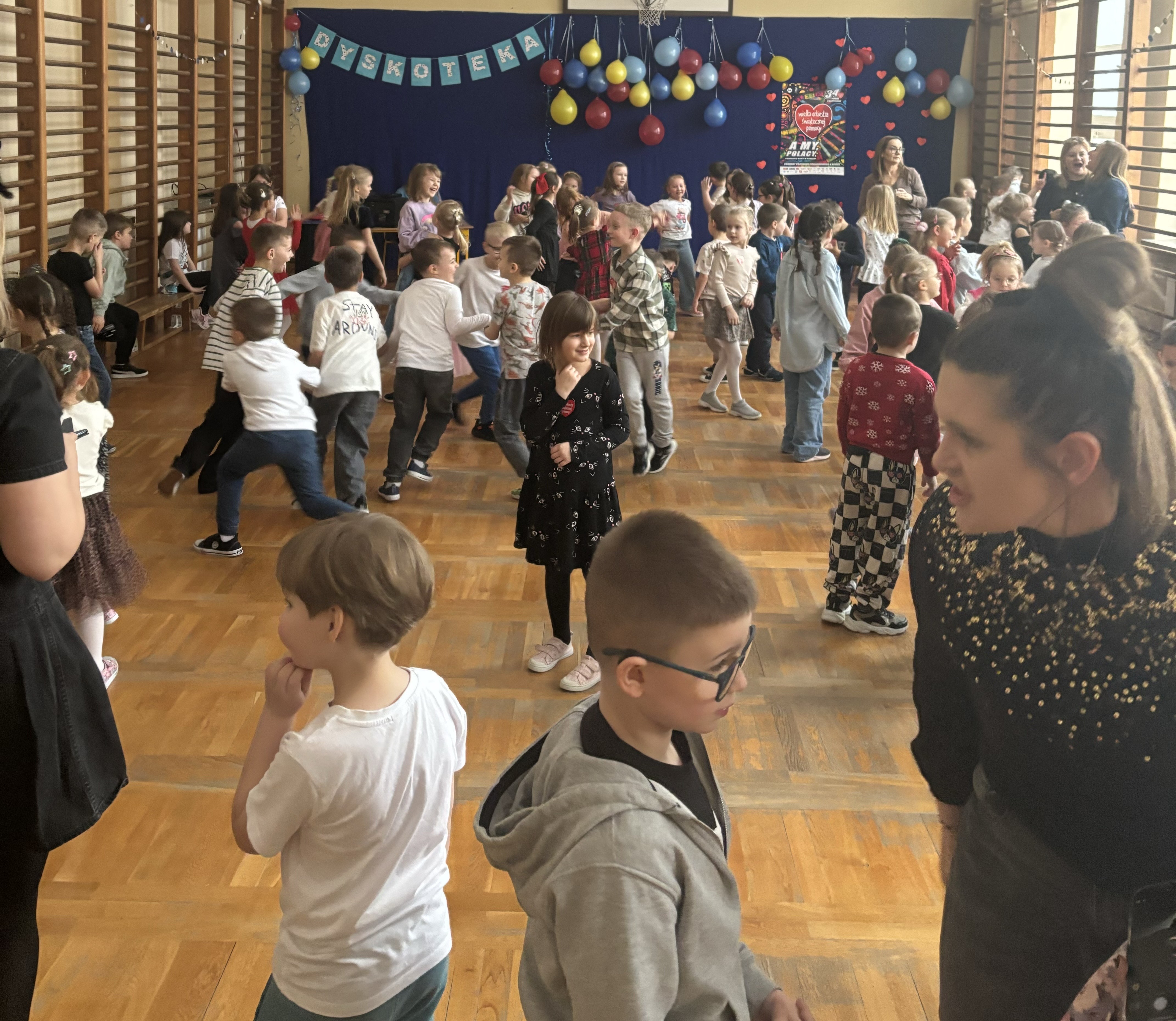 W naszej szkole odbyła się wyjątkowa dyskoteka charytatywna w ramach wsparcia Wielkiej Orkiestry Świątecznej Pomocy. W wydarzeniu wzięli udział uczniowie klas 0–8, którzy połączyli dobrą zabawę z pomaganiem innym.