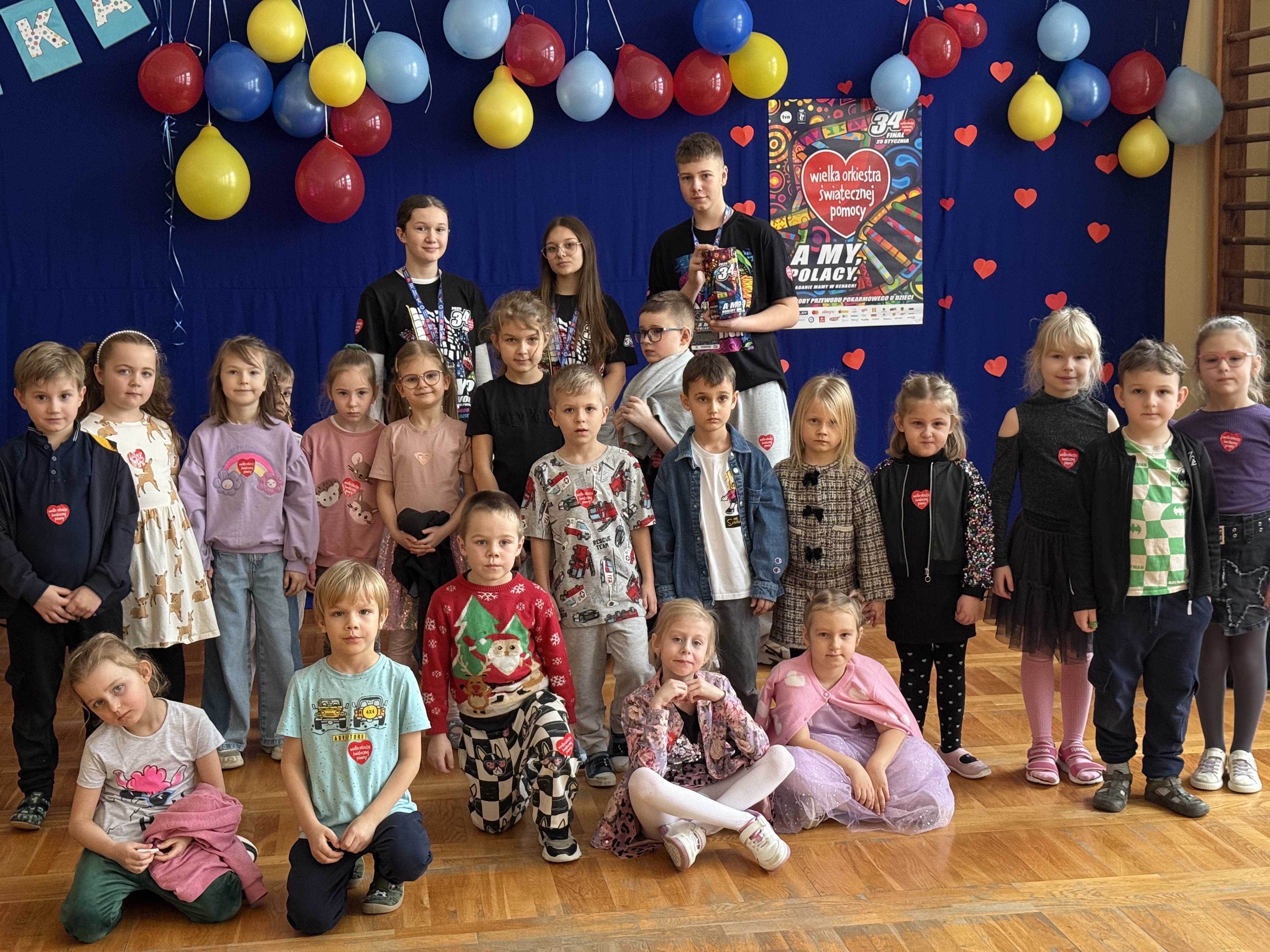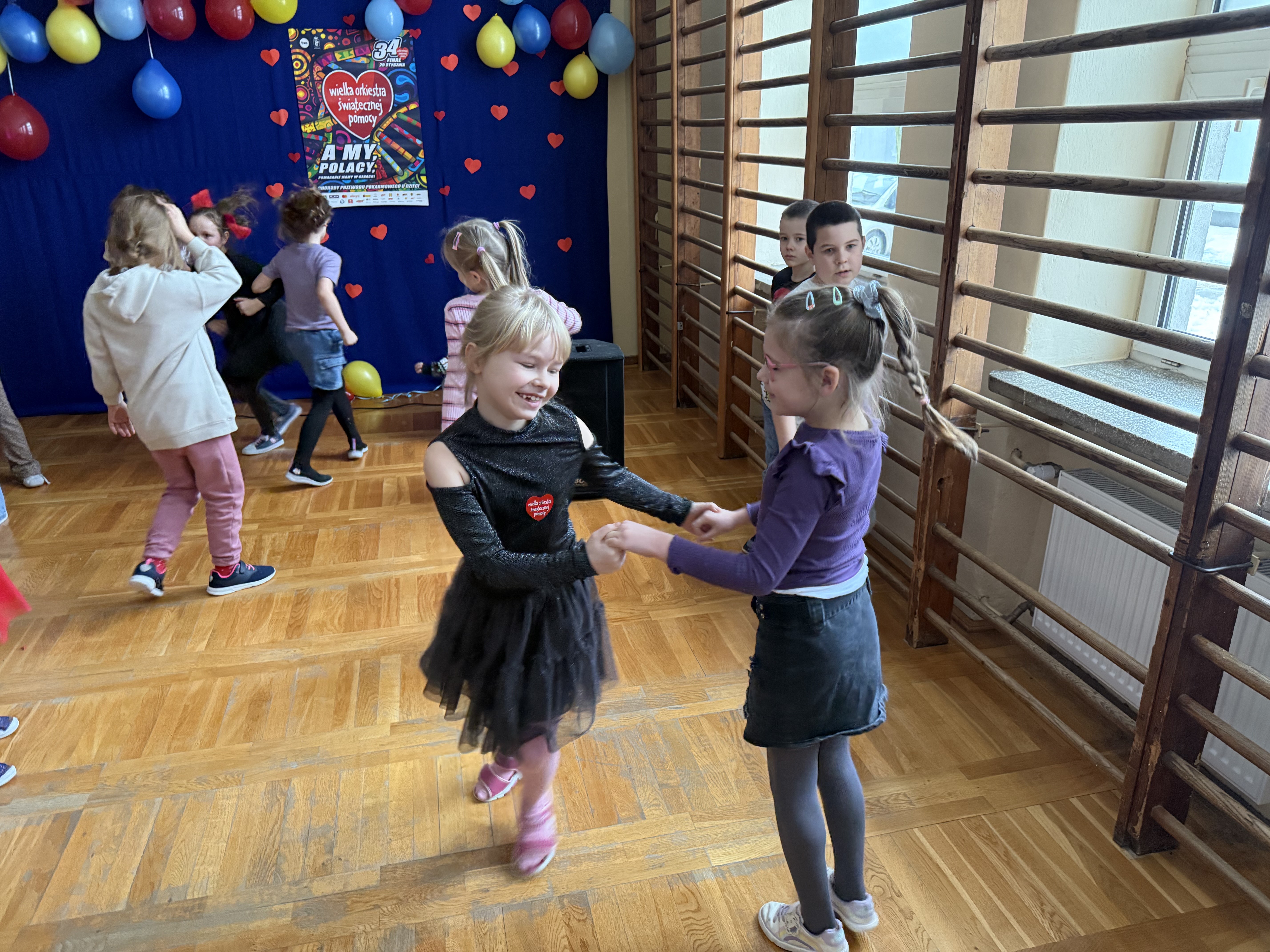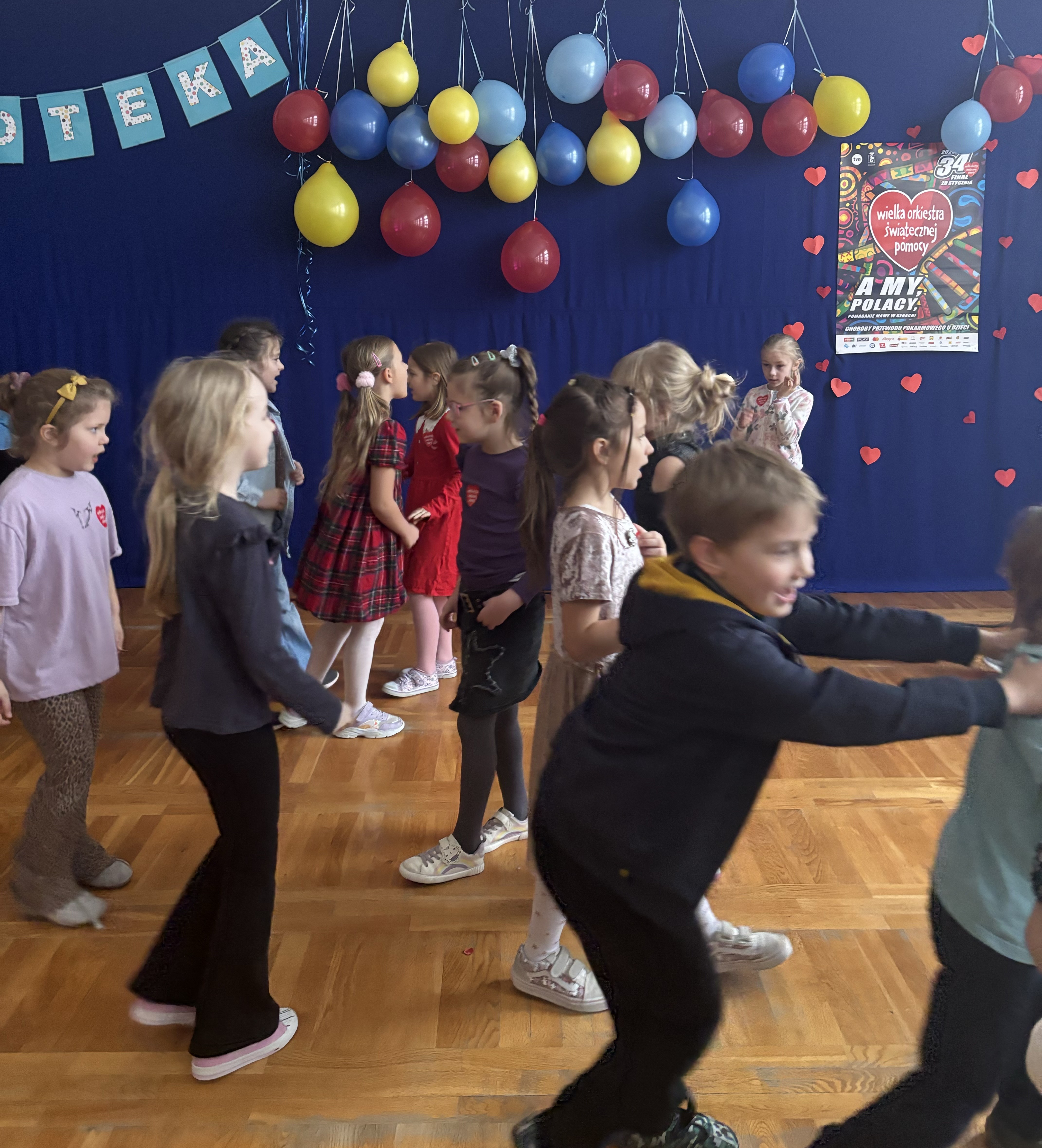 W naszej szkole odbyła się wyjątkowa dyskoteka charytatywna w ramach wsparcia Wielkiej Orkiestry Świątecznej Pomocy. W wydarzeniu wzięli udział uczniowie klas 0–8, którzy połączyli dobrą zabawę z pomaganiem innym.