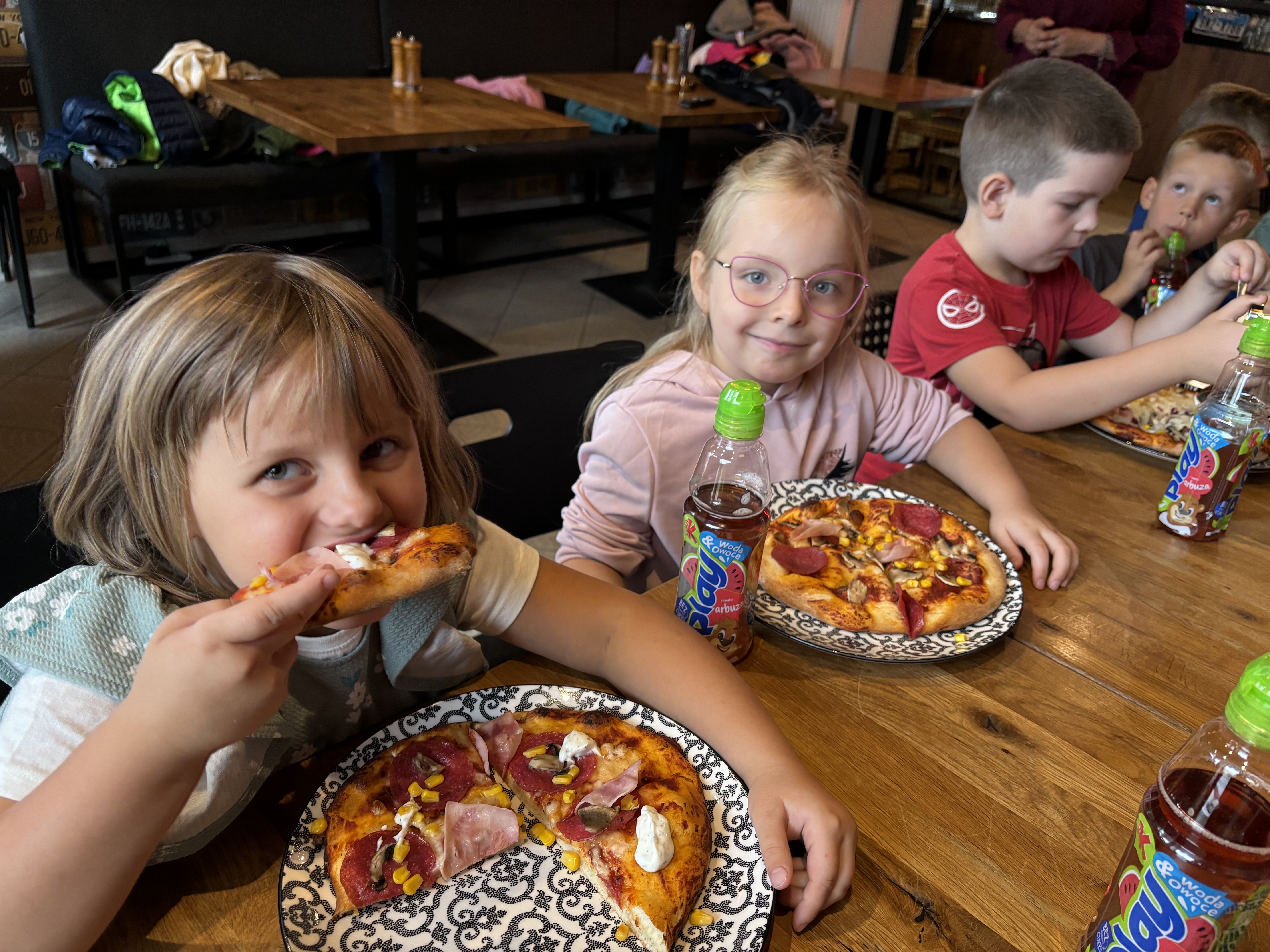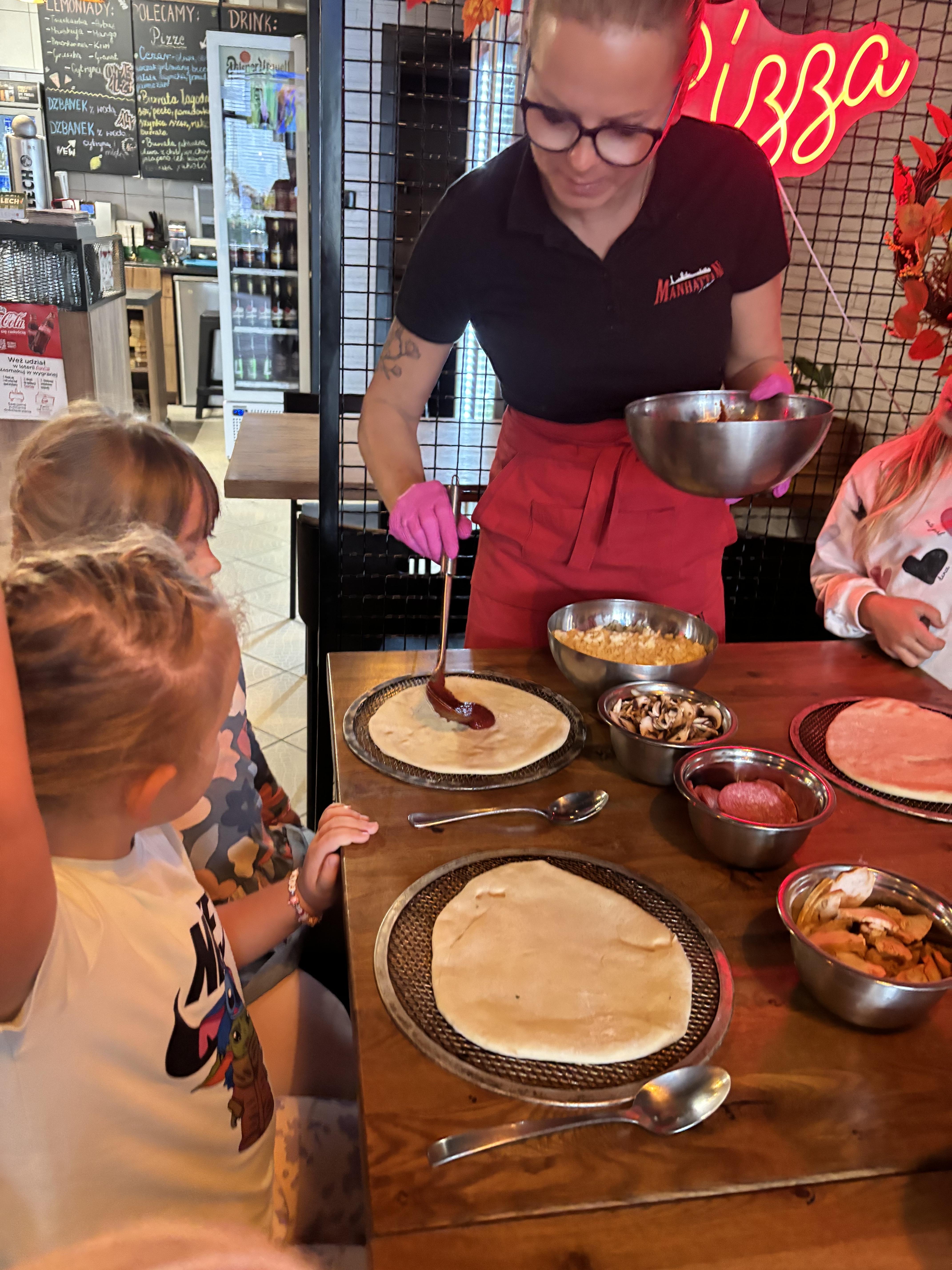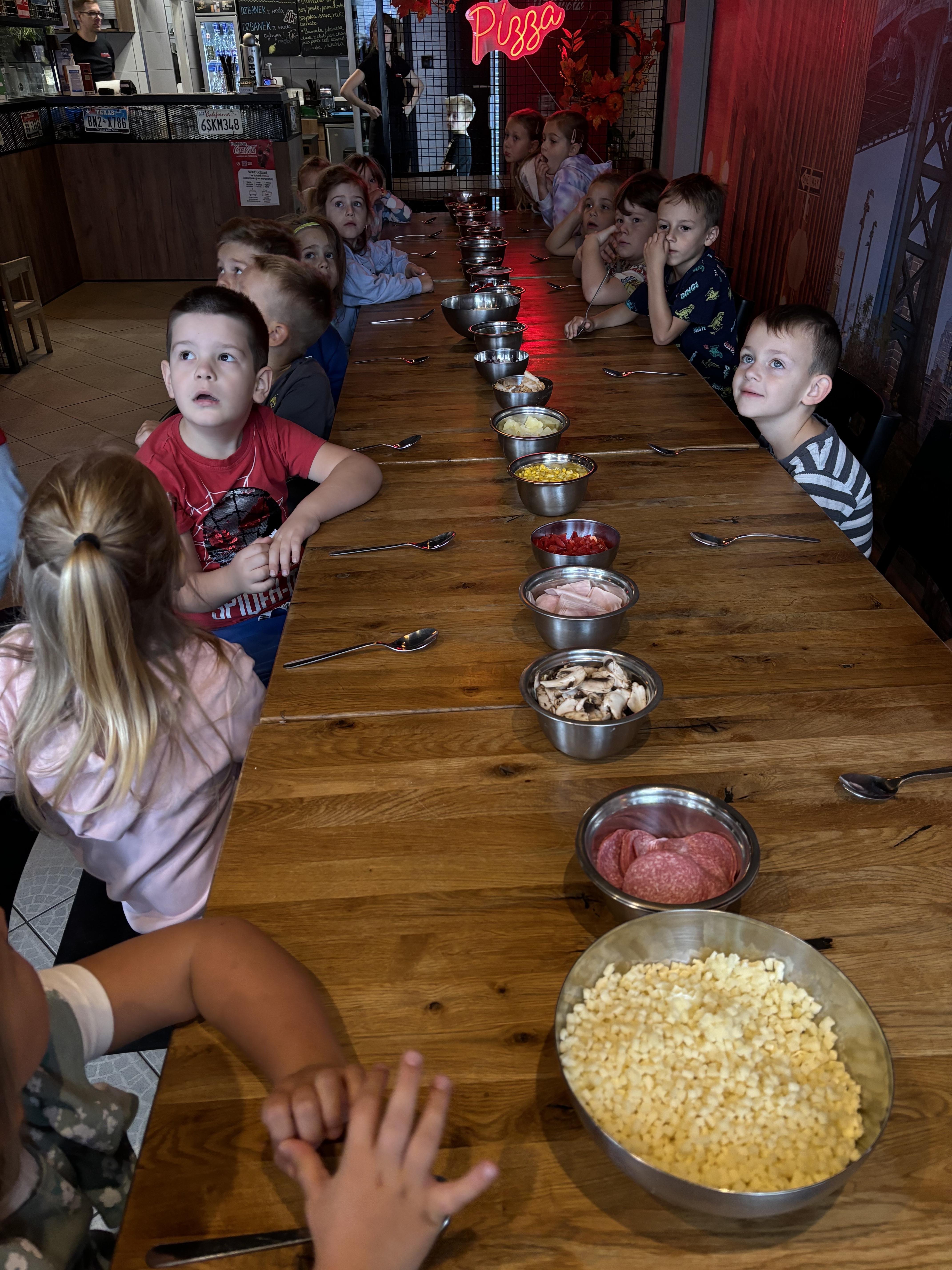Gumisie wybrały się na wyjątkową wycieczkę – uczestniczyły w warsztatach w pizzerii Manhattan. Dzieci poznały tajniki przygotowywania pizzy, a następnie samodzielnie skomponowały swoje pyszne, kolorowe wypieki. Zabawa była znakomita, a smak przygotowanych potraw na długo pozostanie w pamięci.