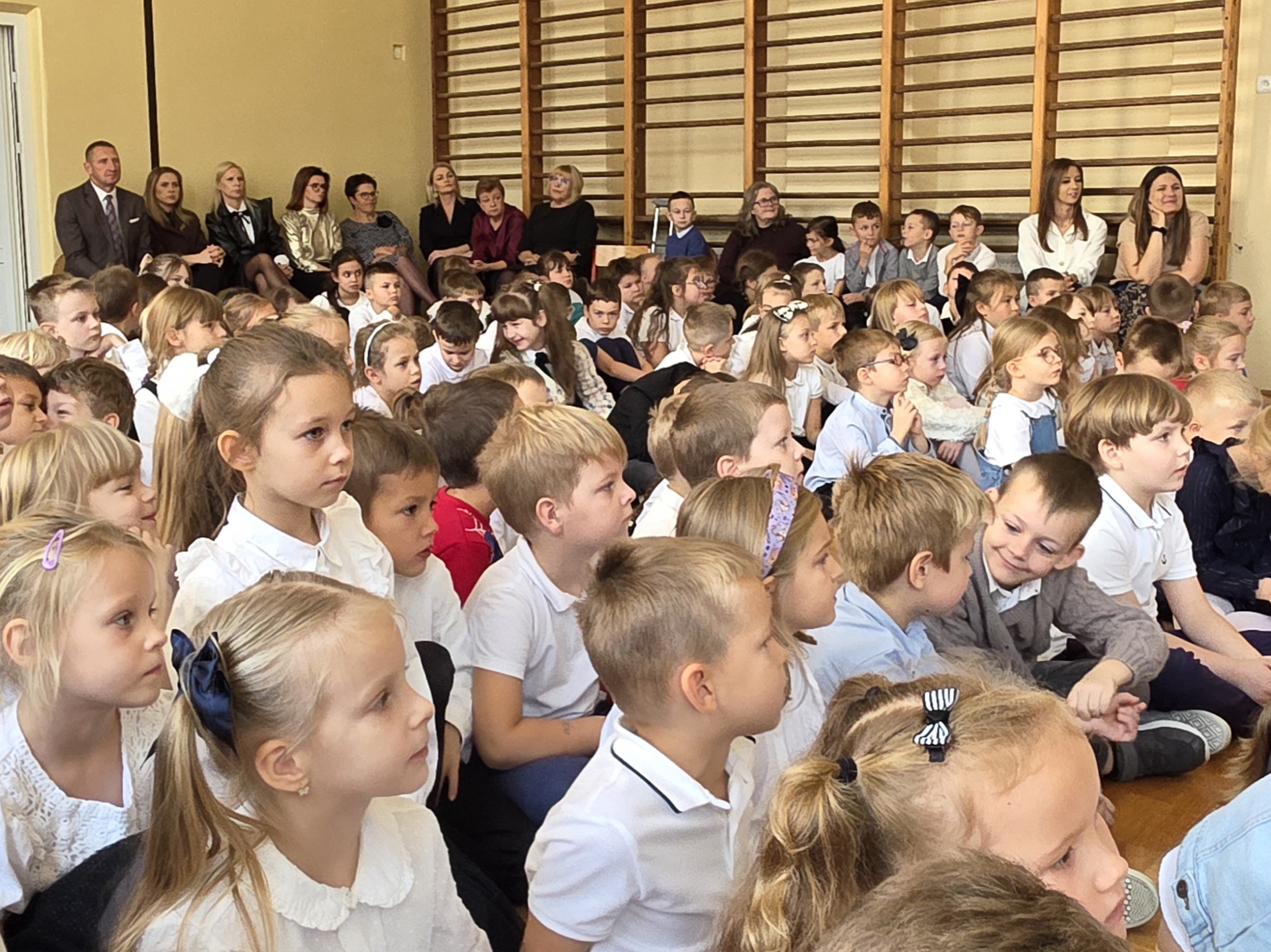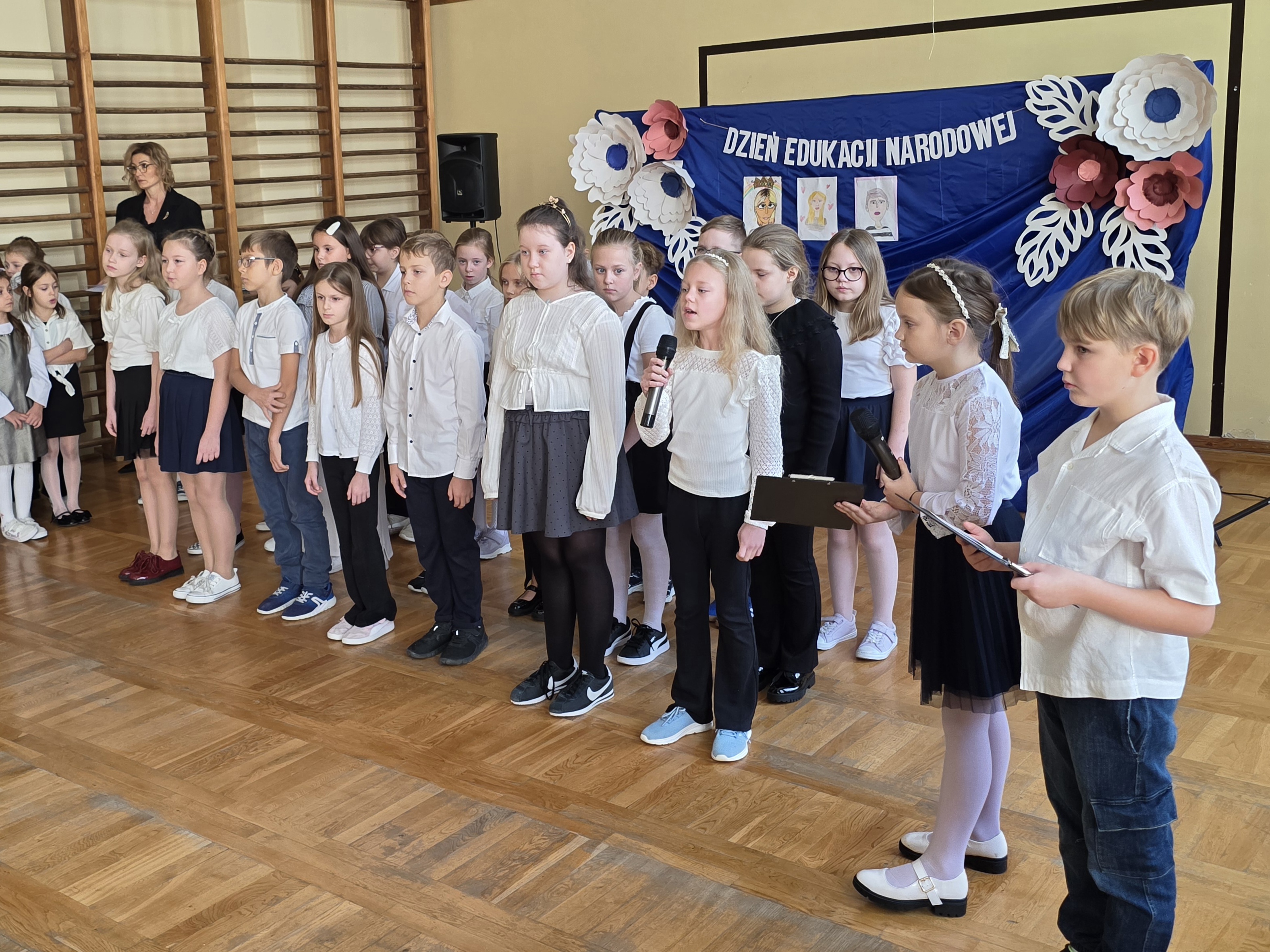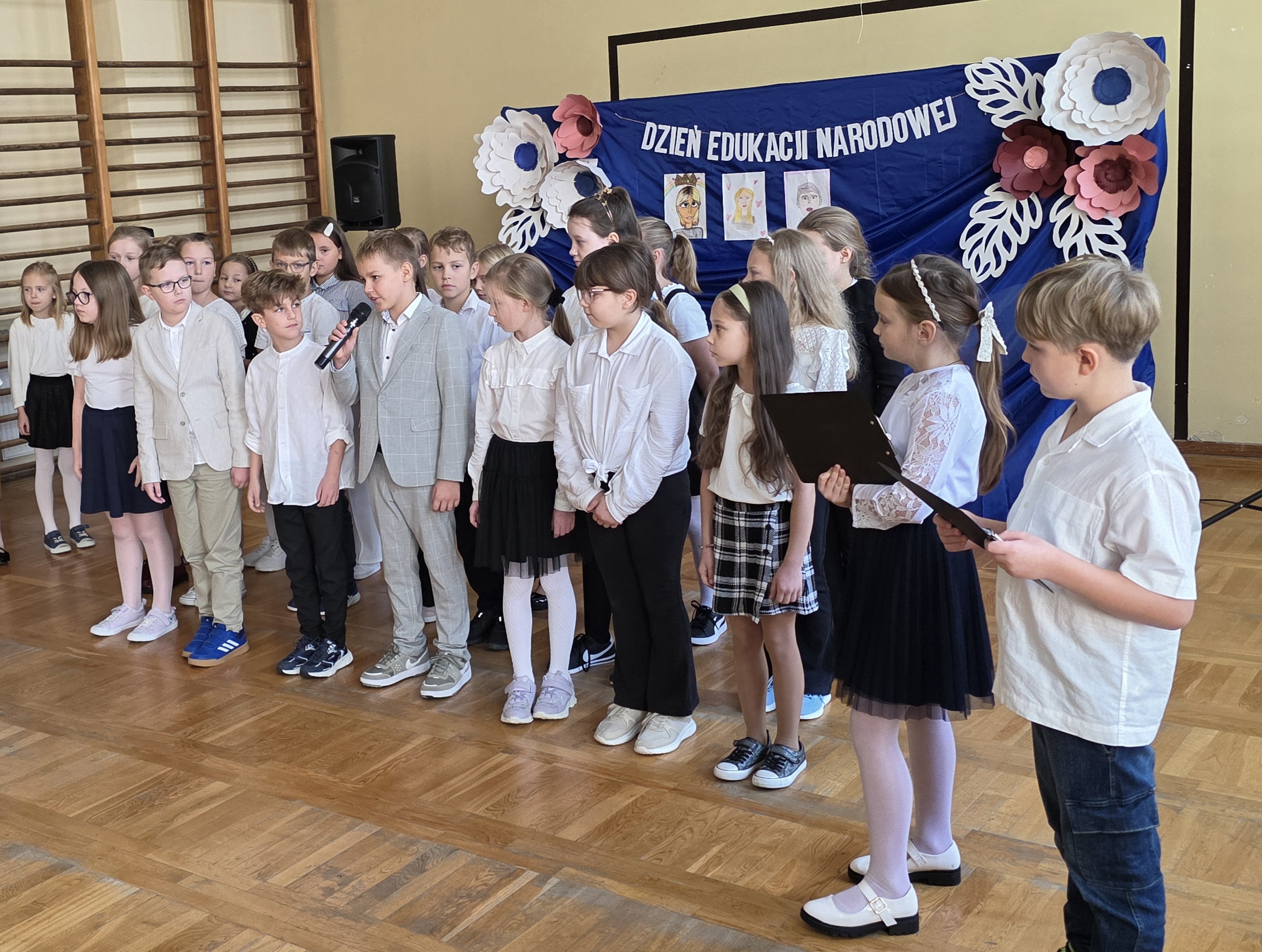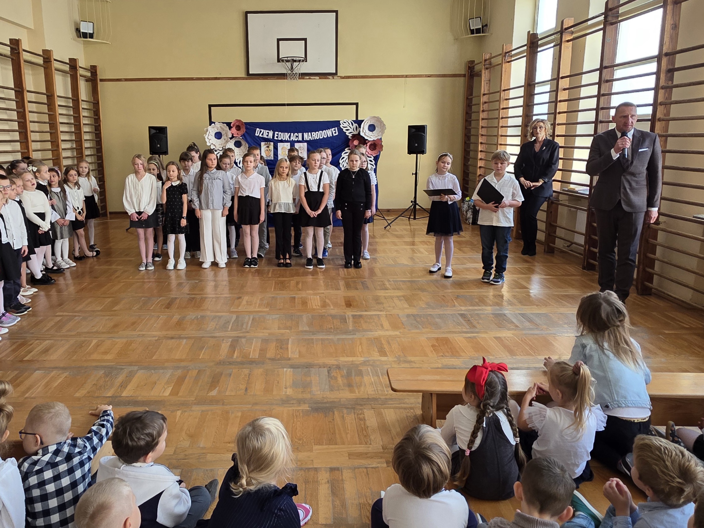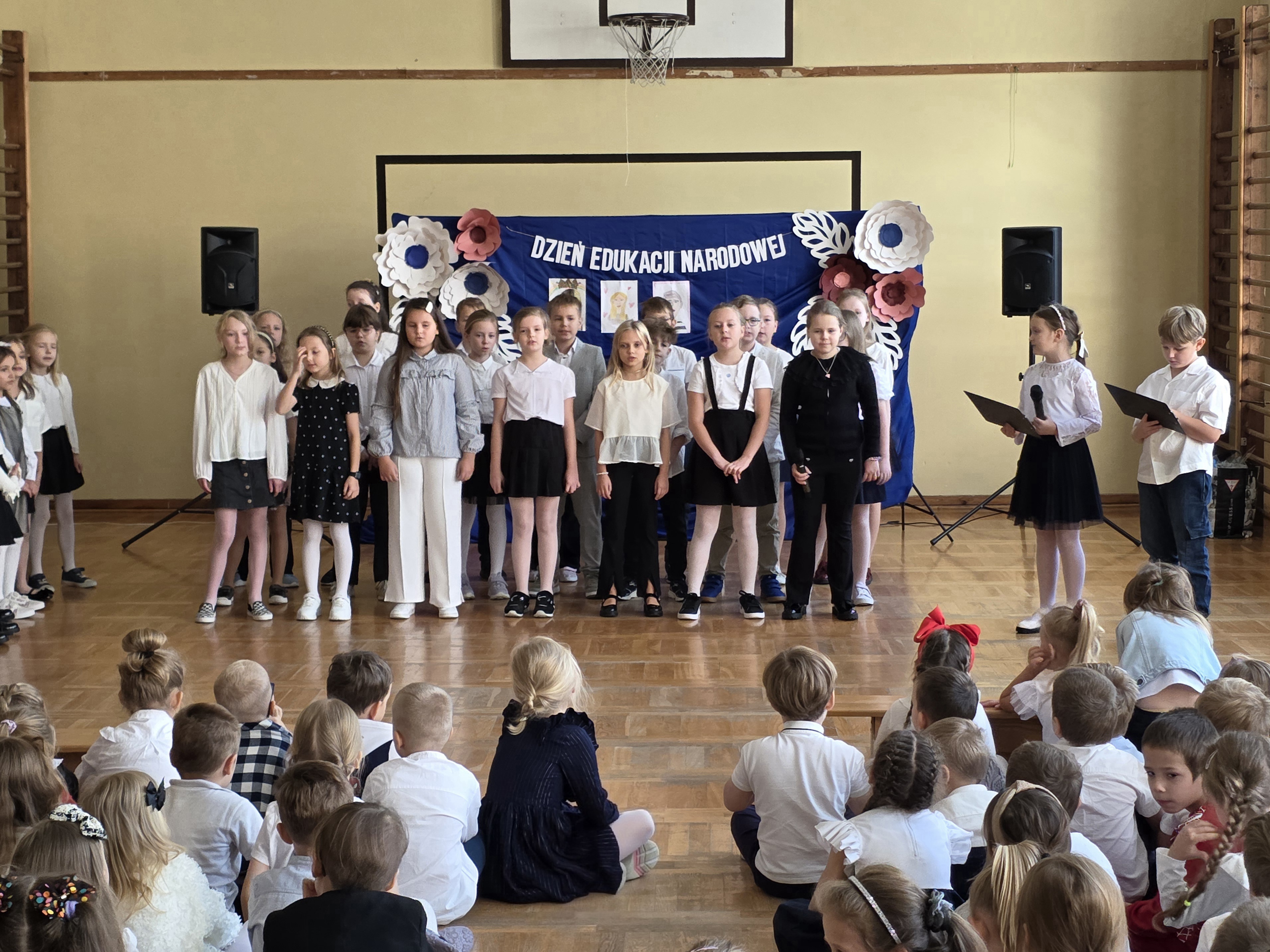 W poniedziałek, 13 października, odbył się uroczysty apel z okazji Dnia Edukacji Narodowej, przygotowany przez Mały Samorząd Uczniowski. Uczniowie klas trzecich z ogromnym zaangażowaniem zaprezentowali część artystyczną, w której nie zabrakło wierszy i serdecznych życzeń dla nauczycieli oraz pracowników szkoły. Występ uświetnił zespół wokalny „Brzdąc”, który swoim śpiewem wprowadził wszystkich w wyjątkowy nastrój. Młodzi artyści dziękowali za codzienny trud, cierpliwość i uśmiech, jakim nauczyciele obdarzają ich na co dzień. Występ uczniów został nagrodzony gromkimi brawami. Wicedyrektor szkoły – Pan Jacek Klarzyński podziękował uczniom i opiekunom za przygotowanie apelu, dołączył się do życzeń dla wszystkich pracowników, a dzieciom przekazał słodki poczęstunek ufundowany przez Radę Rodziców.
