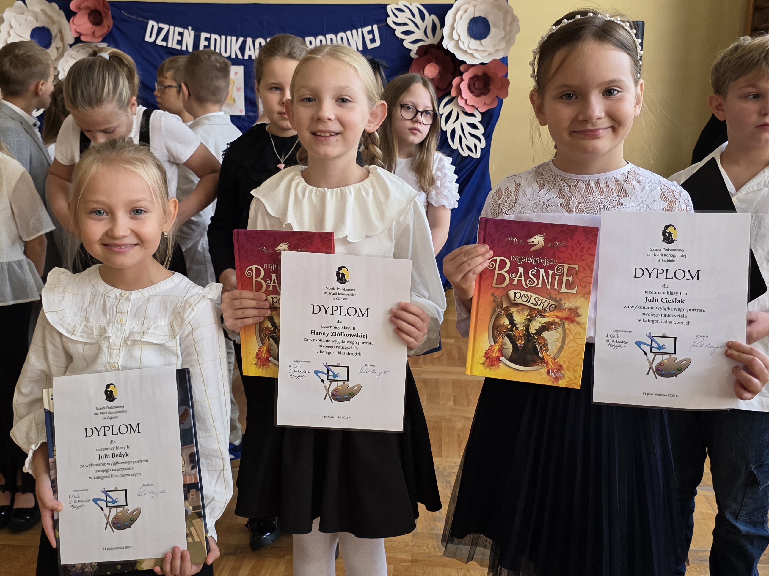 Na zakończenie rozstrzygnięty został konkurs plastyczny „Portret mojego nauczyciela”. Nagrodę oraz dyplom za wykonanie wyjątkowego portretu swojego nauczyciela zdobyły: