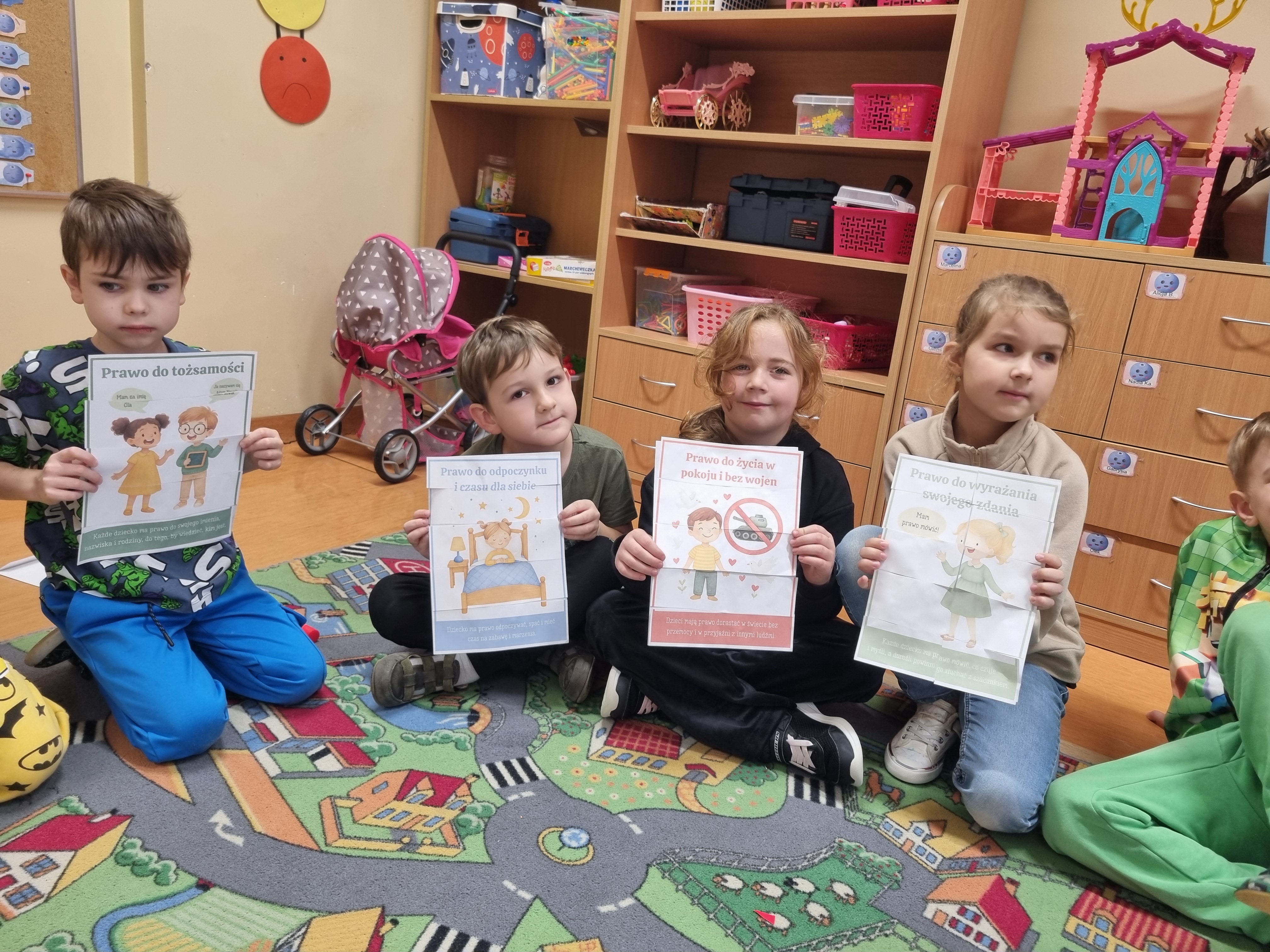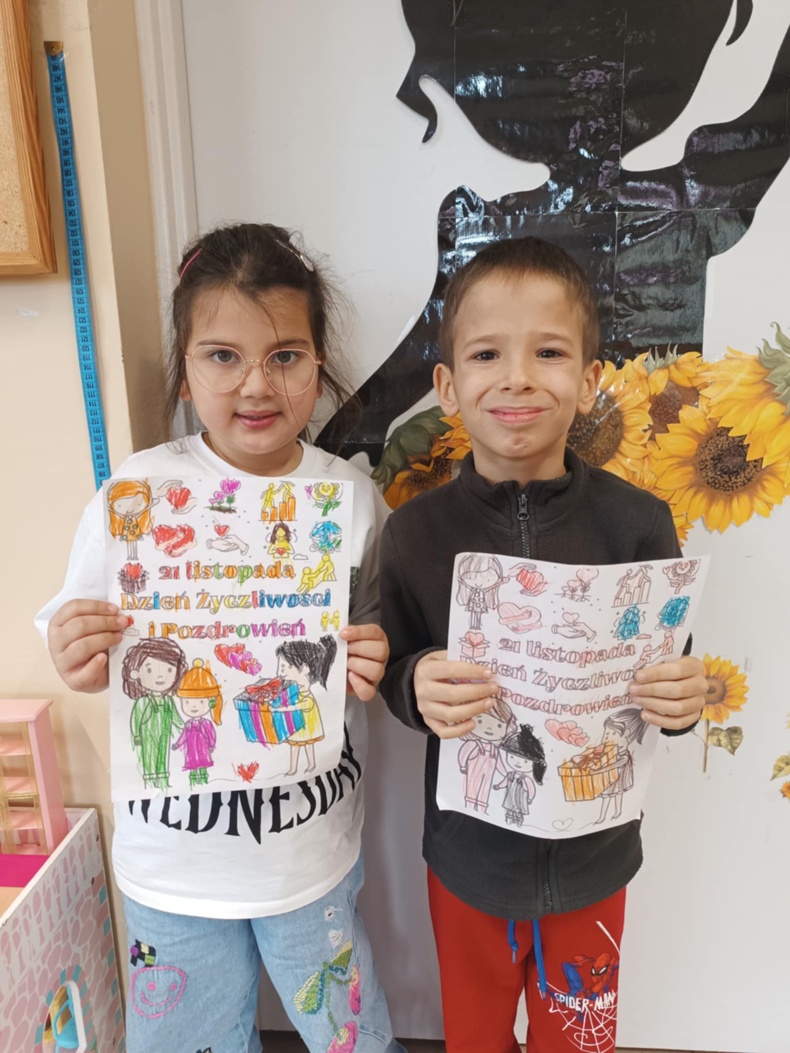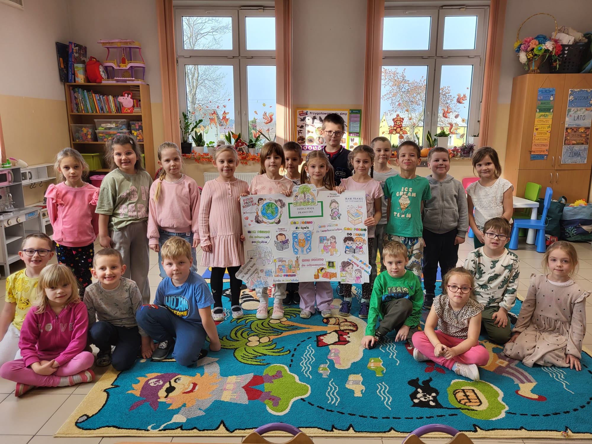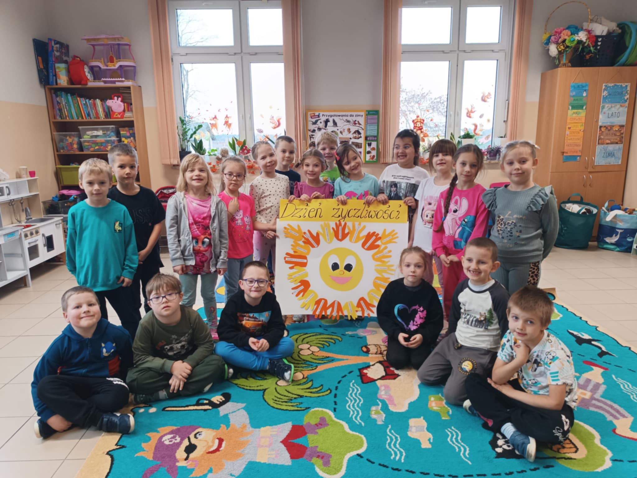 W ostatnim czasie obchodziliśmy Dzień Życzliwości połączony z rozmową o prawach dziecka. Przedszkolaki dzieliły się miłymi słowami, tworzyły „Drzewko Życzliwości" oraz kolorowe plakaty przypominające o najważniejszych prawach każdego dziecka.
