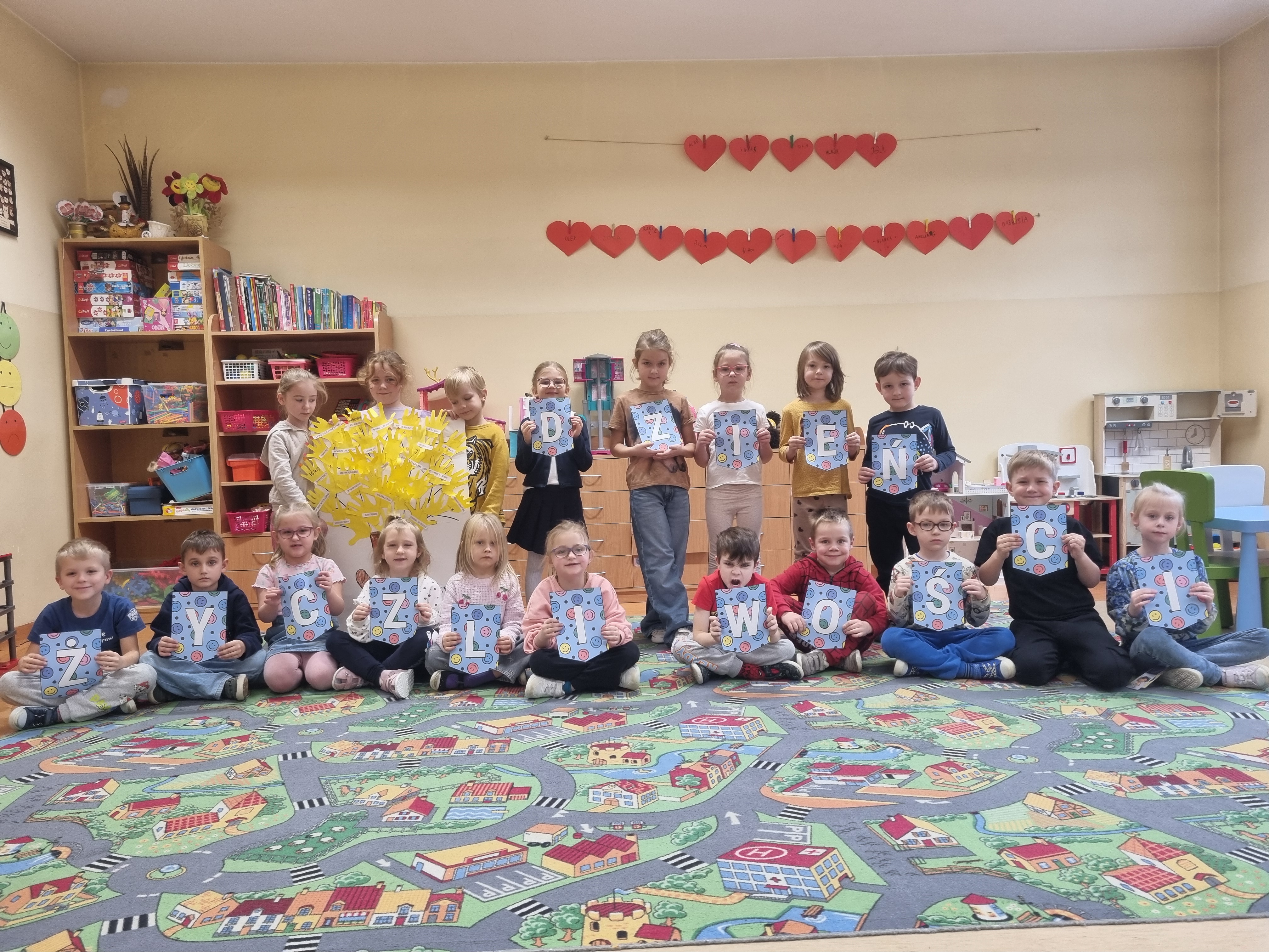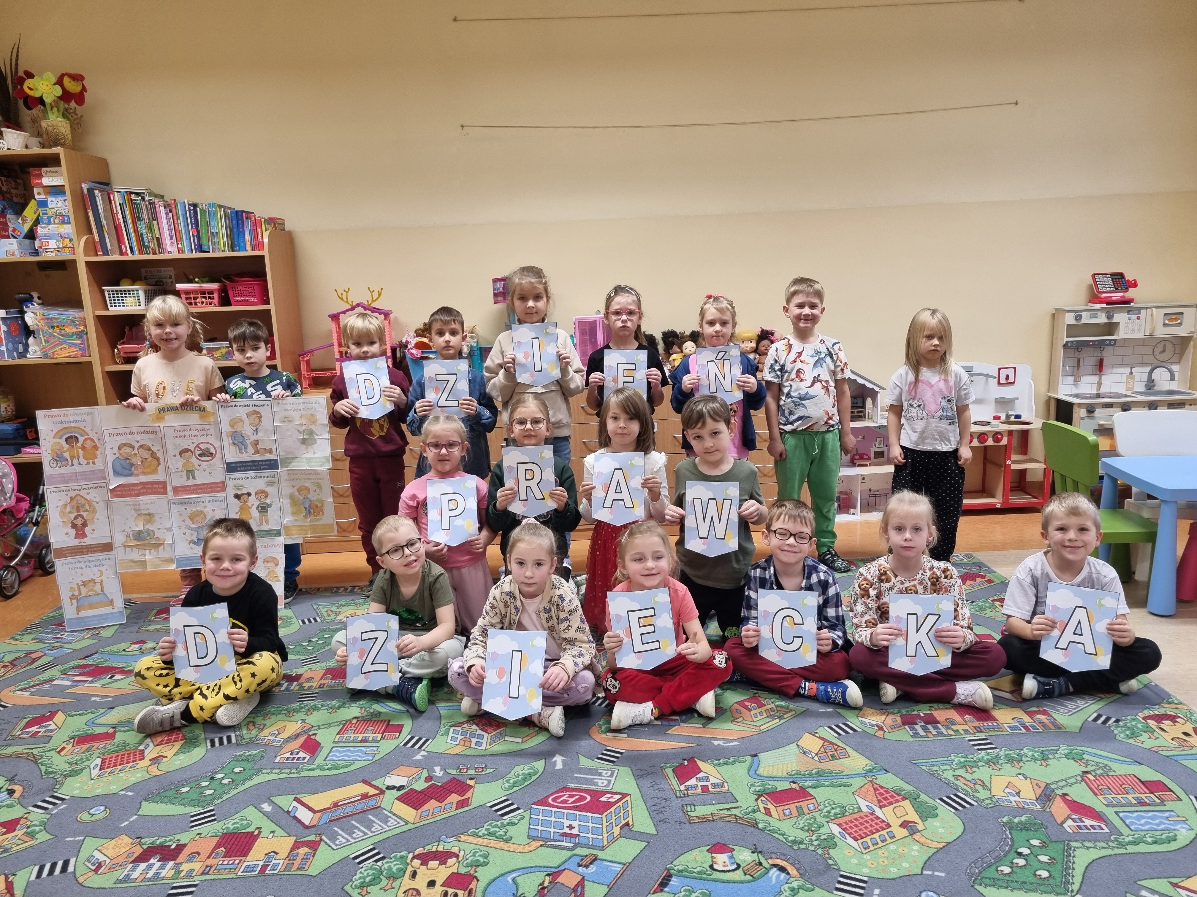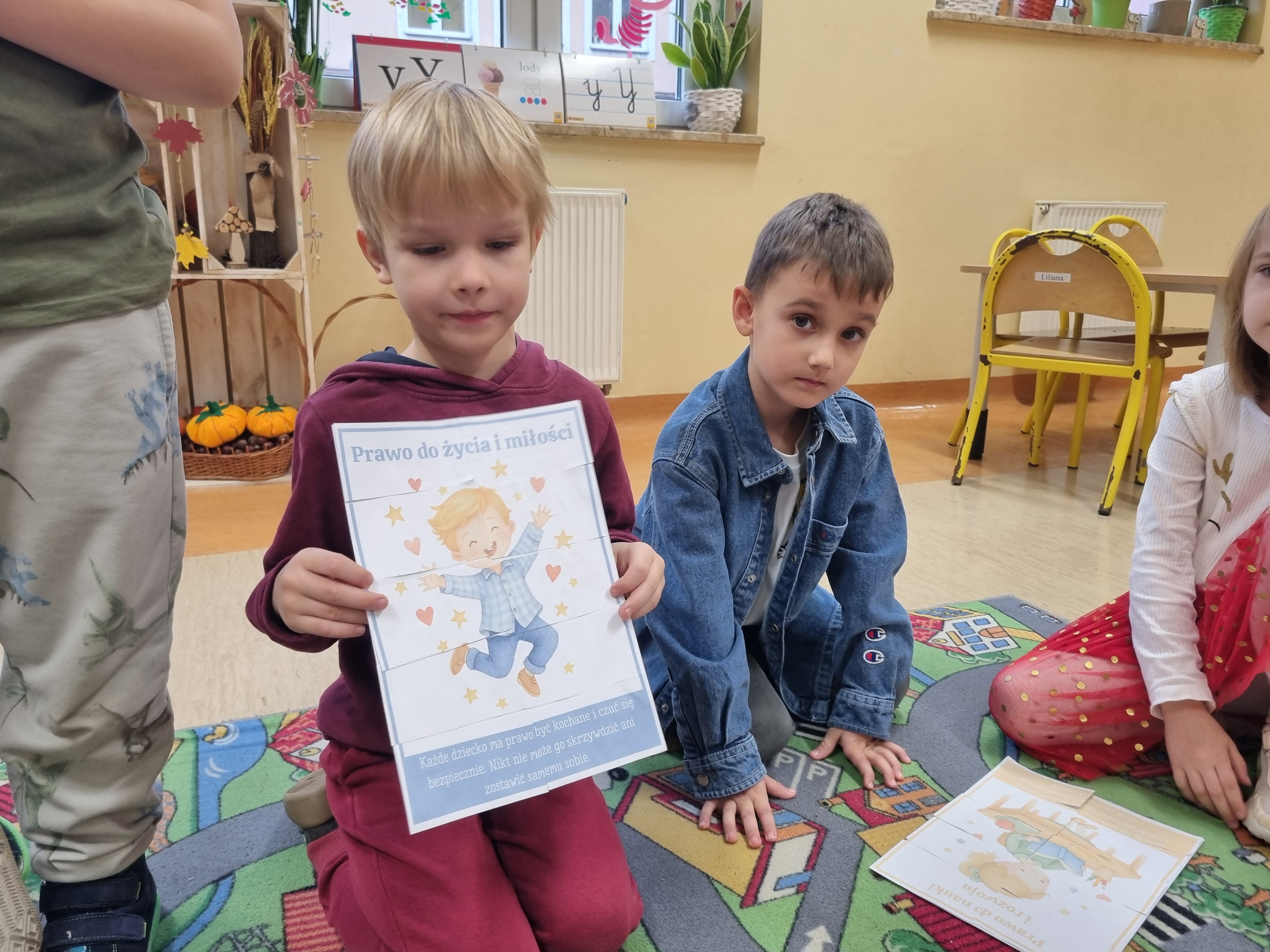 W ostatnim czasie obchodziliśmy Dzień Życzliwości połączony z rozmową o prawach dziecka. Przedszkolaki dzieliły się miłymi słowami, tworzyły „Drzewko Życzliwości" oraz kolorowe plakaty przypominające o najważniejszych prawach każdego dziecka.