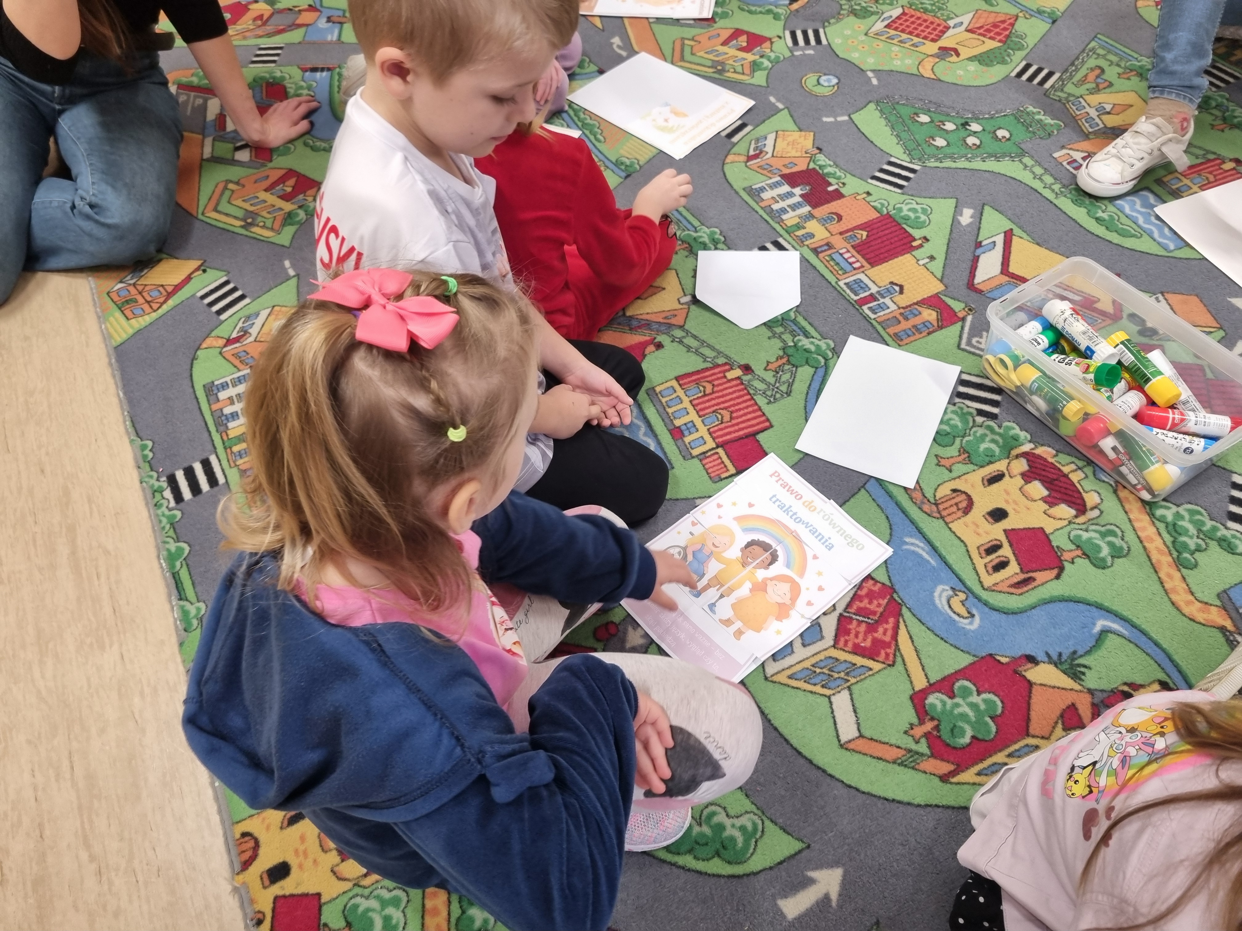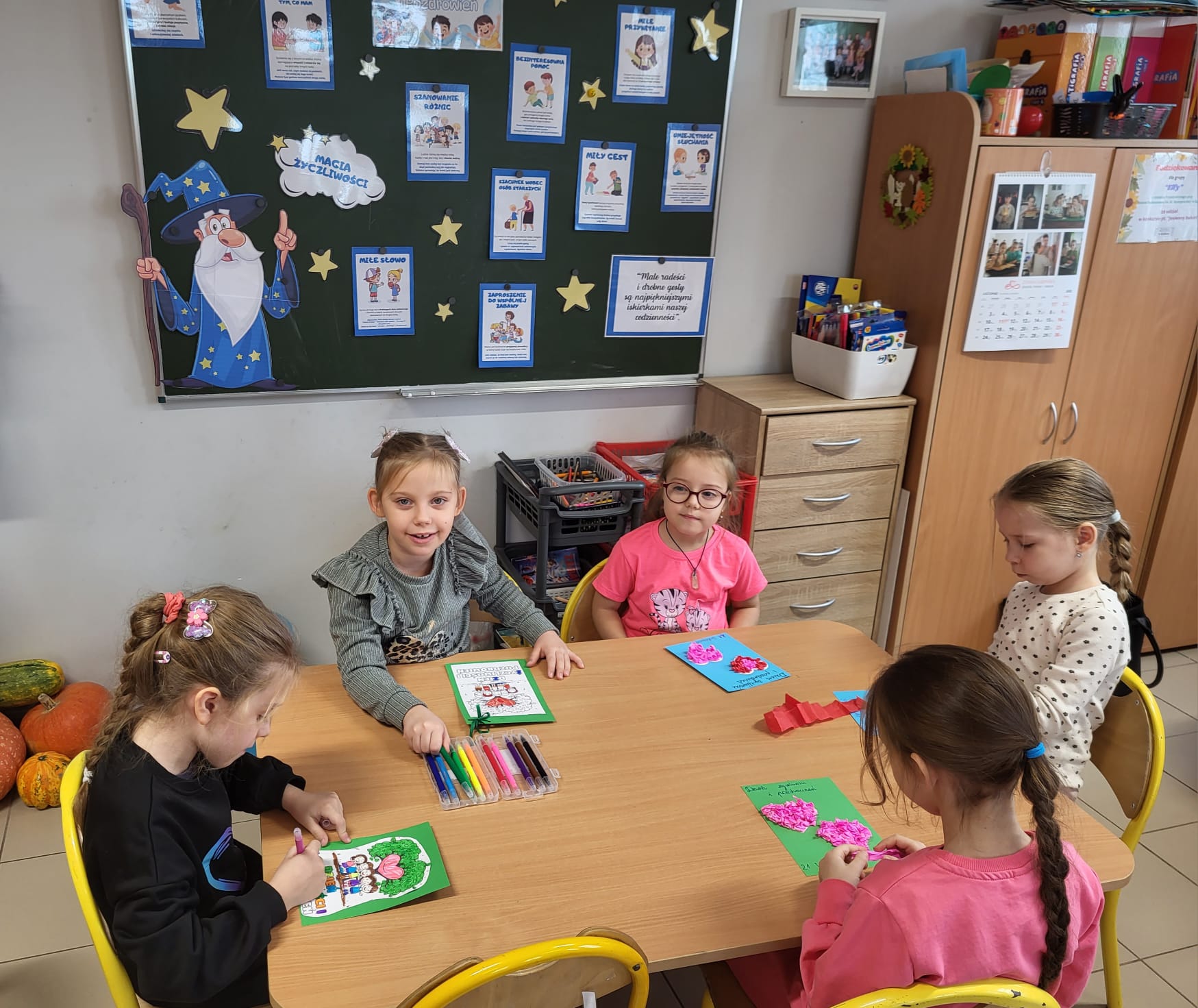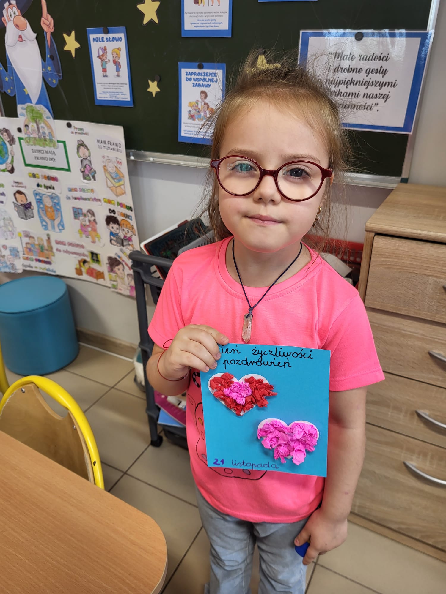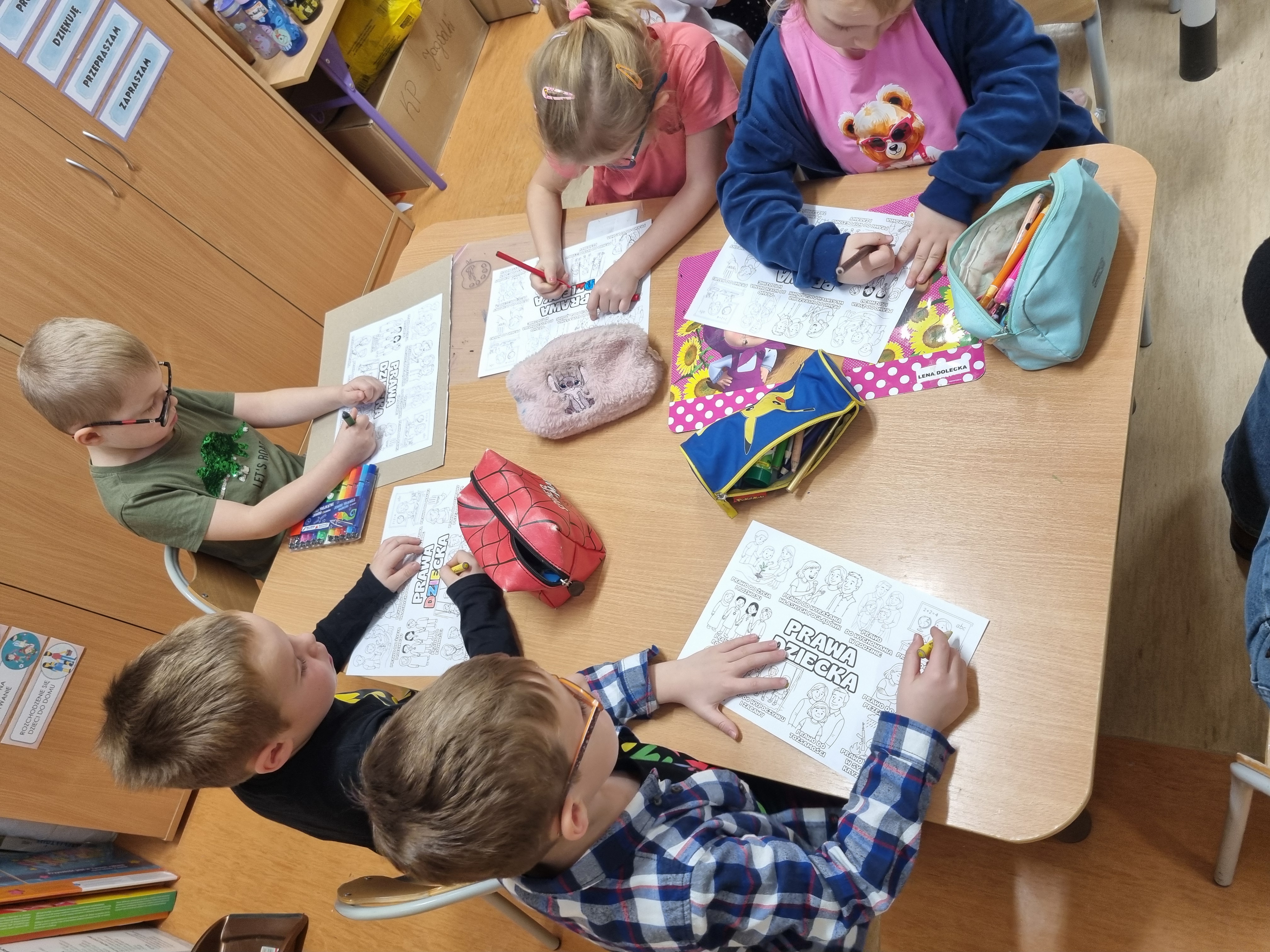 W ostatnim czasie obchodziliśmy Dzień Życzliwości połączony z rozmową o prawach dziecka. Przedszkolaki dzieliły się miłymi słowami, tworzyły „Drzewko Życzliwości" oraz kolorowe plakaty przypominające o najważniejszych prawach każdego dziecka.