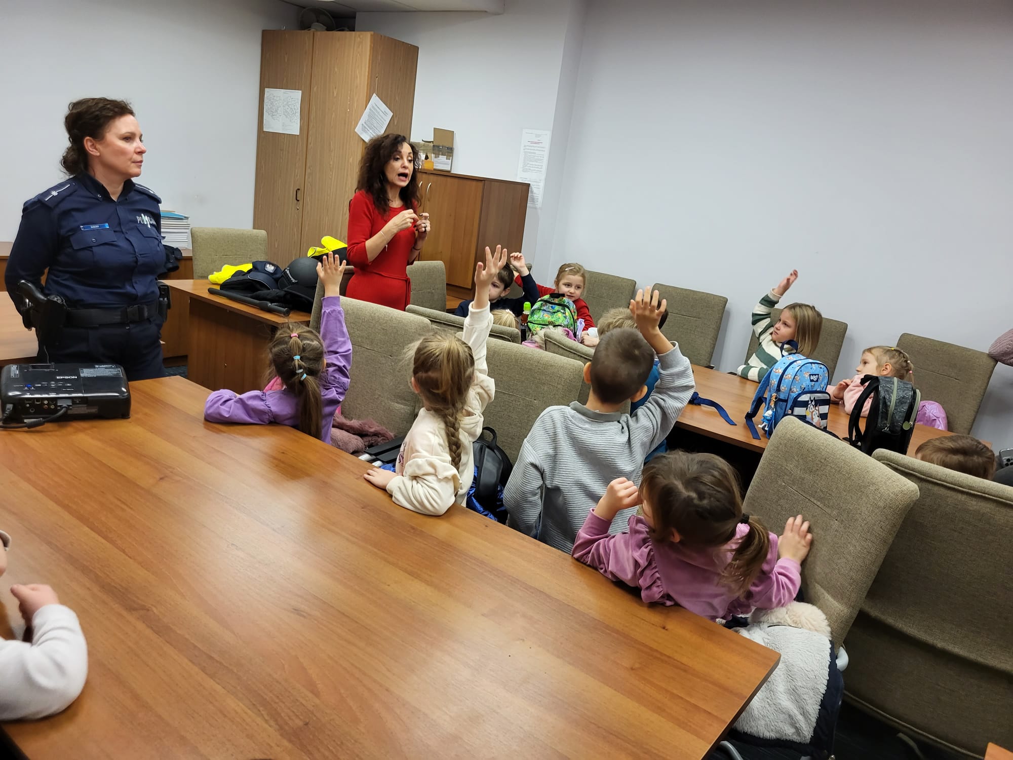 Grupy " Elfy" i "Jagódki" 26 listopada odwiedziły Komendę Miejską Policji w Płocku. Dla dzieci była to wyjątkowa okazja, aby z bliska zobaczyć, jak wygląda codzienna praca policjantów oraz dowiedzieć się, jak dbać o bezpieczeństwo.