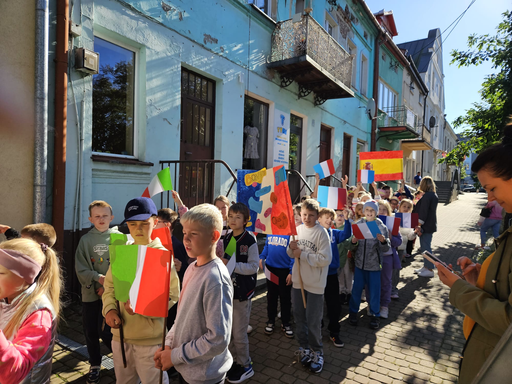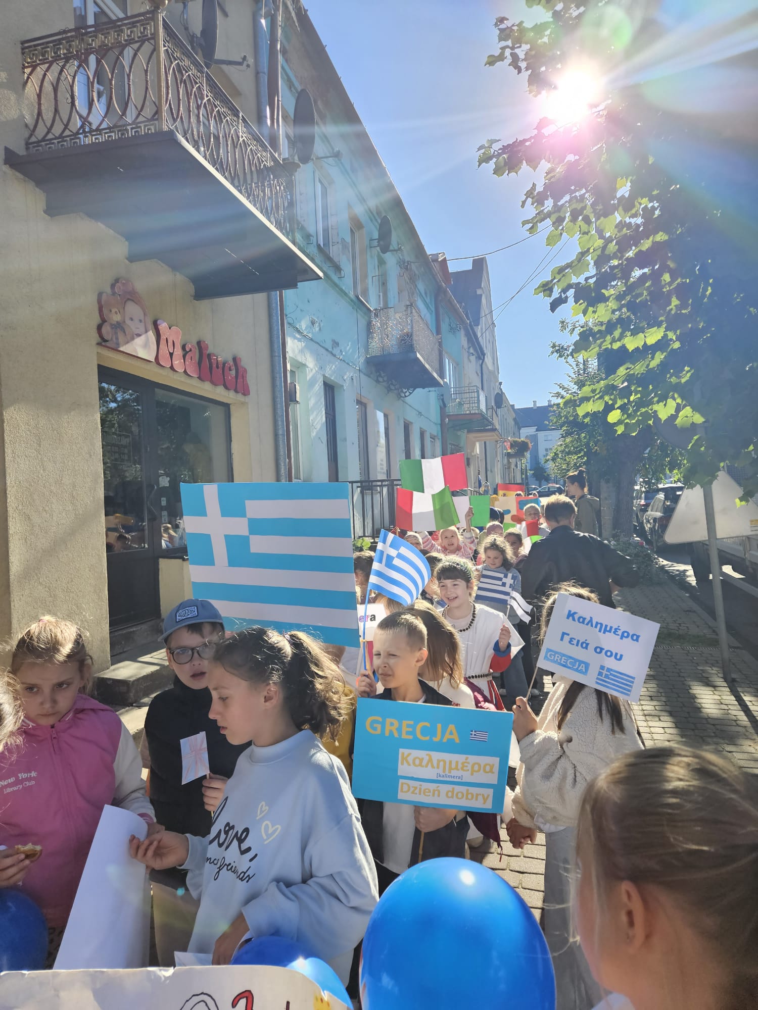 Uczniowie klas 2 - 4 wyruszyli na happening językowy. Kolorowy korowód przeszedł ulicami naszego miasta, prezentując rozmaitość kulturową państw europejskich. Wydarzeniu towarzyszył dobry humor i świetna zabawa.