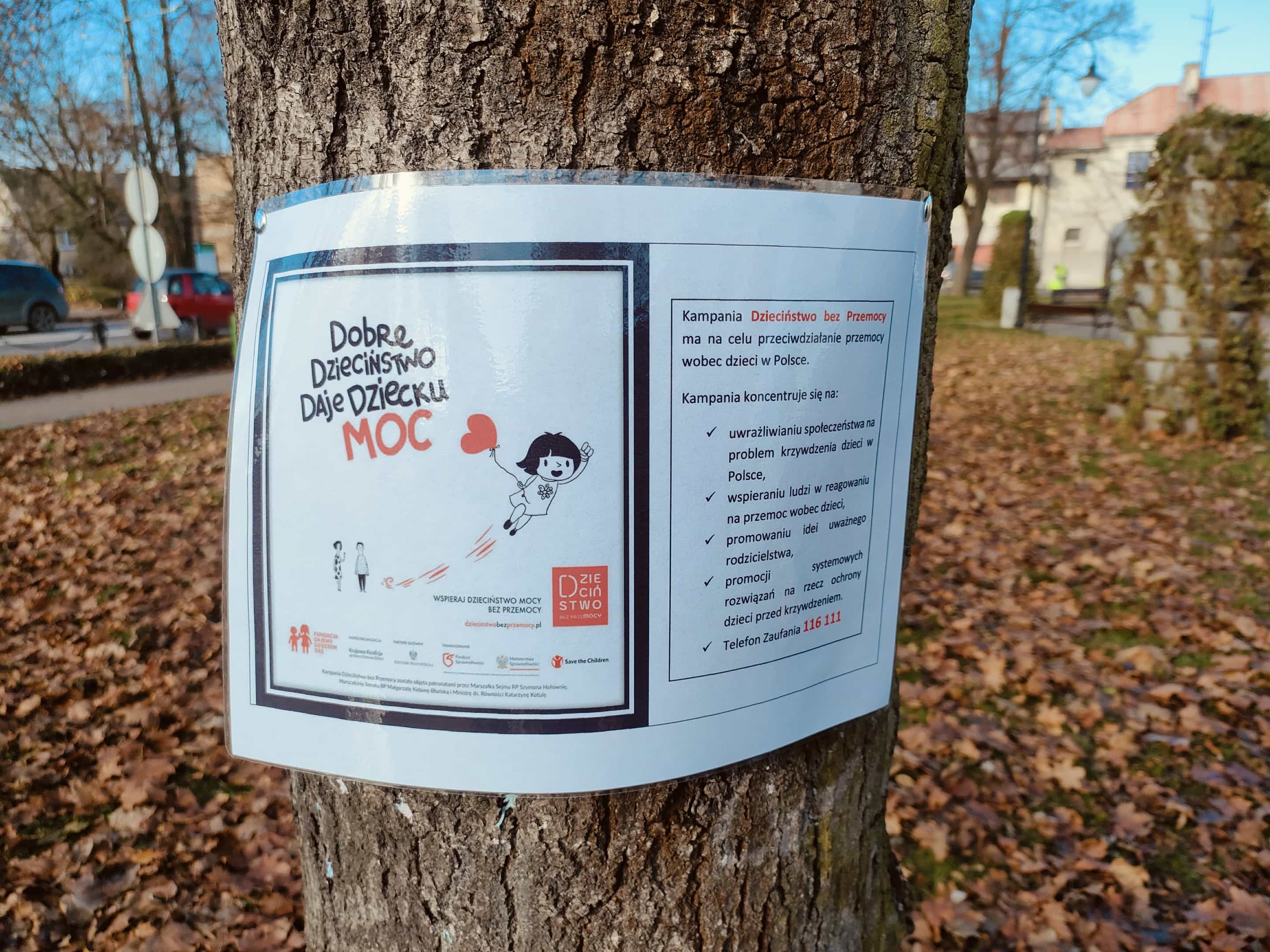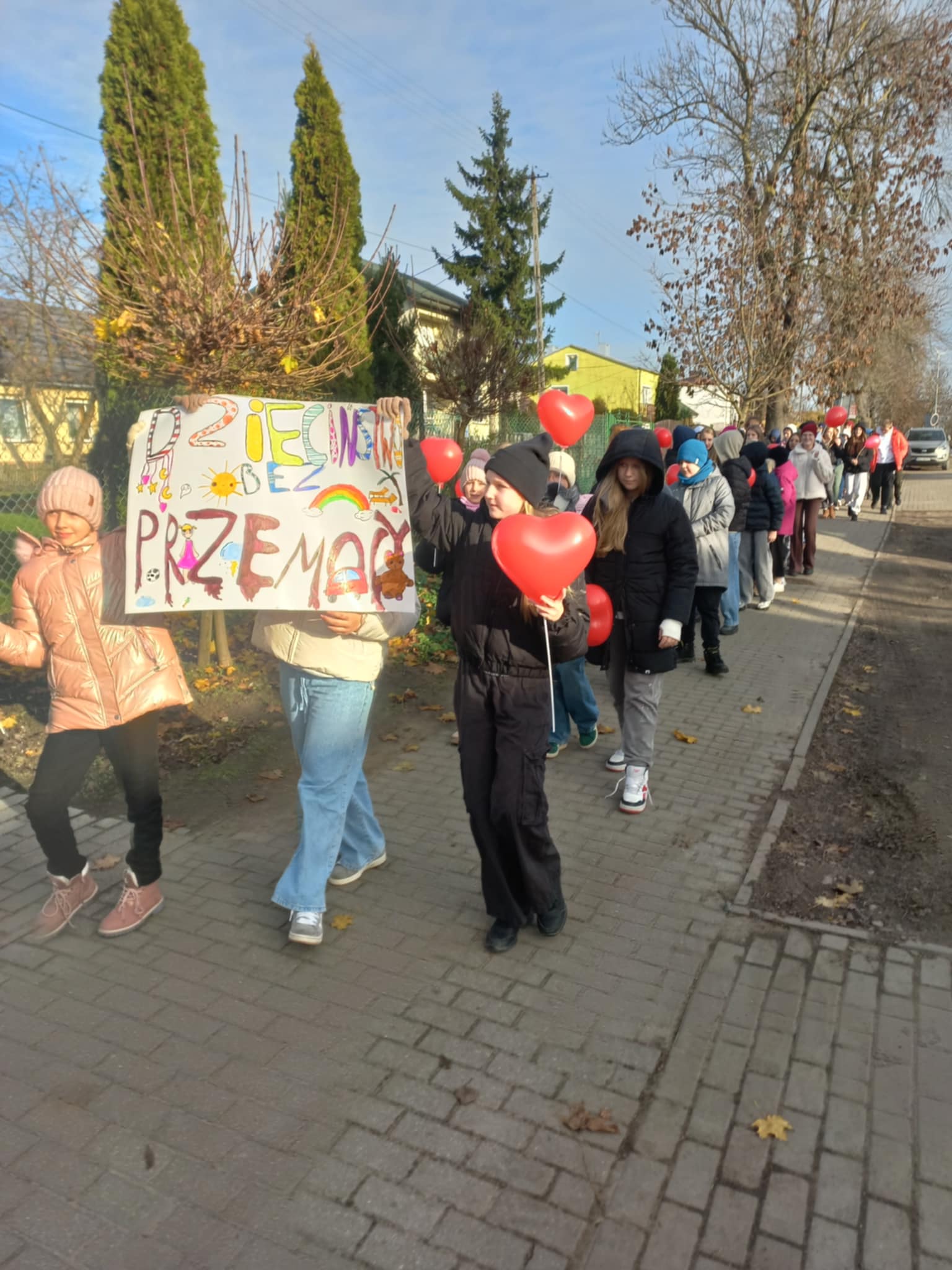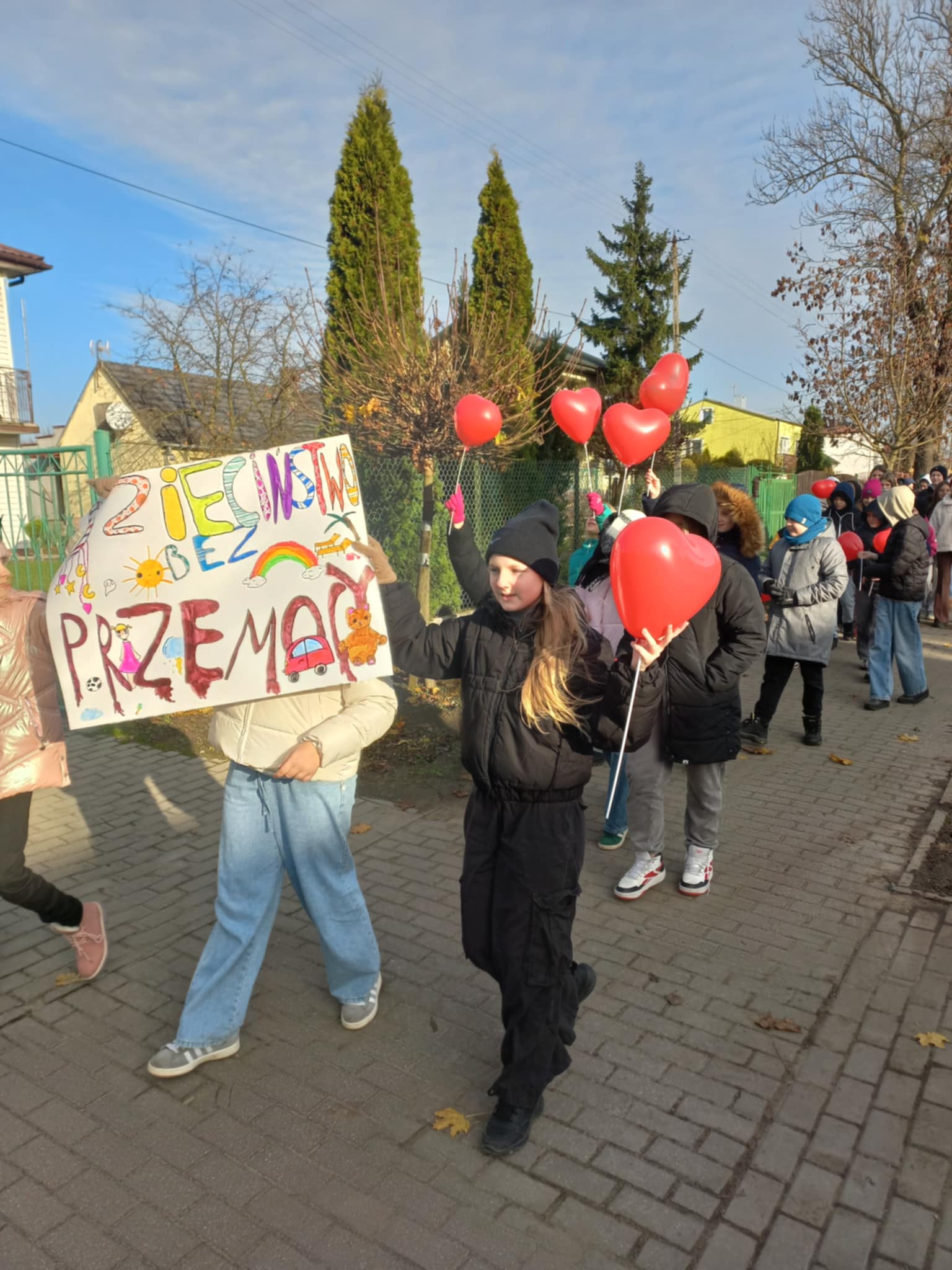 W poprzednich tygodniach realizowano w jej ramach pogadanki, lekcje on-line oraz przygotowano plakaty informacyjne dotyczące ochrony dzieci przed krzywdzeniem. Finał akcji odbył się 19 listopada br., wtedy uczniowie klas 4a i 7a wraz z opiekunami pojawili się na Starym Rynku w Gąbinie, aby zwrócić uwagę mieszkańców na problem przemocy wobec najmłodszych. Podczas działań rozdawali ulotki oraz czerwone balony w kształcie serca, symbolizujące dobroć, miłość i szacunek.
