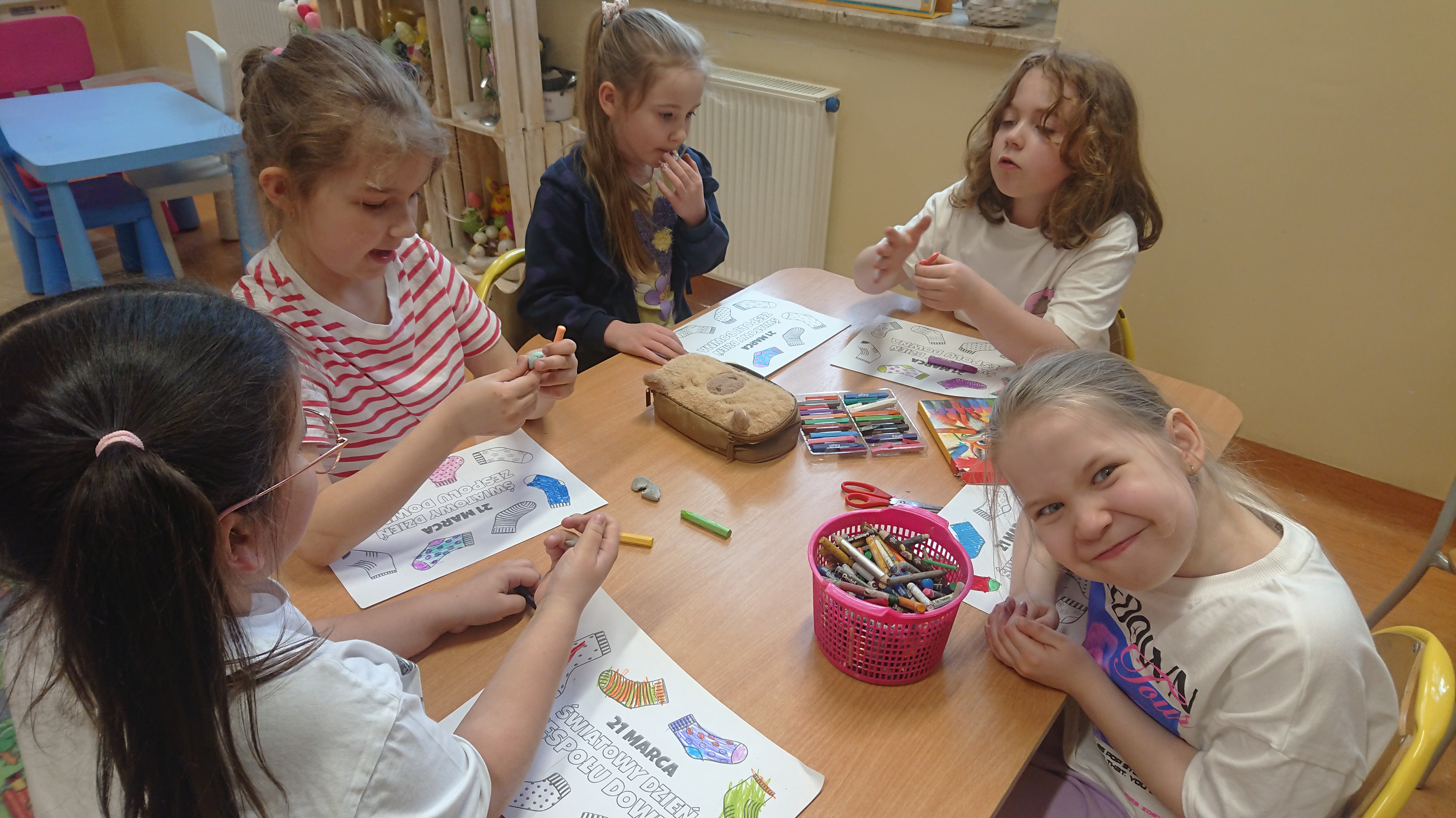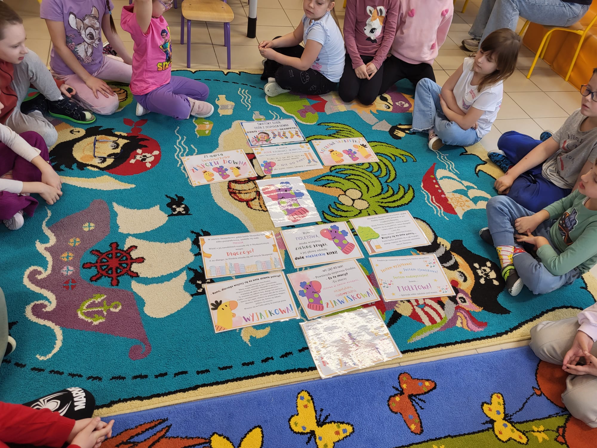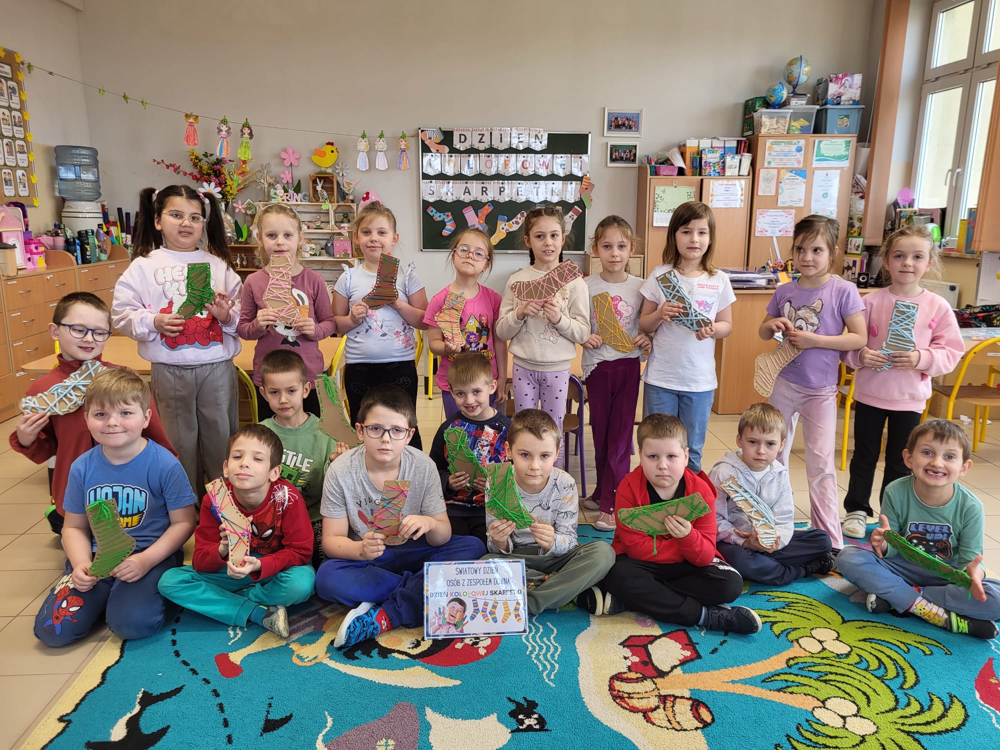 W naszym oddziale przedszkolnym obchodziliśmy wyjątkowe święto – Dzień Kolorowej Skarpetki. Jest to dzień, w którym okazujemy wsparcie i solidarność z osobami z zespołem Downa, a także uczymy dzieci empatii, akceptacji i szacunku dla różnorodności.