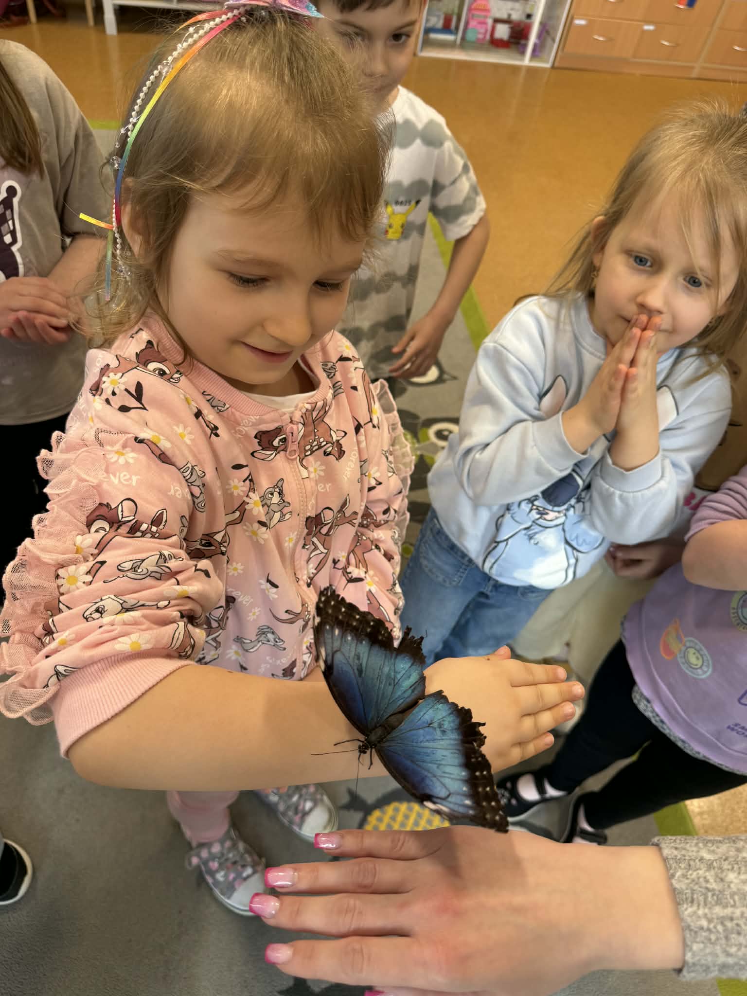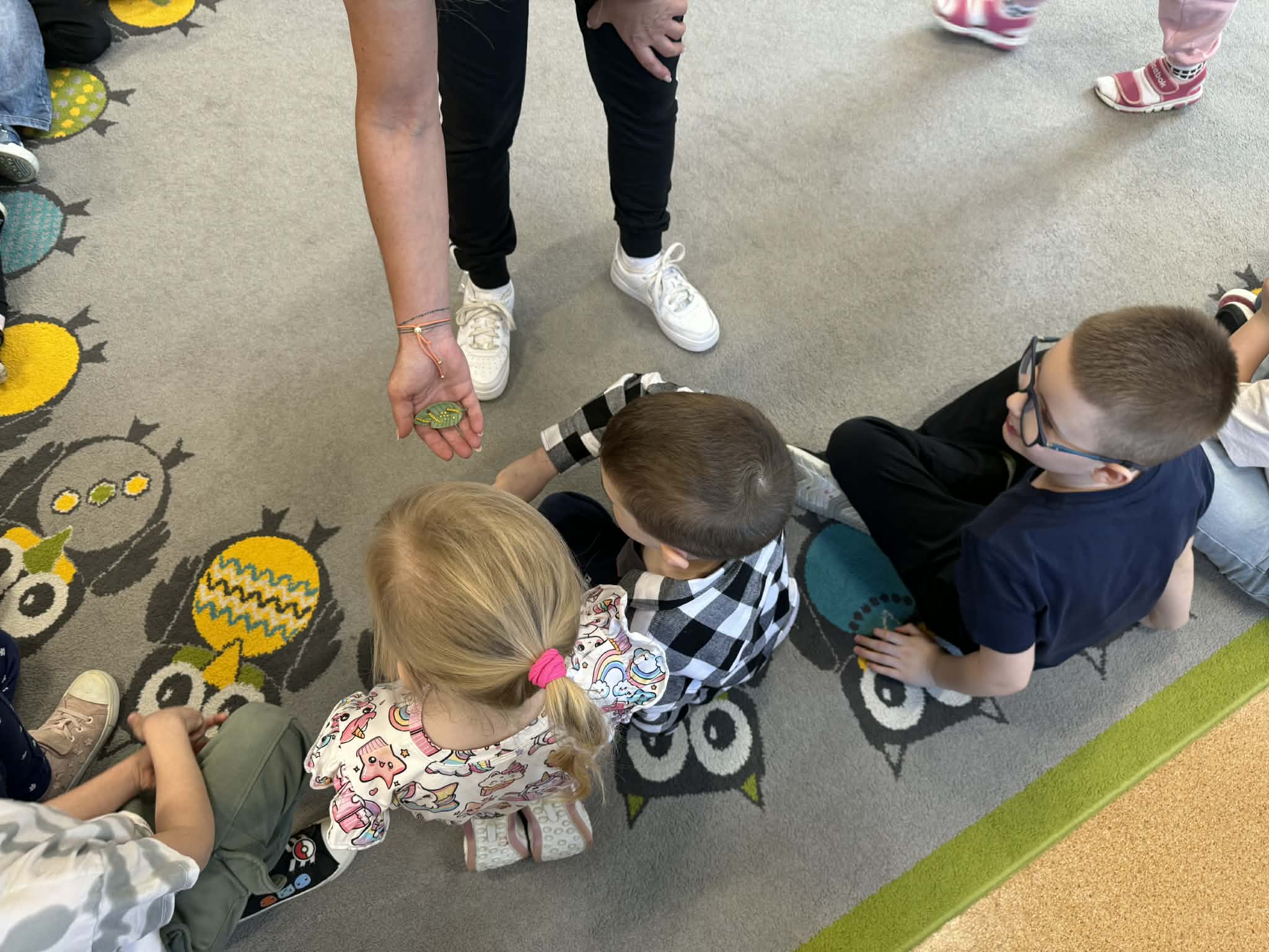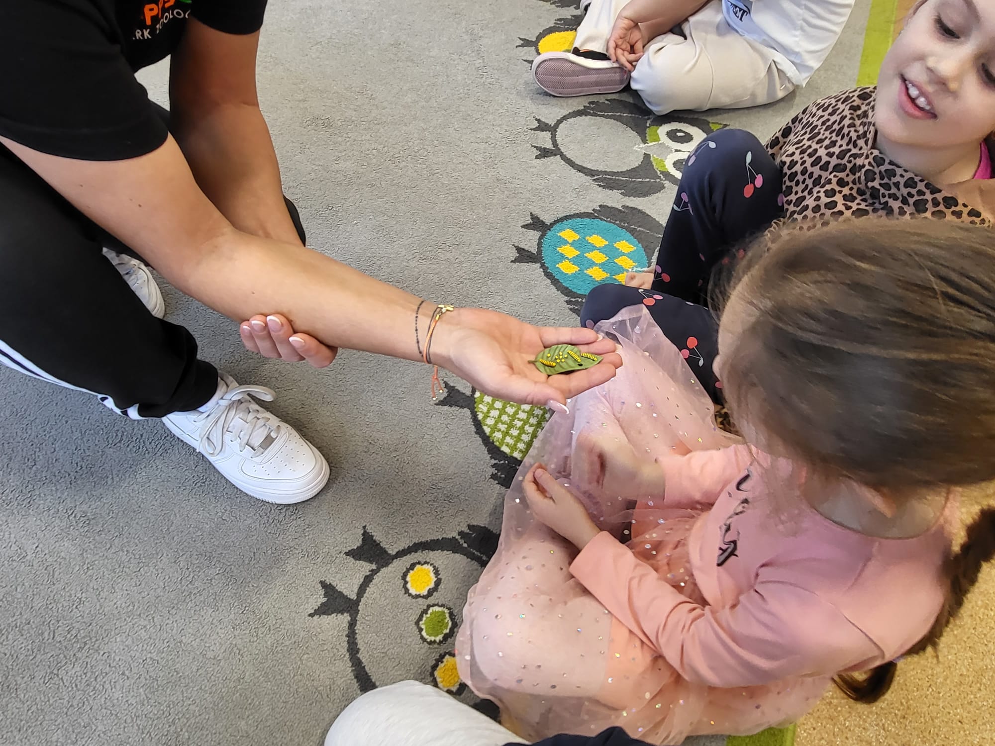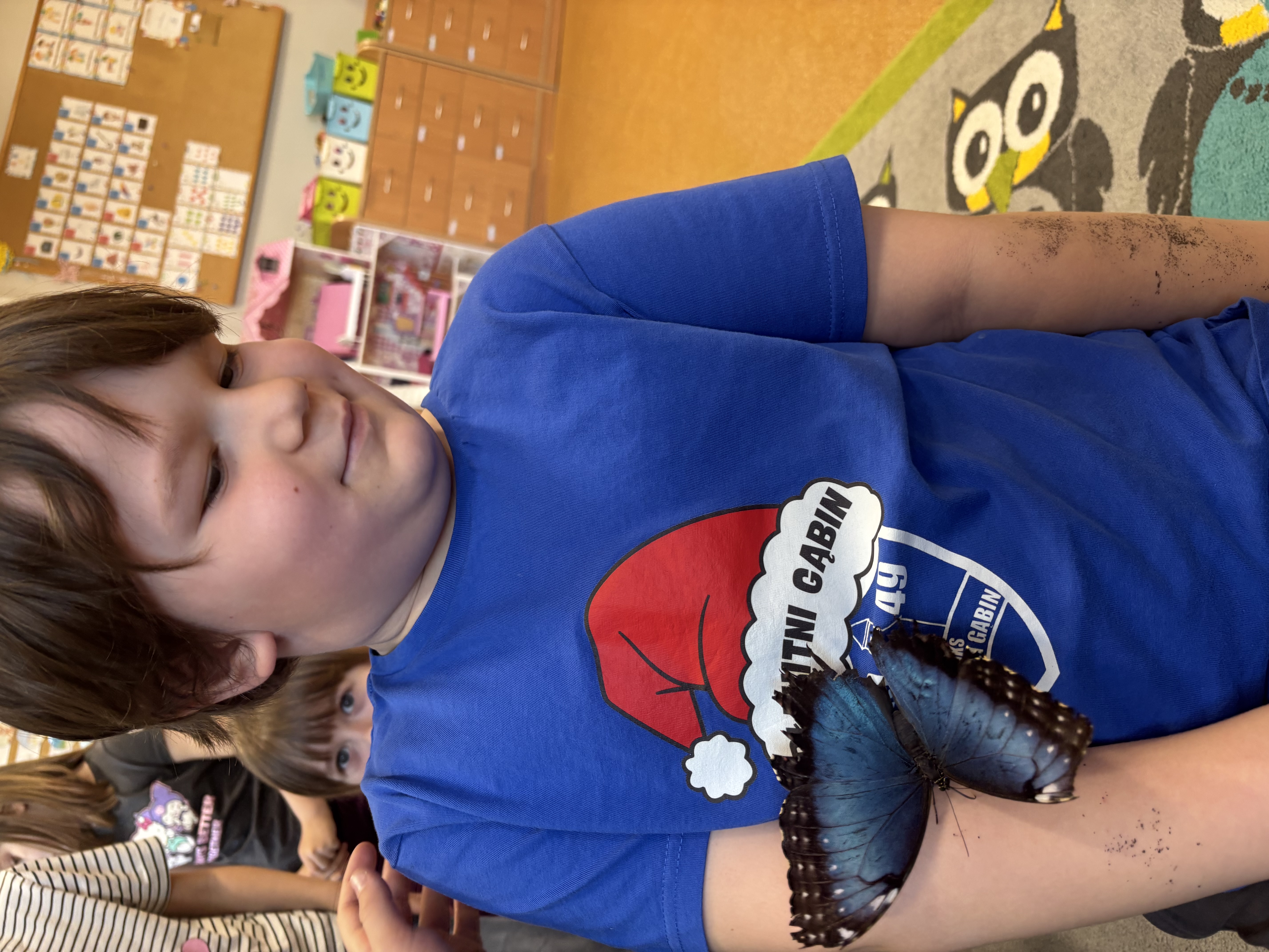 Podczas spotkania przedszkolaki dowiedziały się, jak wygląda cykl życia motyla – od jajeczka, przez gąsienicę i poczwarkę, aż do dorosłego owada. Dzieci z zaciekawieniem obserwowały kolorowe motyle, poznawały ich zwyczaje oraz różnorodność gatunków.