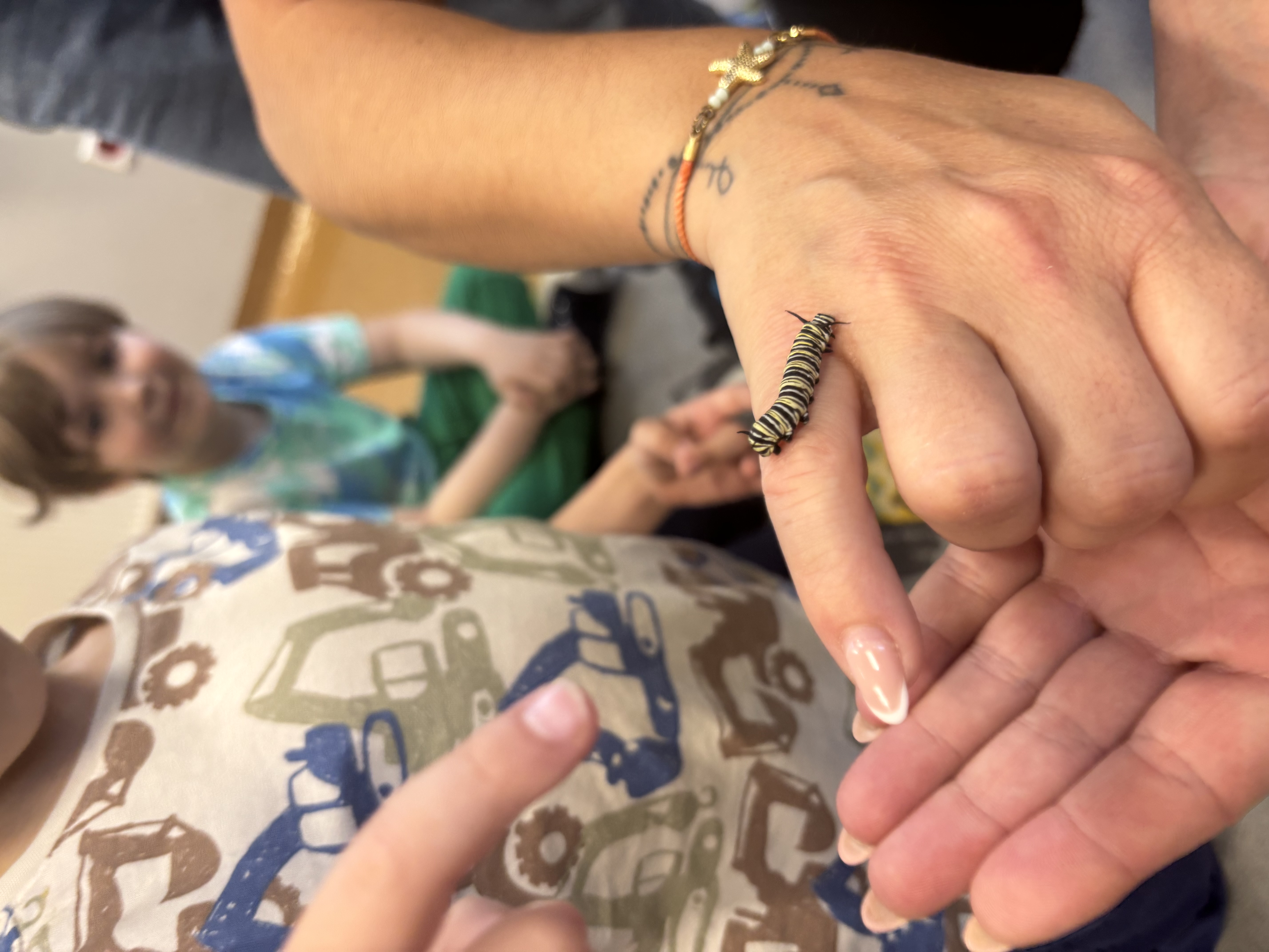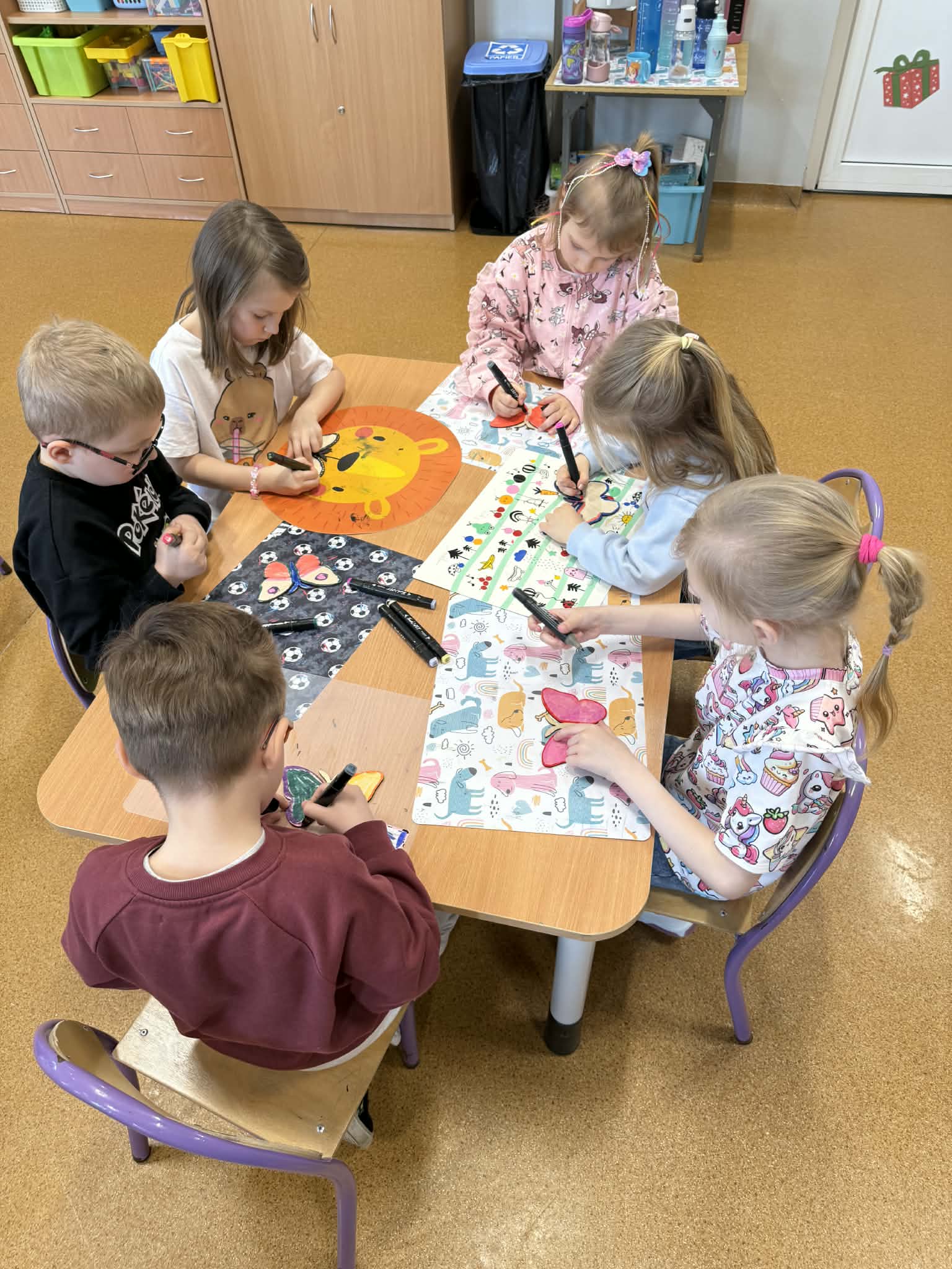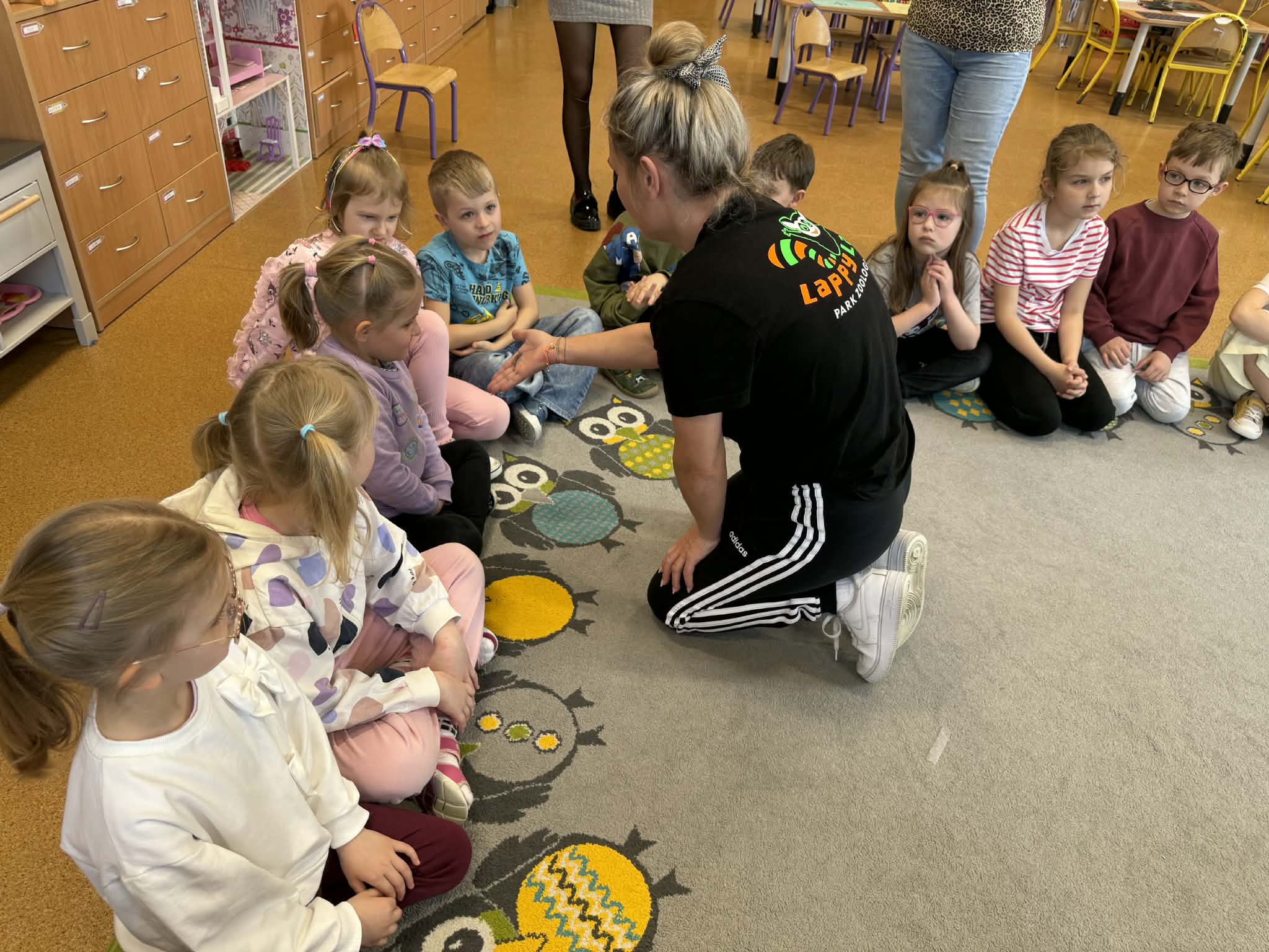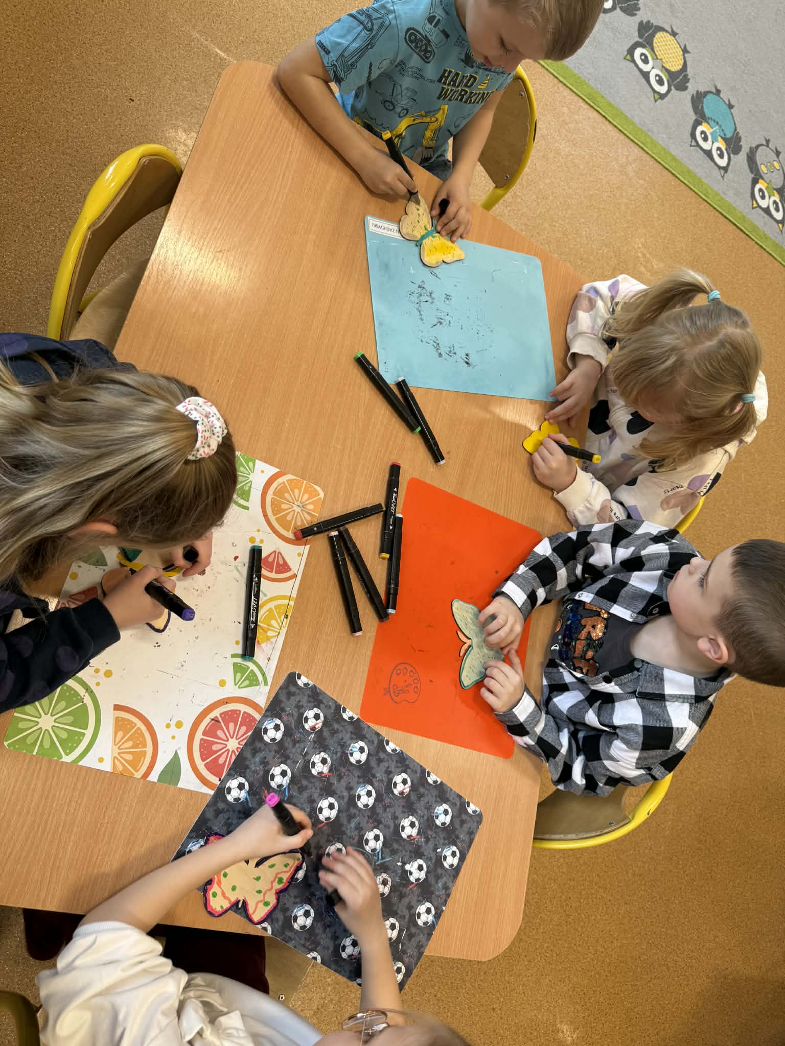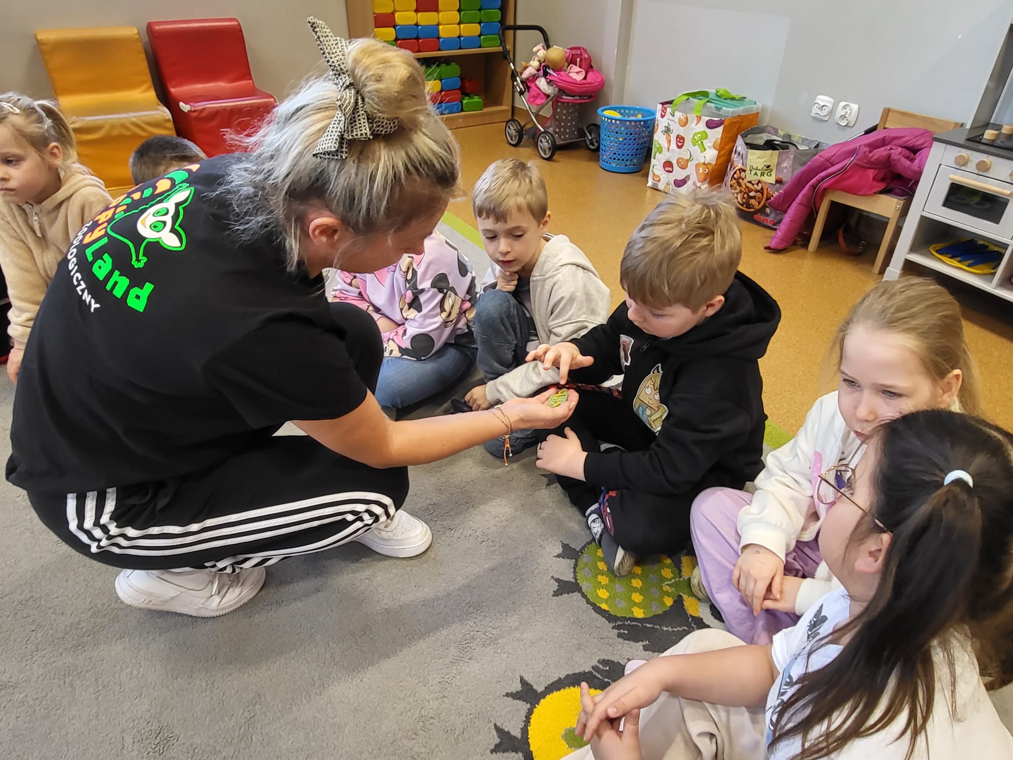 Podczas spotkania przedszkolaki dowiedziały się, jak wygląda cykl życia motyla – od jajeczka, przez gąsienicę i poczwarkę, aż do dorosłego owada. Dzieci z zaciekawieniem obserwowały kolorowe motyle, poznawały ich zwyczaje oraz różnorodność gatunków.