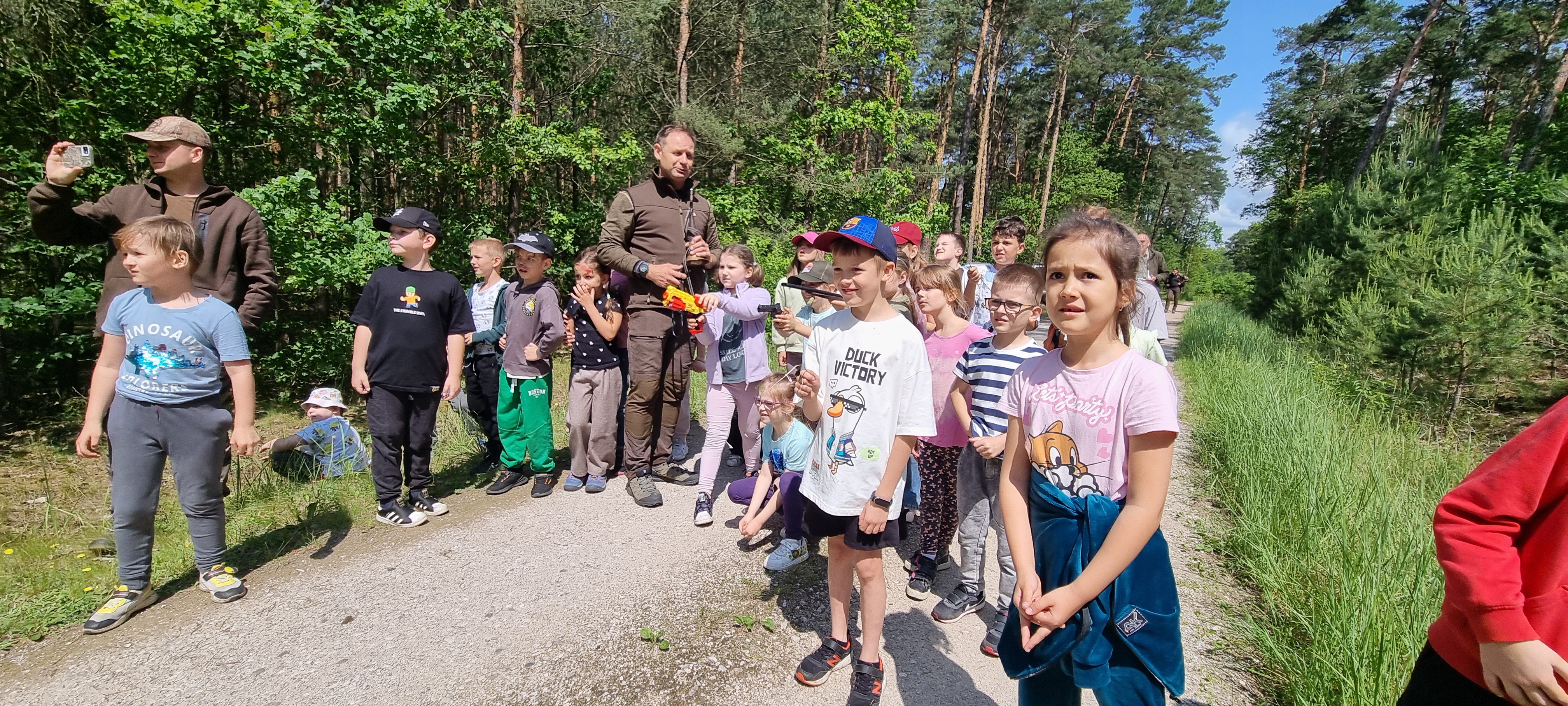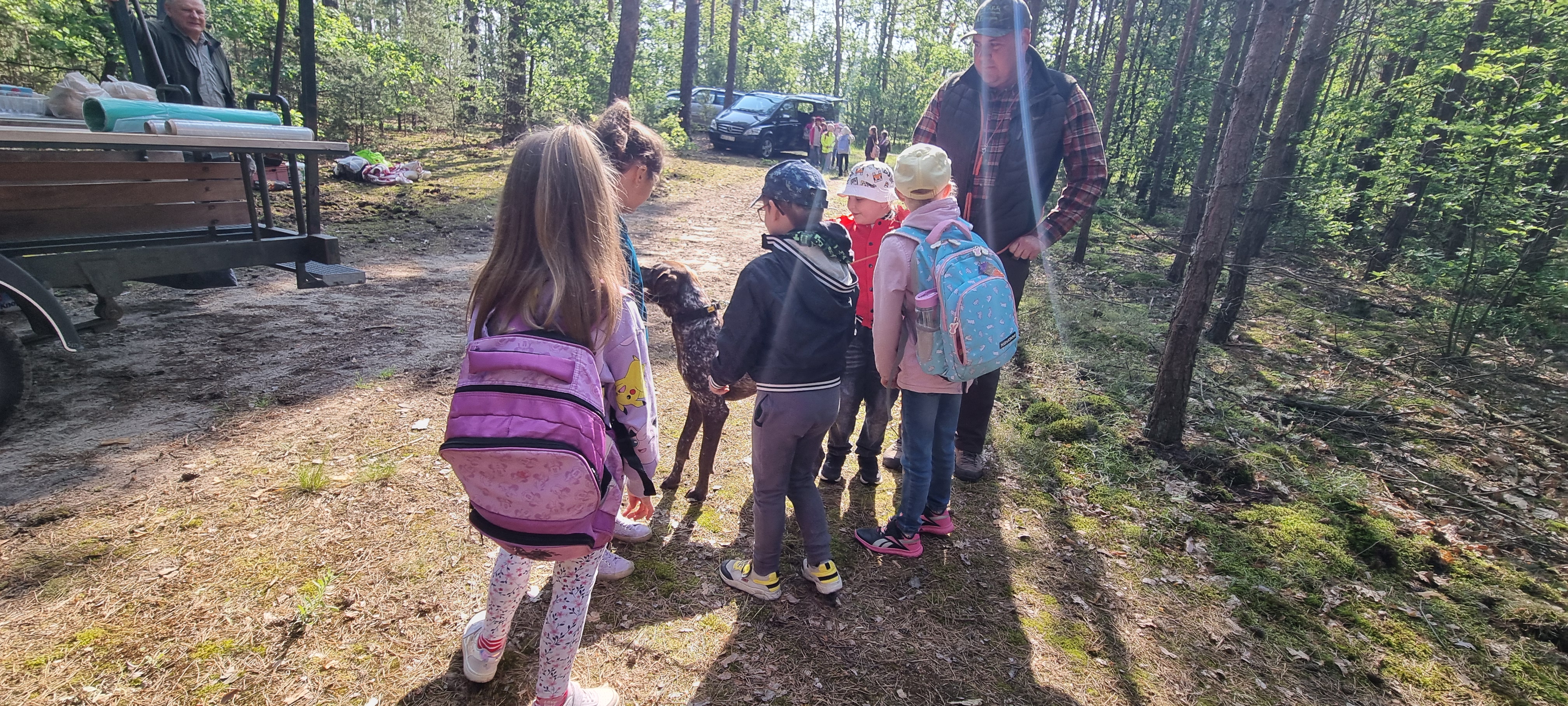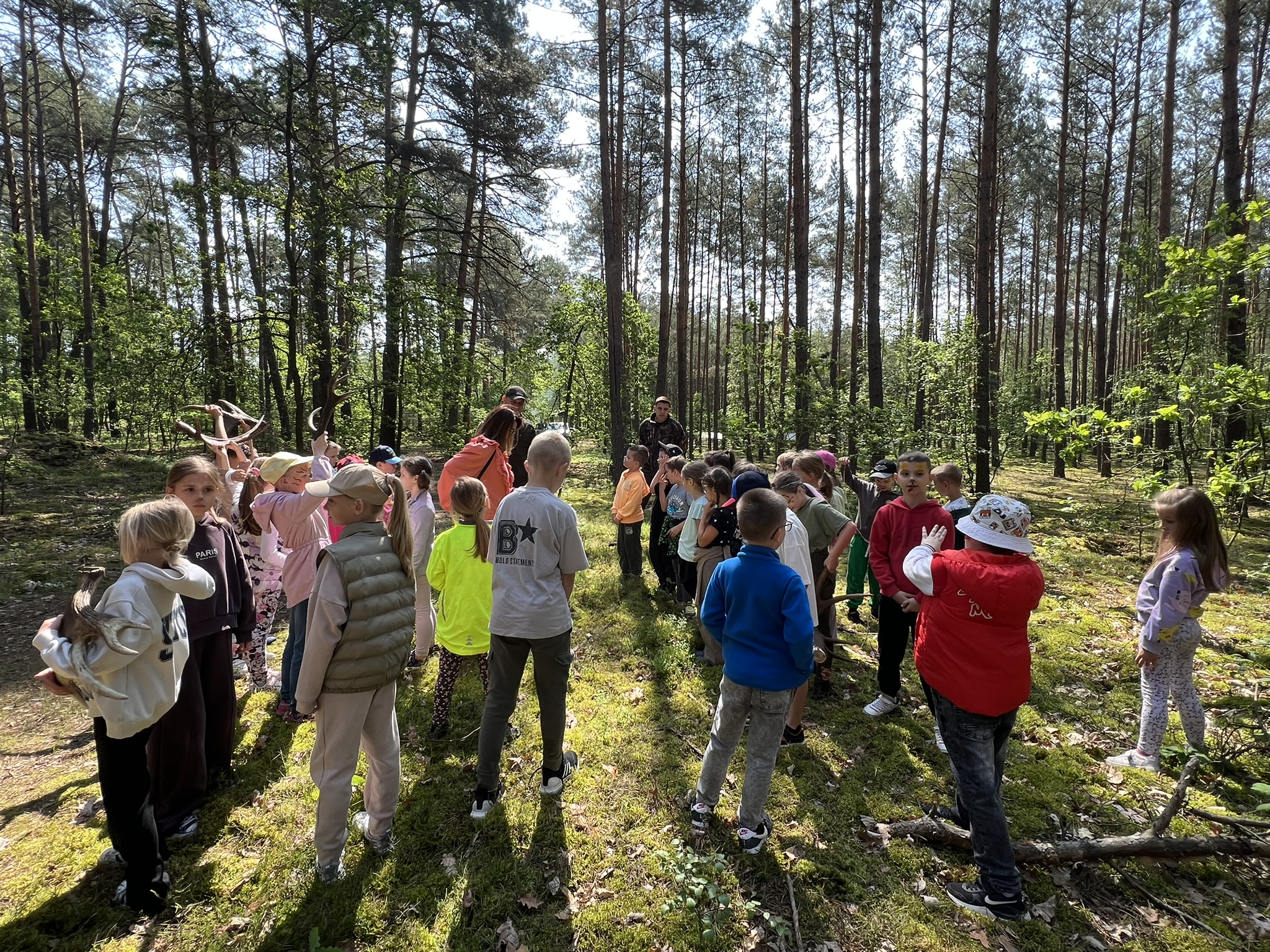 12 czerwca uczniowie obecnej klasy IIc i IId wzięli udział w niezwykłych zajęciach terenowych, które odbyły się w pobliskim lesie. Wydarzenie zostało zorganizowane przez rodziców jednej z uczennic we współpracy z Kołem Łowieckim „Kania”. Była to prawdziwa przygoda na łonie natury – pełna śmiechu, ruchu i edukacji przyrodniczej.