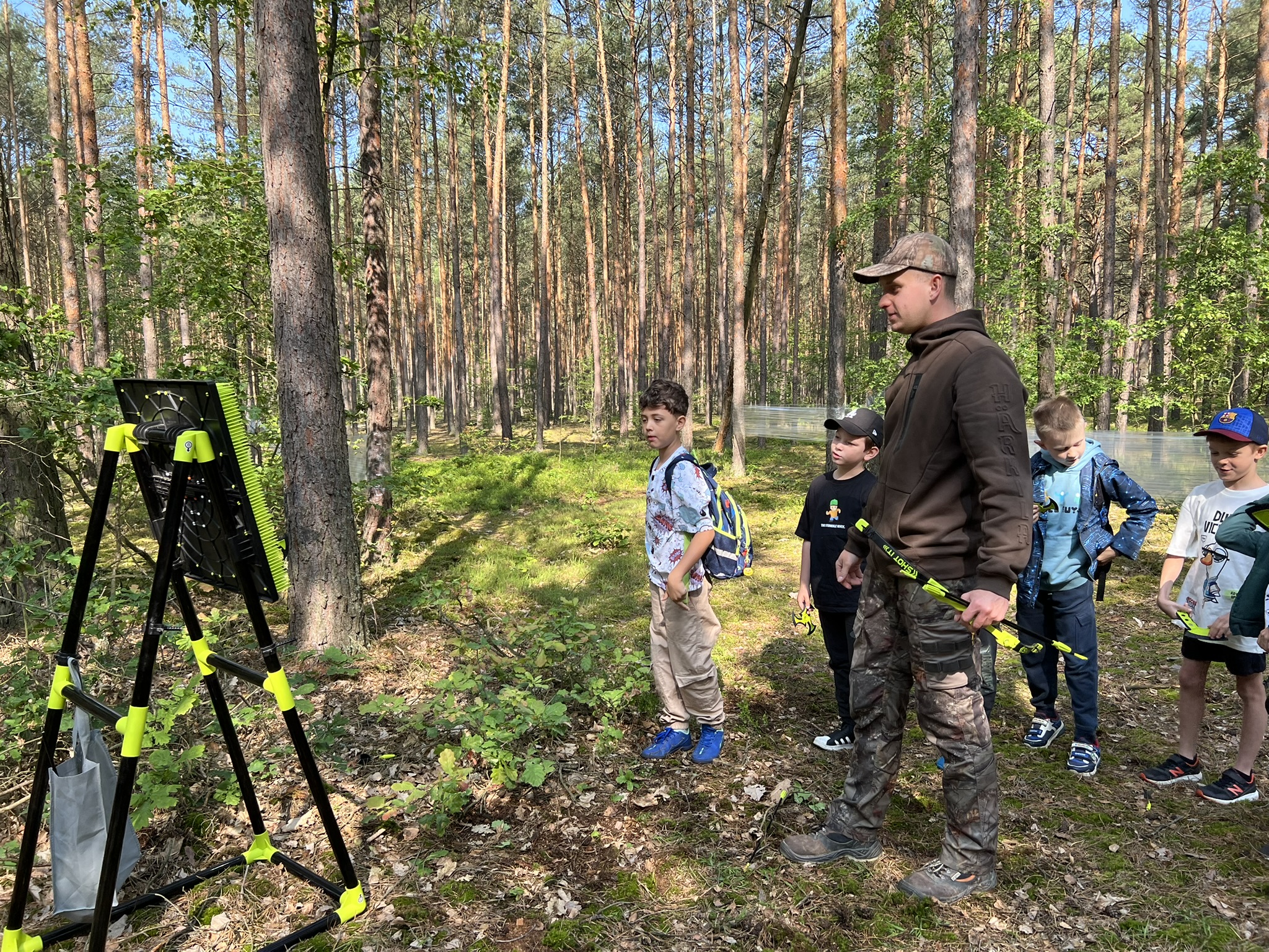 Ogromnym zainteresowaniem cieszyły się pokazy działania drona – dzieci mogły z bliska zobaczyć, jak nowoczesna technologia wspiera obserwację przyrody z lotu ptaka. Członkowie Koła Łowieckiego „Kania” opowiadali również o swojej pracy, o zwyczajach leśnych zwierząt i odpowiedzialnym gospodarowaniu zasobami przyrody.