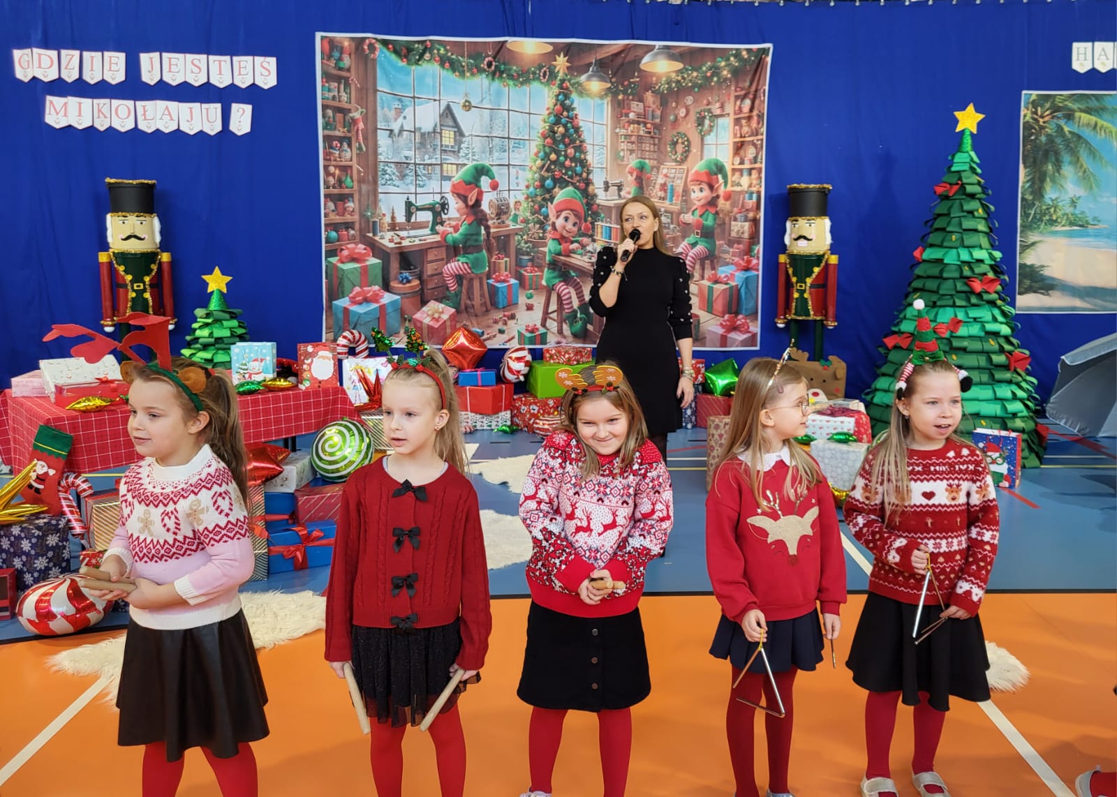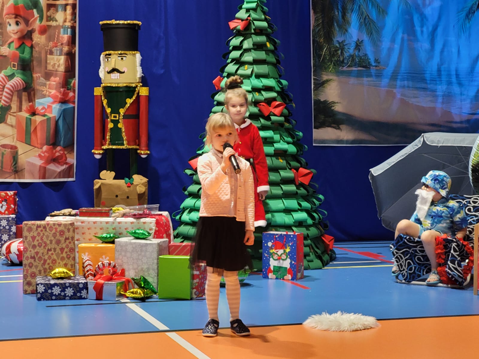 Dzieci z zerówki zaprezentowały wyjątkowe przedstawienie bożonarodzeniowe pt. „Mikołaj na wakacjach". Przedszkolakom towarzyszył zespół "Brzdąc" ,który rozpoczął całą uroczystość. Mali aktorzy w humorystyczny i pełen uroku sposób pokazali, co może się wydarzyć, gdy Święty Mikołaj postanowi zrobić sobie przerwę od świątecznych obowiązków.