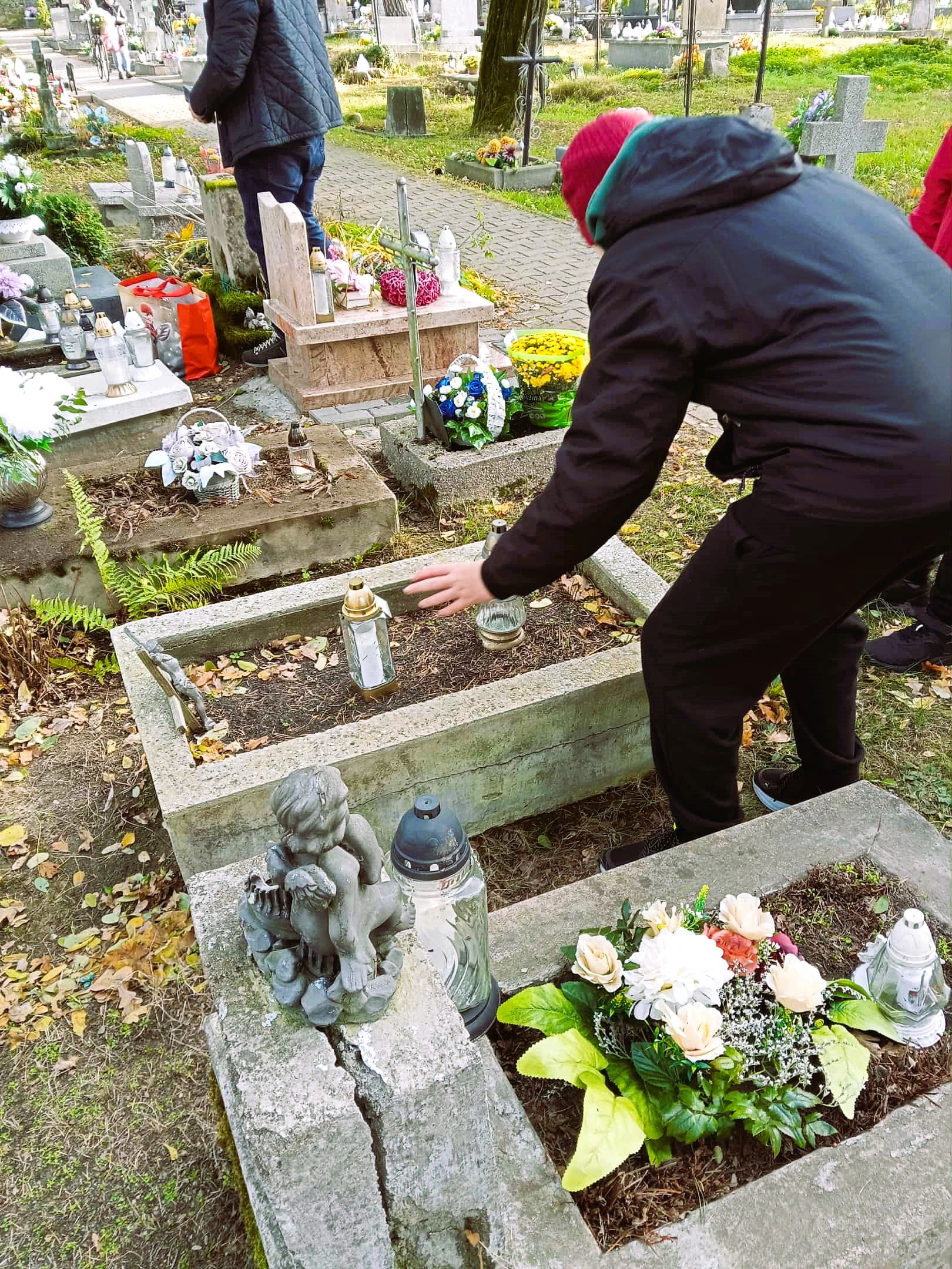 Dzień Wszystkich Świętych to czas refleksji, zadumy i pamięci o tych, którzy odeszli. W naszej szkole tradycyjnie już odbyła się zbiórka zniczy. Dzięki ofiarności uczniów, rodziców i nauczycieli udało się zebrać ich naprawdę wiele. W przeddzień tego ważnego dla nas dnia, uczniowie ze Szkolnego Koła Wolontariatu wraz z opiekunami odwiedzili lokalny cmentarz, by zapalić światełka pamięci na grobach pracowników szkoły, absolwentów, na grobie Nieznanego Żołnierza, a także na zapomnianych mogiłach, o które dziś już nikt nie dba.