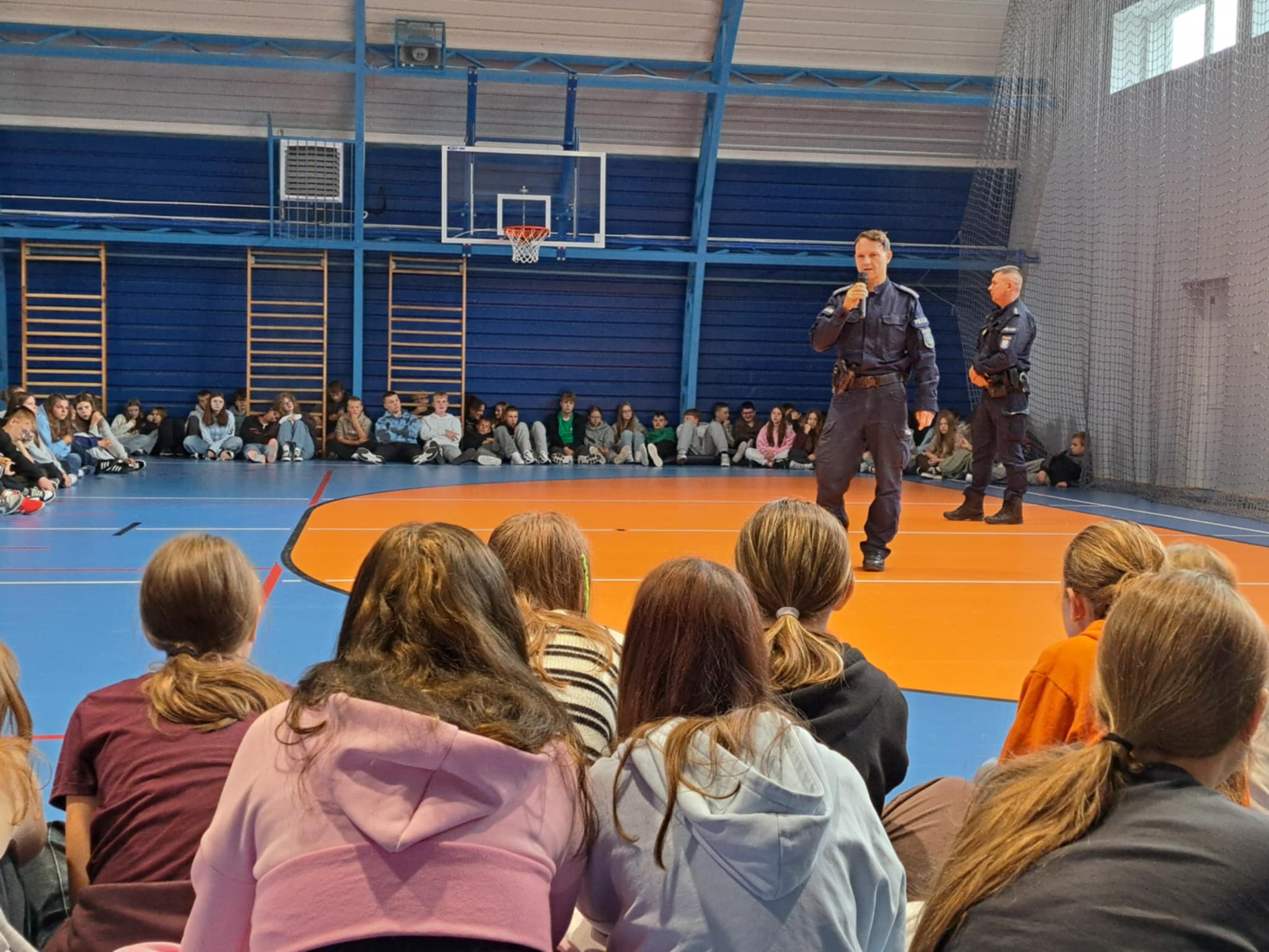 1 października naszą szkołę odwiedzili funkcjonariusze Policji, którzy przeprowadzili spotkania edukacyjne z uczniami klas 4–8. Celem wizyty było zwiększenie świadomości dzieci i młodzieży na temat bezpieczeństwa oraz zasad obowiązujących w ruchu drogowym - szczególnie dotyczących poruszania się hulajnogami elektrycznymi.