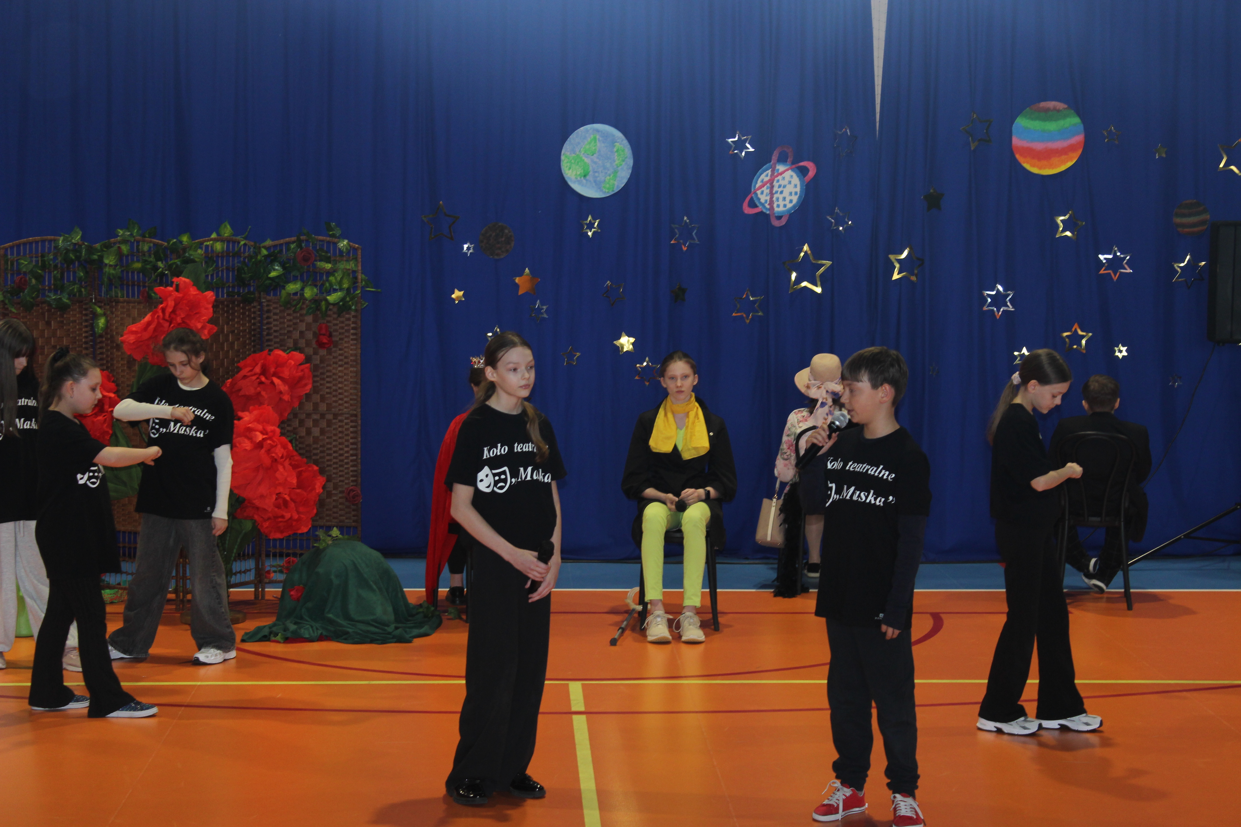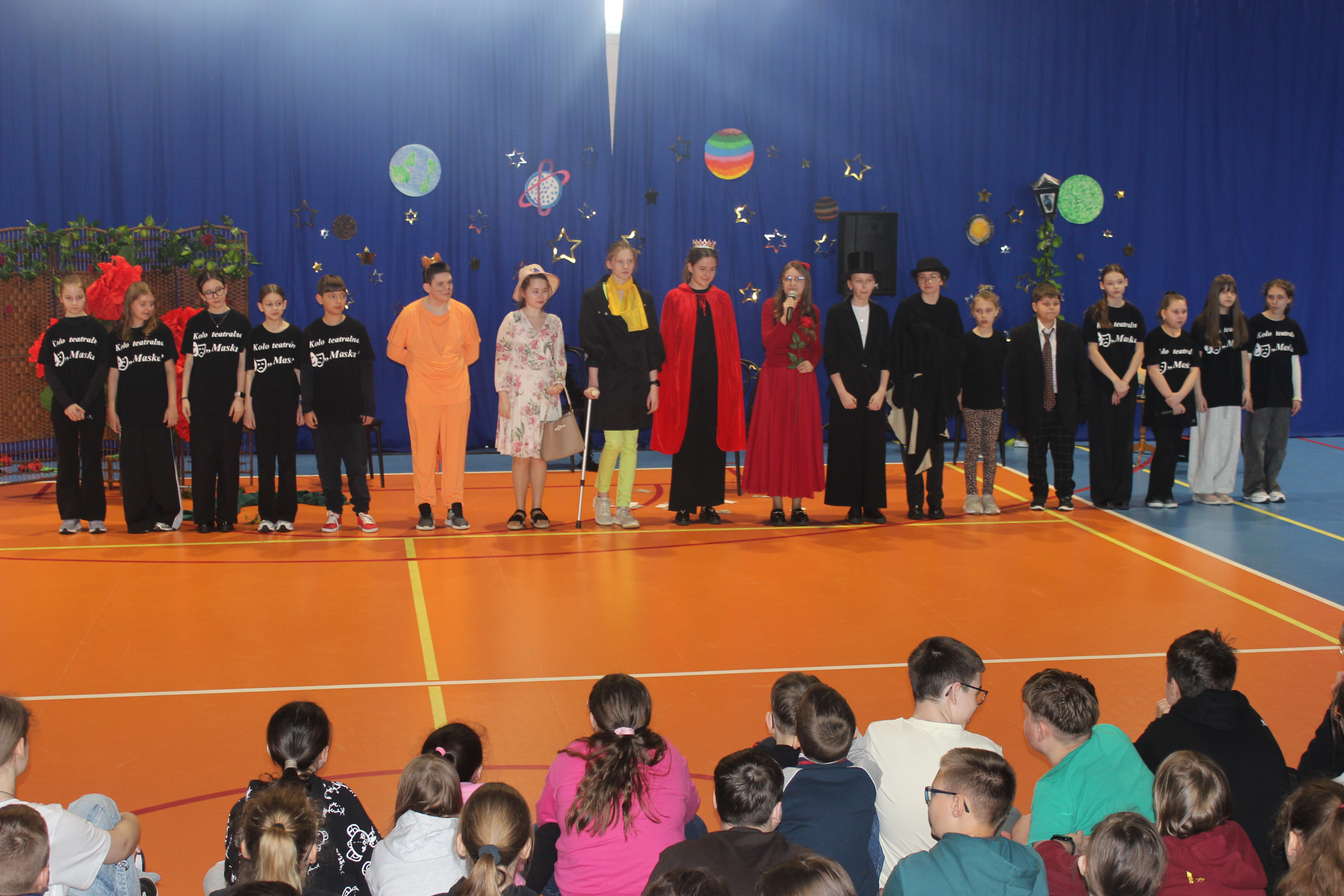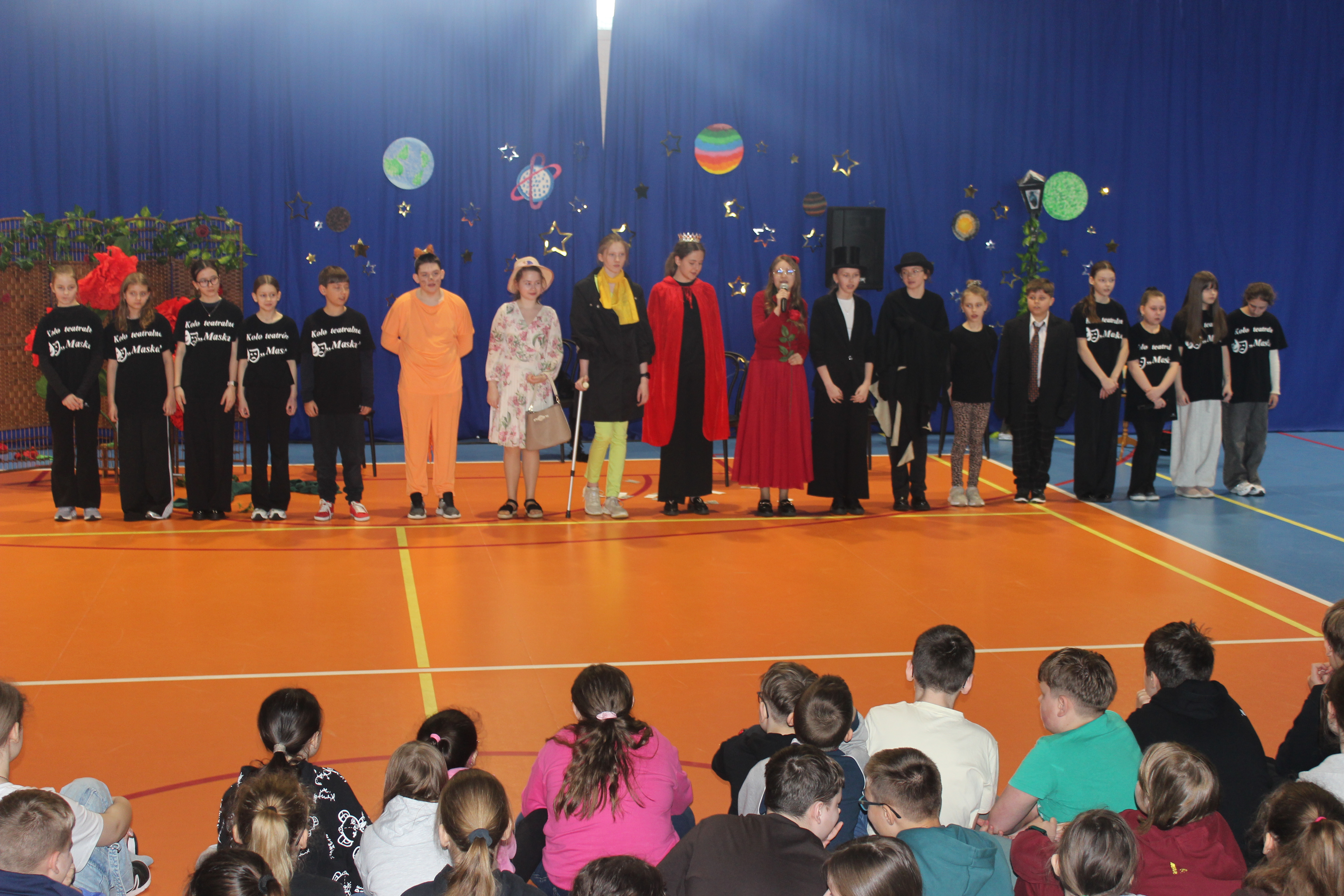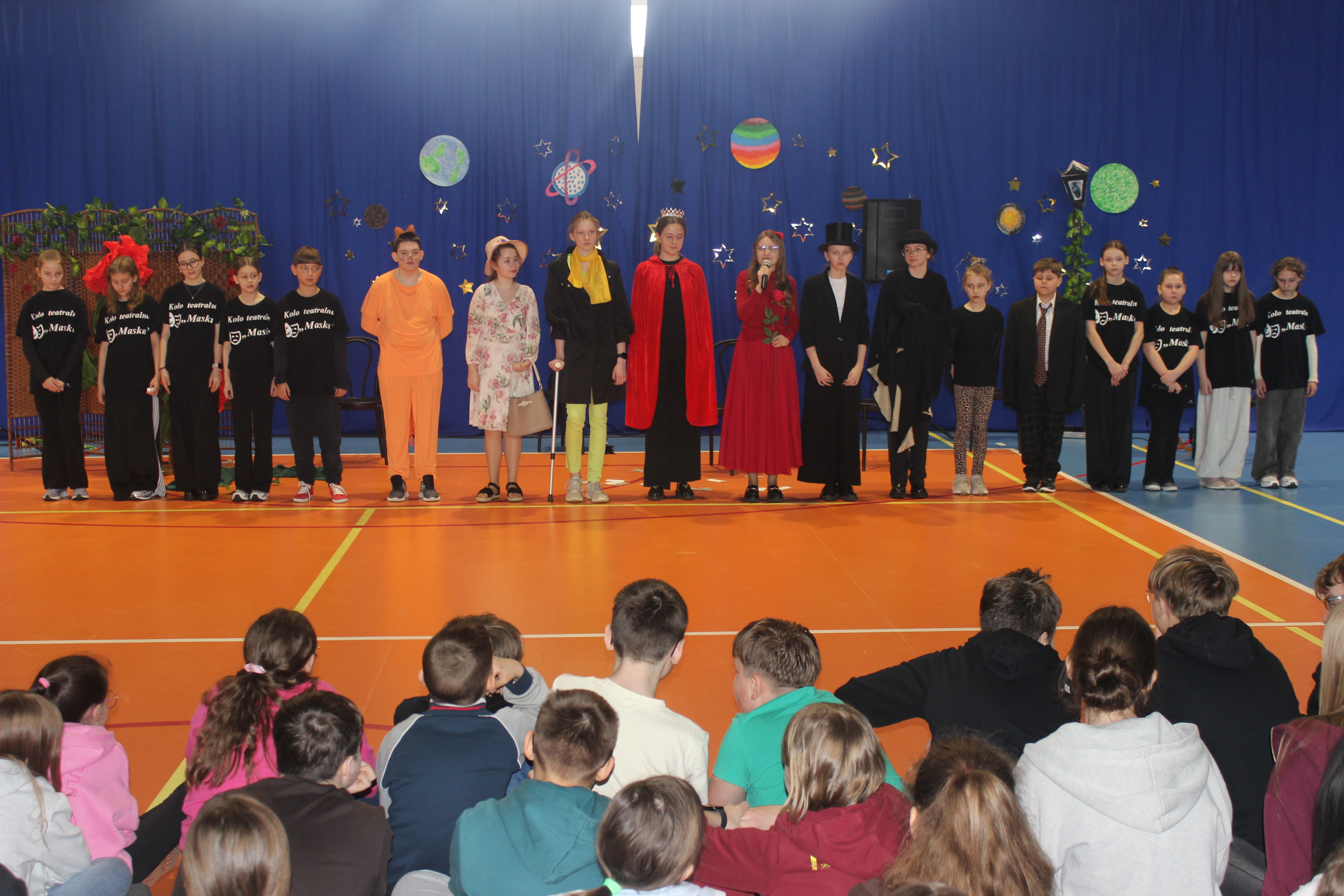 Z tej okazji uczniowie należący do koła teatralnego „Maska”, pracujący w dwóch grupach wiekowych, zaprezentowali wyjątkowy spektakl pt. „Mały Książę”. Młodzi artyści od wielu tygodni przygotowywali się do występu, doskonaląc swoje umiejętności sceniczne. Ich zaangażowanie znalazło odzwierciedlenie w pięknym przedstawieniu.