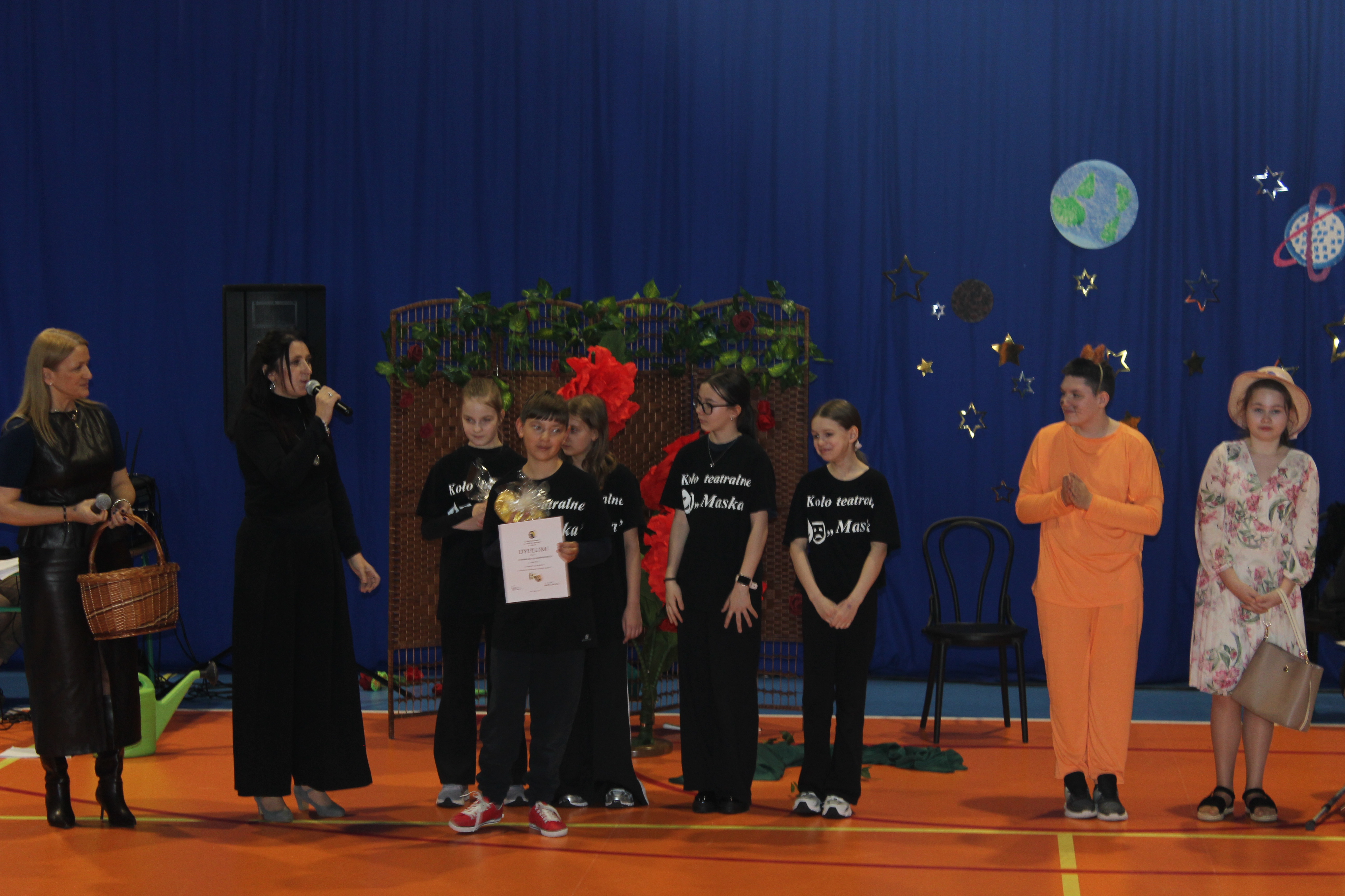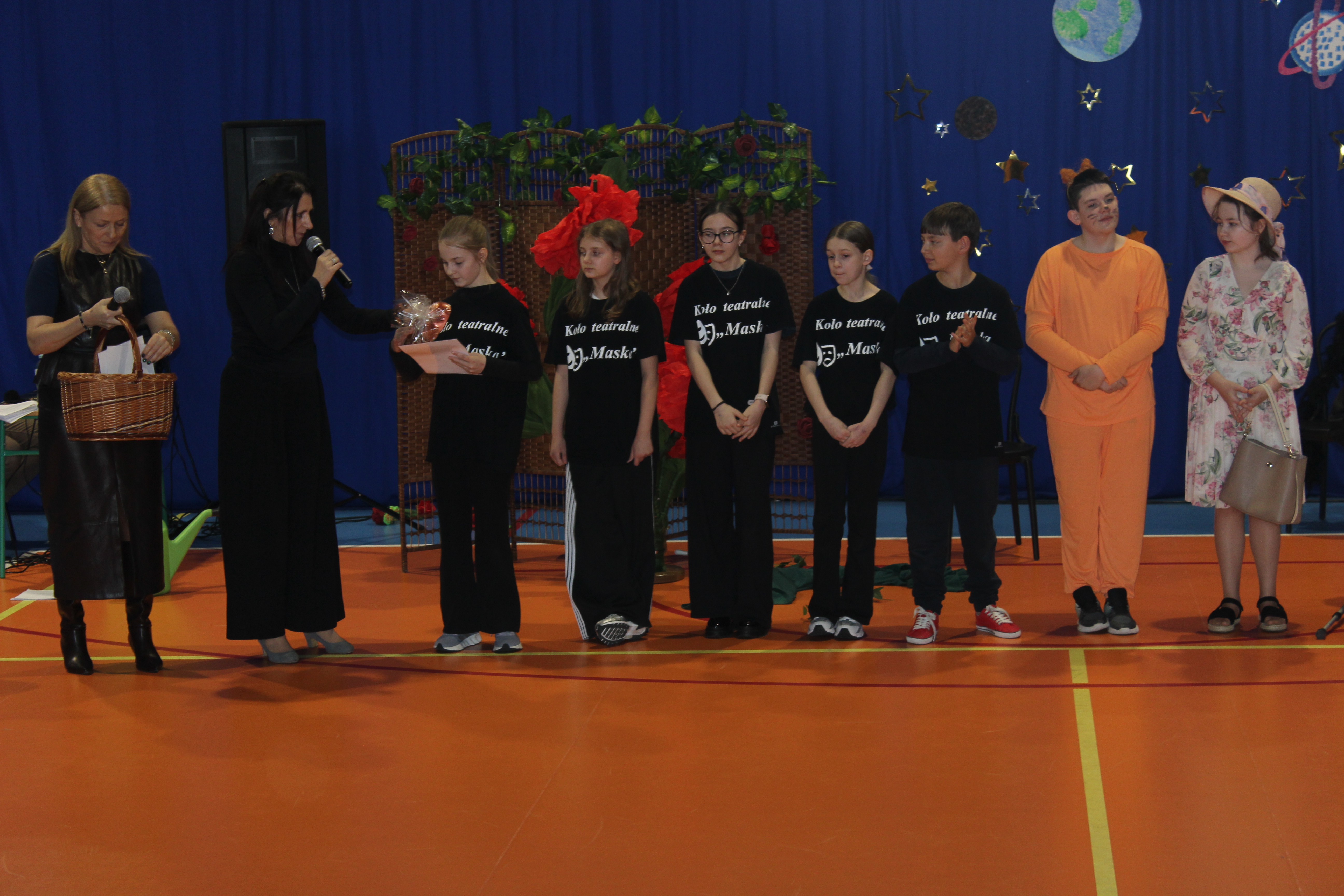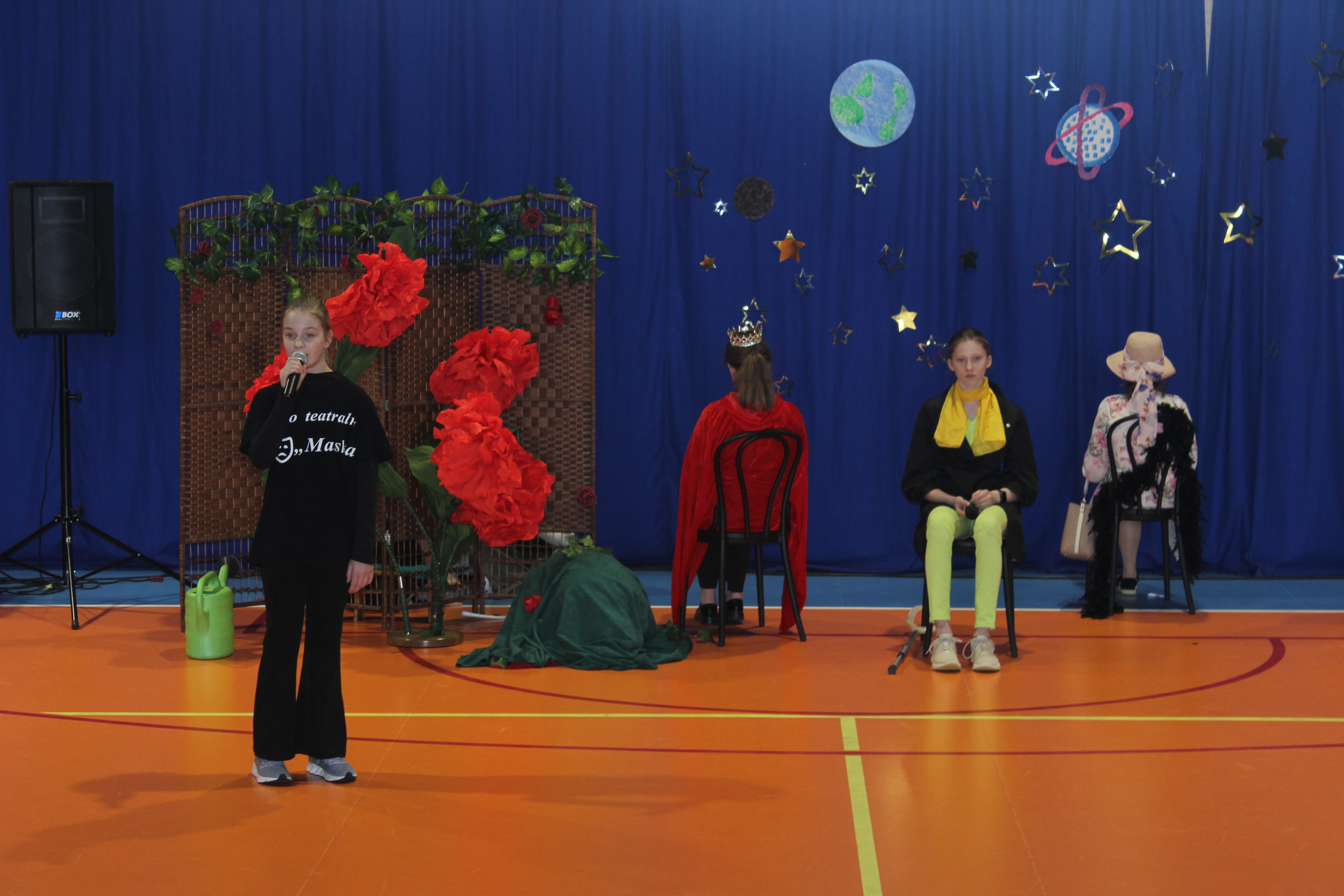Z tej okazji uczniowie należący do koła teatralnego „Maska”, pracujący w dwóch grupach wiekowych, zaprezentowali wyjątkowy spektakl pt. „Mały Książę”. Młodzi artyści od wielu tygodni przygotowywali się do występu, doskonaląc swoje umiejętności sceniczne. Ich zaangażowanie znalazło odzwierciedlenie w pięknym przedstawieniu.