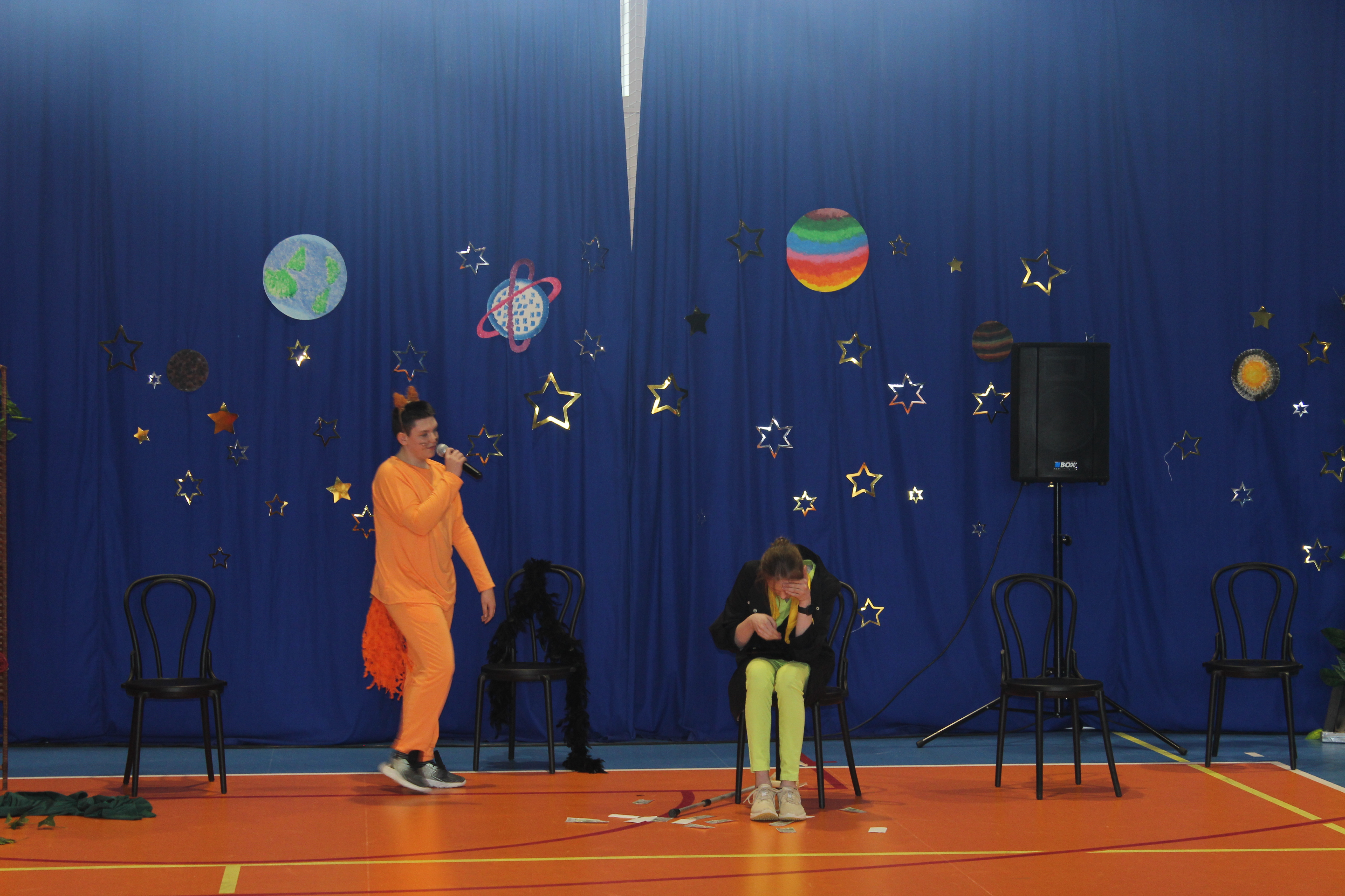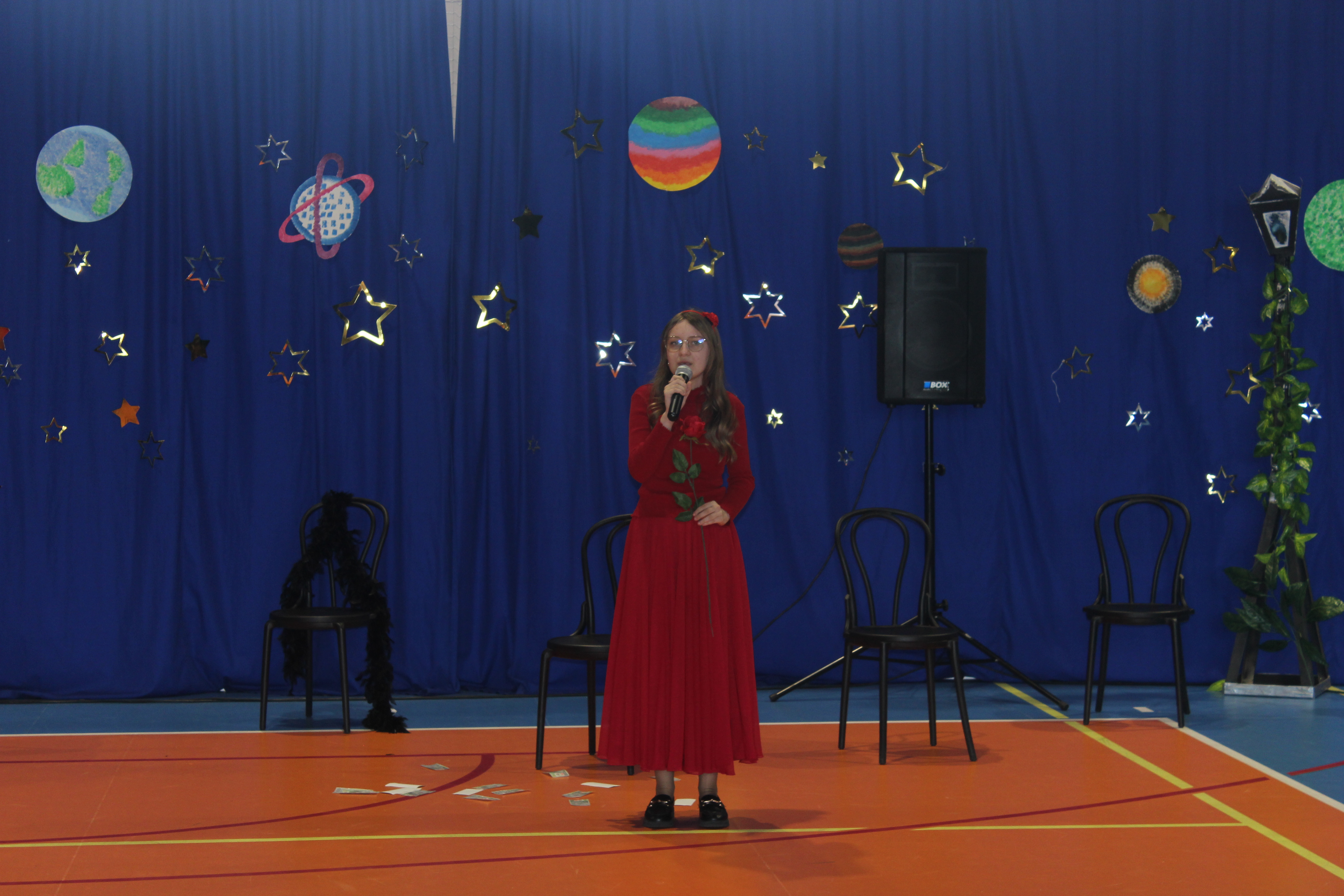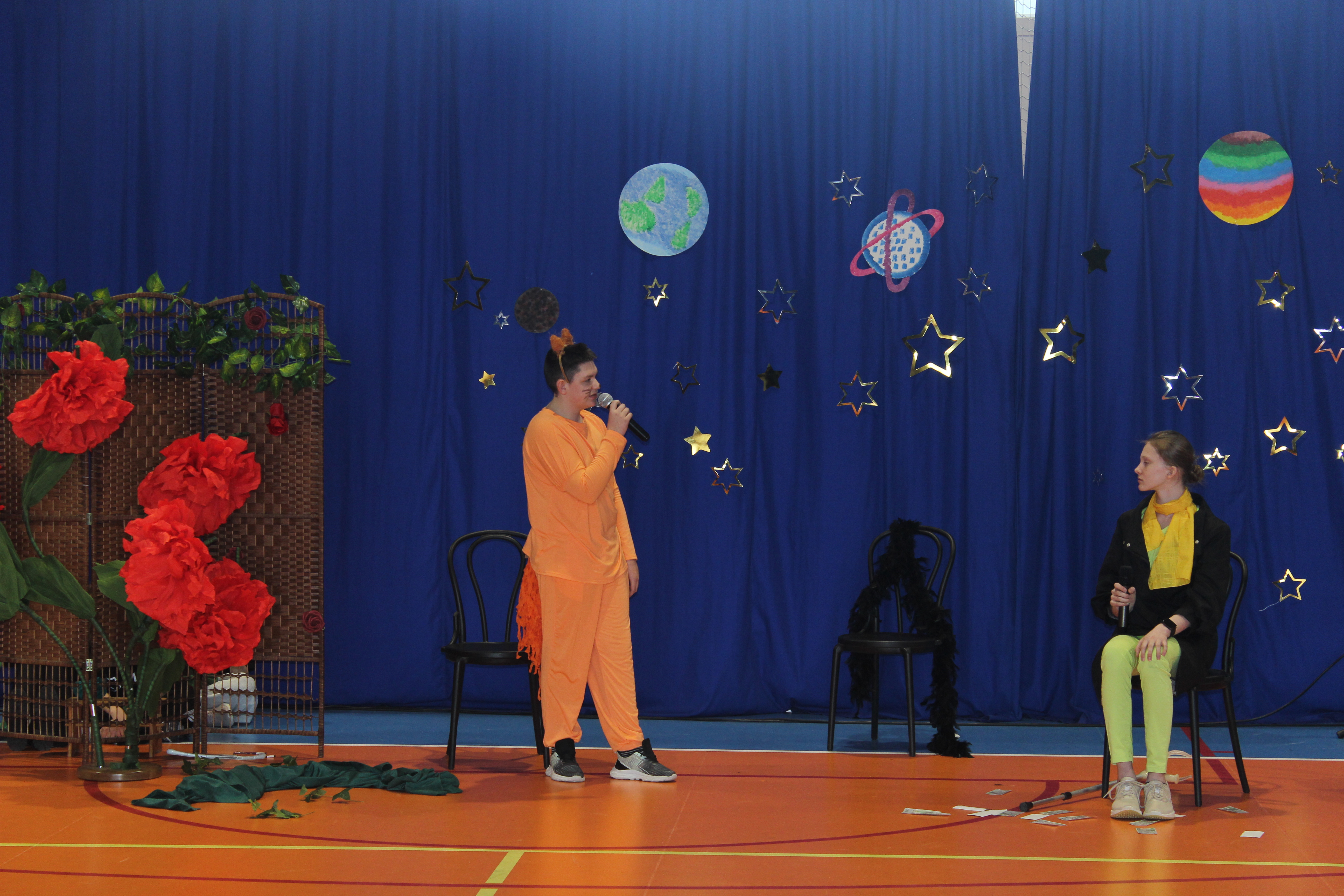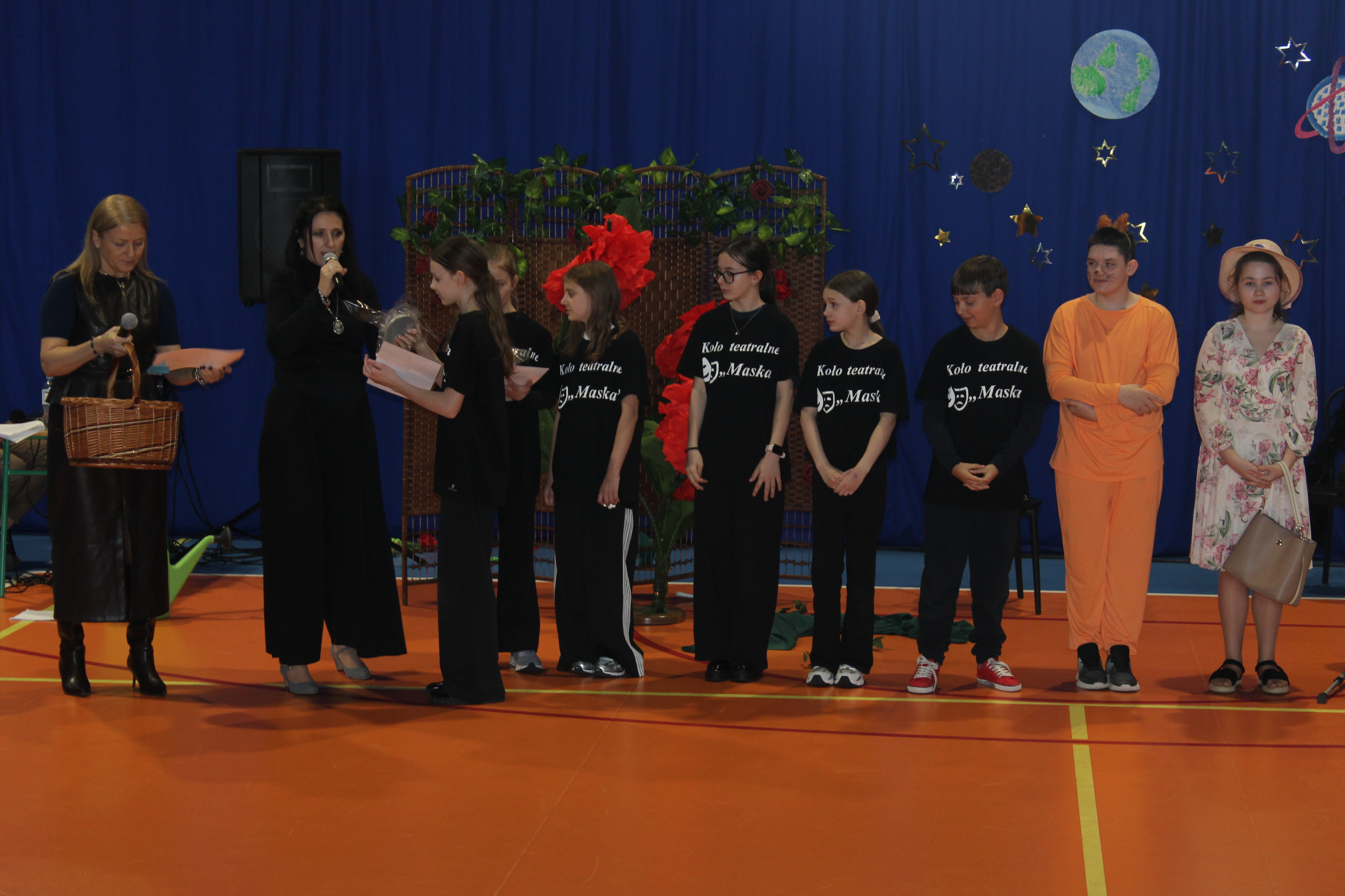 Z tej okazji uczniowie należący do koła teatralnego „Maska”, pracujący w dwóch grupach wiekowych, zaprezentowali wyjątkowy spektakl pt. „Mały Książę”. Młodzi artyści od wielu tygodni przygotowywali się do występu, doskonaląc swoje umiejętności sceniczne. Ich zaangażowanie znalazło odzwierciedlenie w pięknym przedstawieniu.