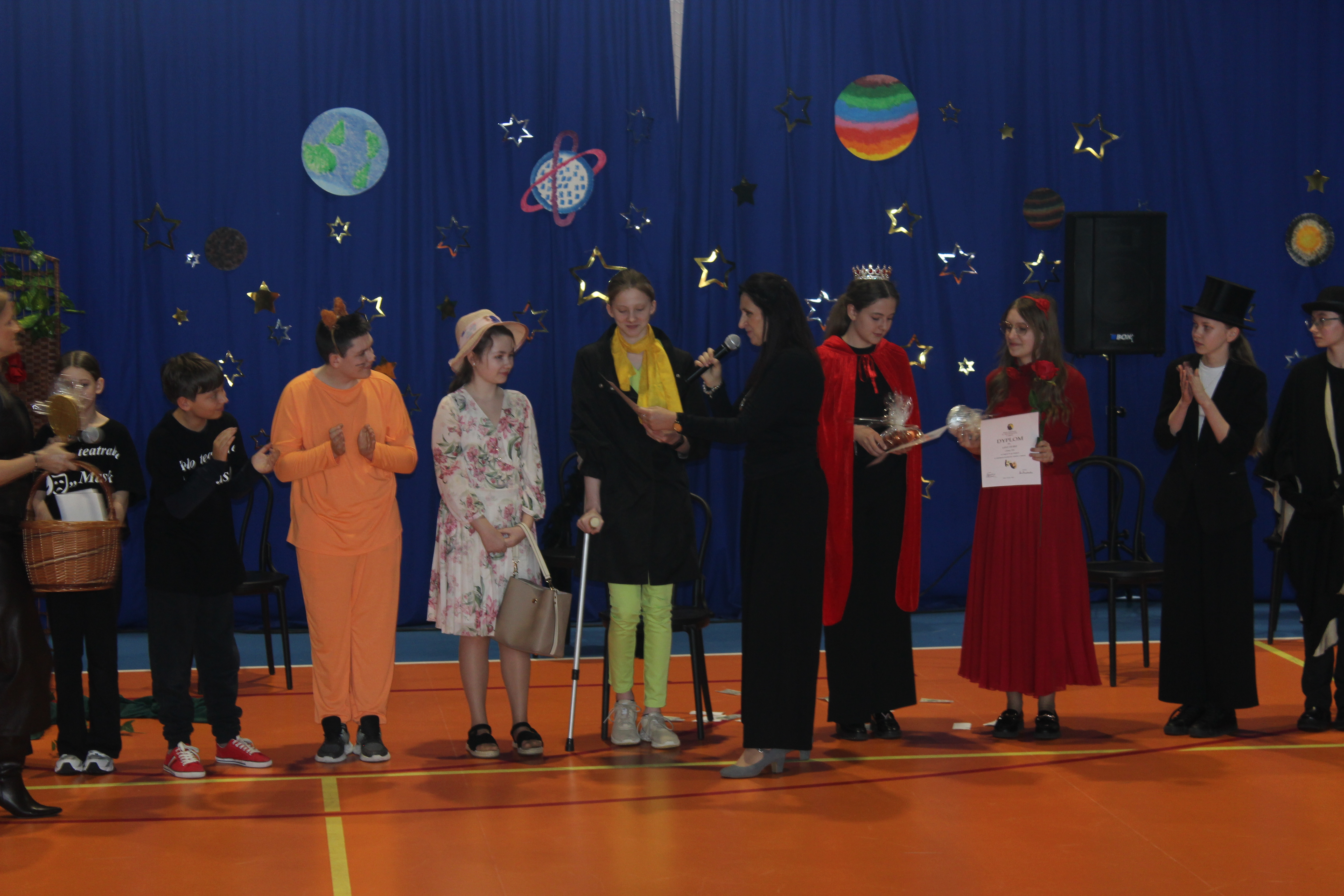 Szkolna scena stała się miejscem magicznym. Publiczność nagrodziła młodych aktorów brawami, doceniając ich pracę, odwagę i talent.