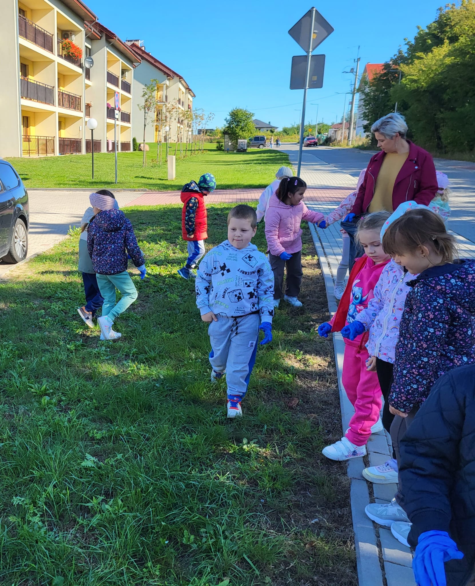 Najmłodsi, wyposażeni w rękawiczki i worki, z ogromnym zaangażowaniem porządkowali teren wokół przedszkola oraz pobliskie osiedle. Dzieci z uśmiechem na twarzy, ale też dużą odpowiedzialnością podeszły do zadania – udowadniając, że każdy, niezależnie od wieku, może dbać o czystość swojego otoczenia.