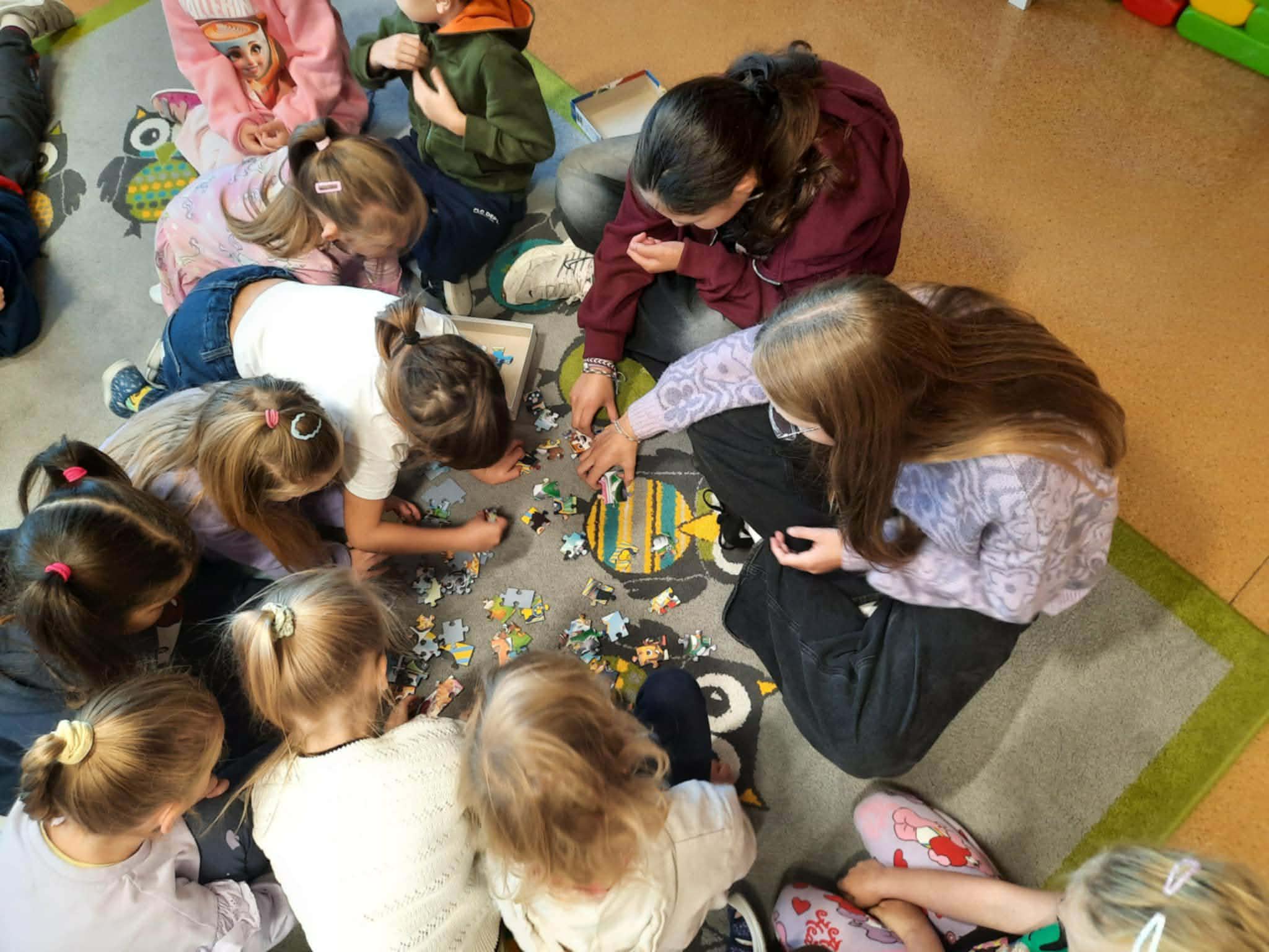Akcja „Piątkowe poranki z bajką i muzyką” to piękny przykład współpracy między uczniami a przedszkolakami. Dla wolontariuszy była to nie tylko okazja do dzielenia się swoim czasem i talentami, ale także cenna lekcja empatii, odpowiedzialności i budowania relacji.