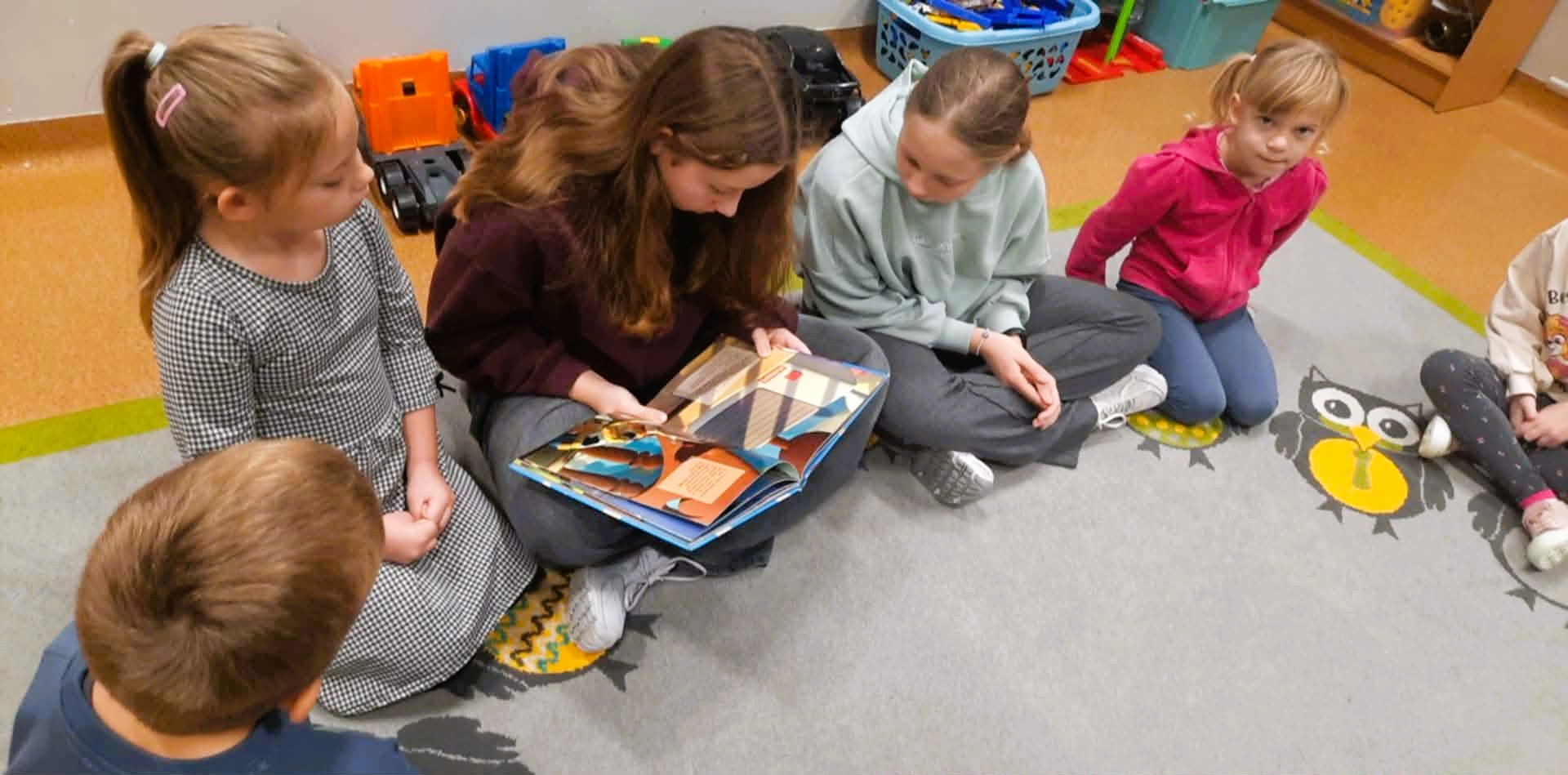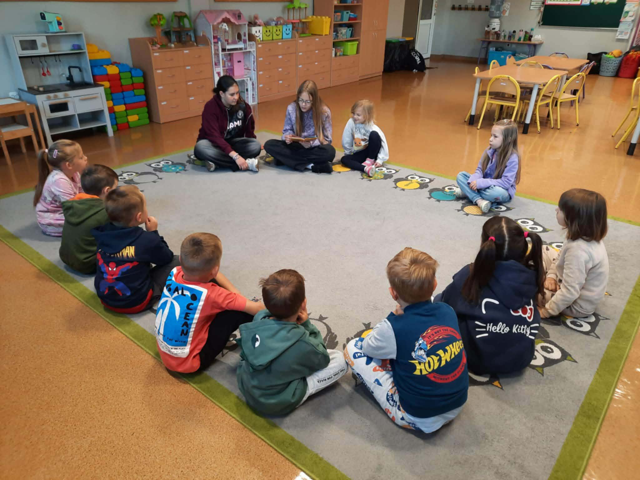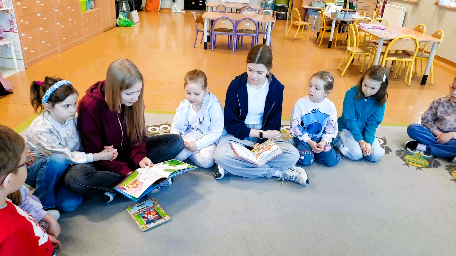 Każdy piątek od samego rana stawał się dla najmłodszych czasem pełnym radości, uśmiechu i twórczej zabawy. Wolontariusze z ogromnym zaangażowaniem odwiedzali przedszkolaków, wprowadzając ich w świat literatury dziecięcej poprzez wspólne czytanie bajek. Barwne historie, ciekawe postacie i ciepła atmosfera sprawiały, że dzieci z niecierpliwością wyczekiwały kolejnych spotkań.