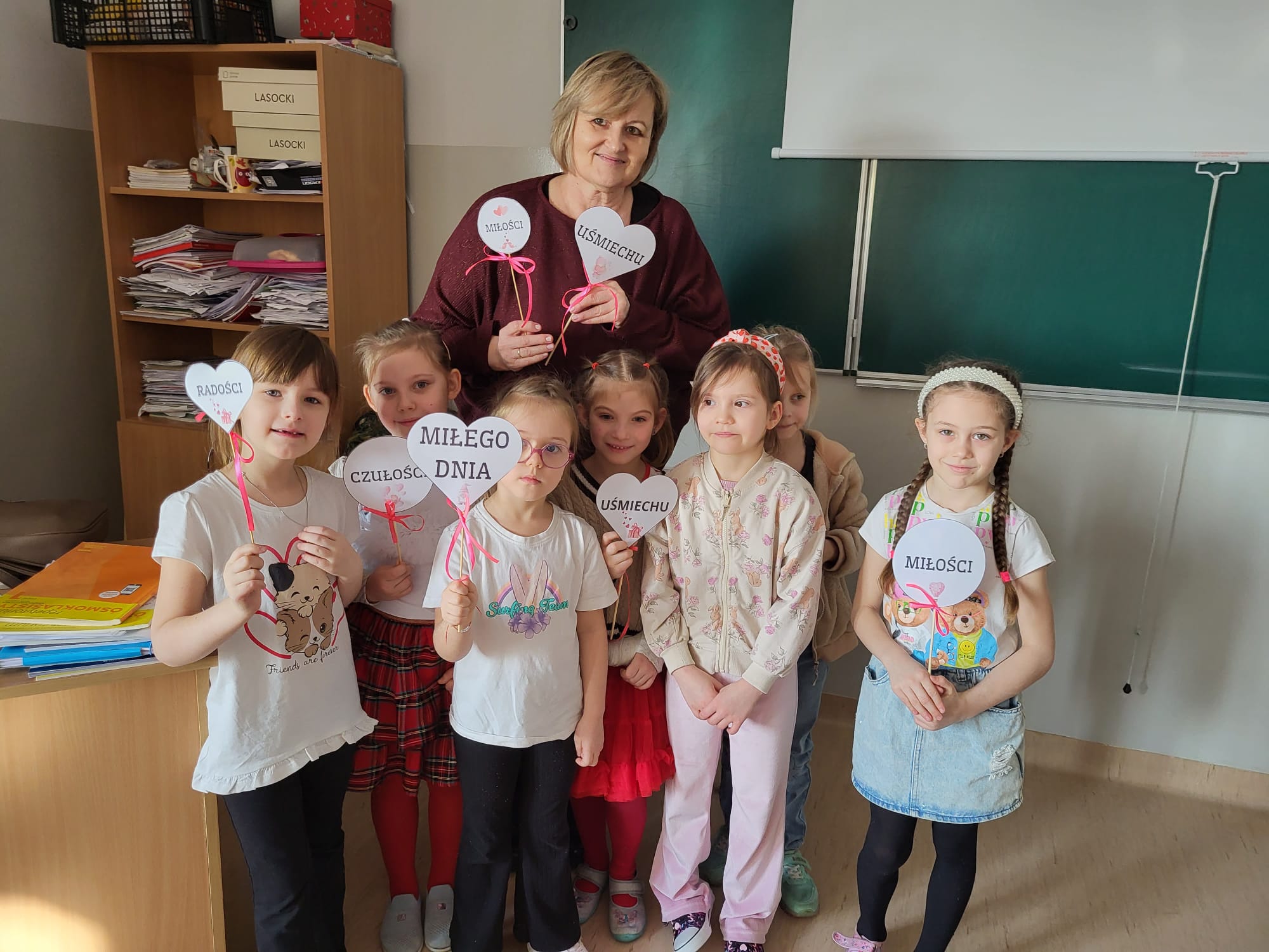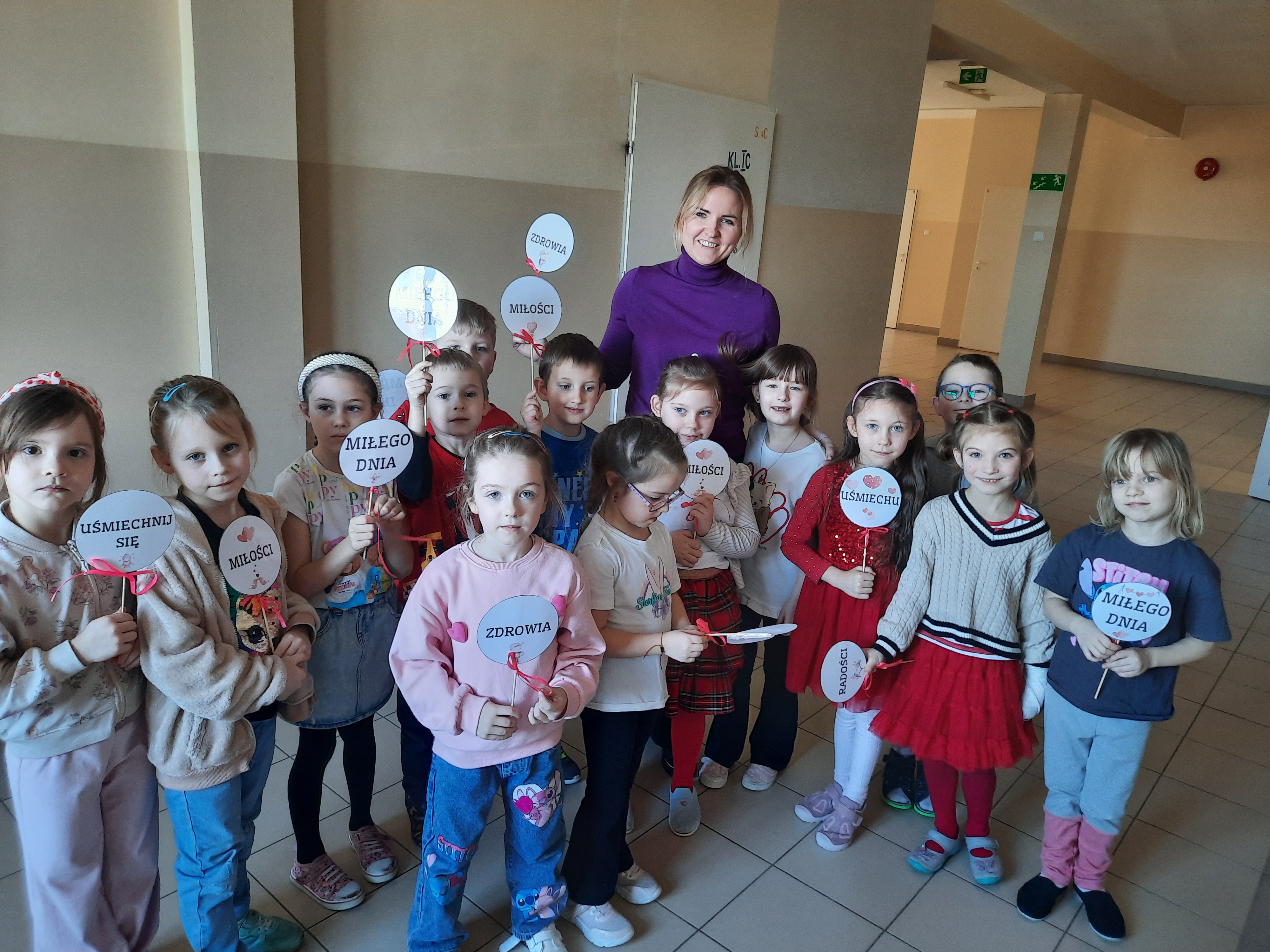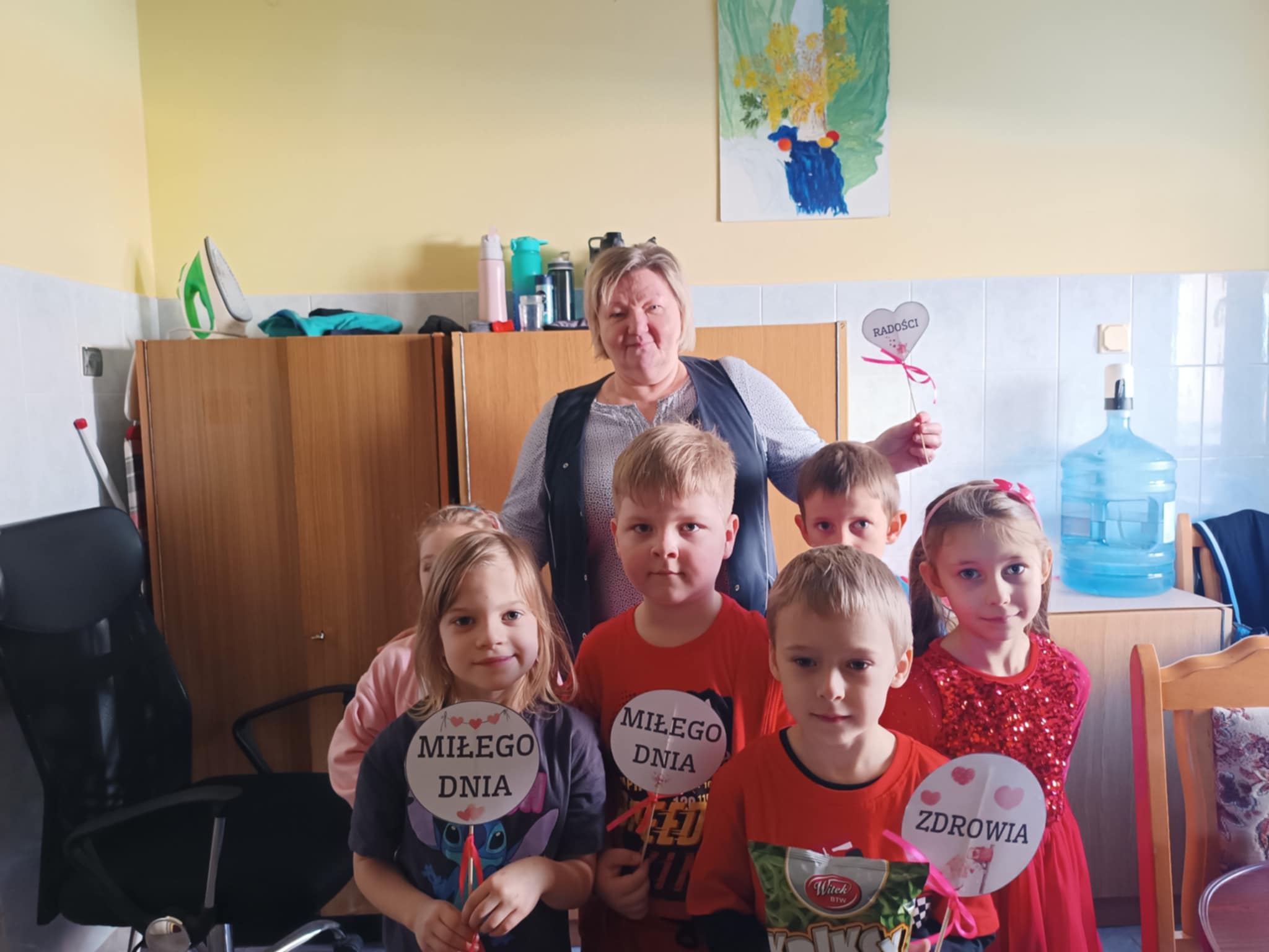 W ramach projektu dzieci wręczały pracownikom naszej szkoły specjalnie przygotowanie upominki. Można było na nich znaleźć życzenia: radości, miłości, czułości, uśmiechu oraz miłego dnia.