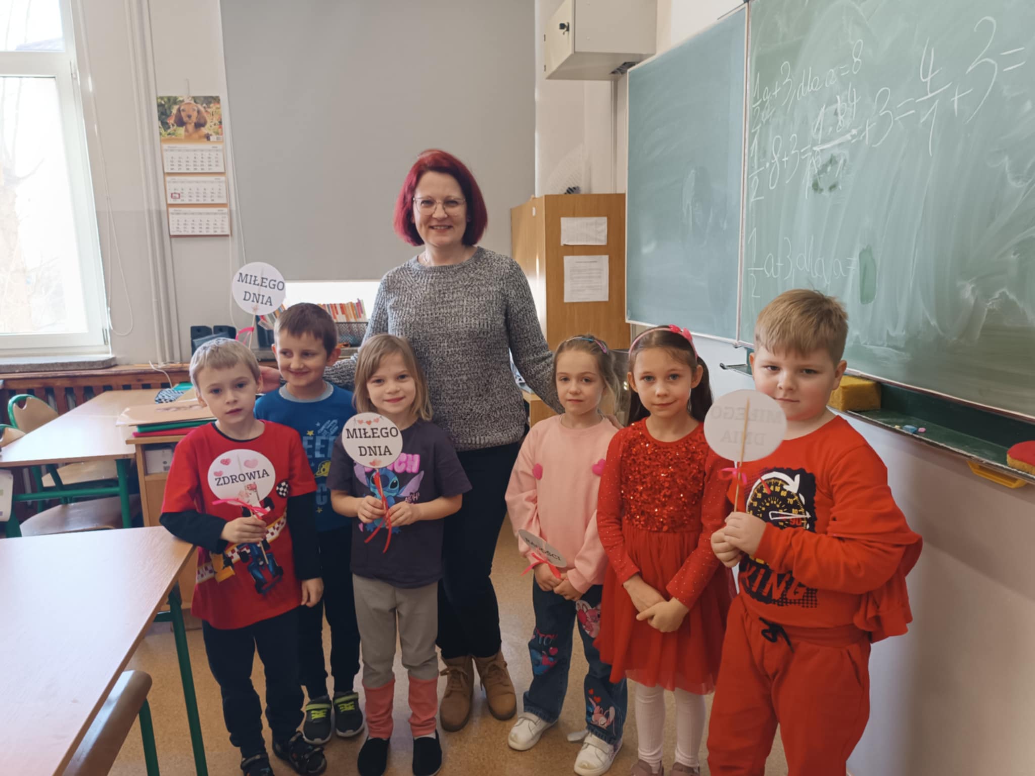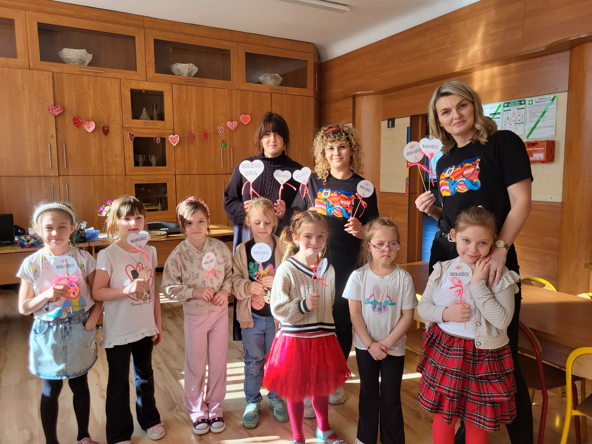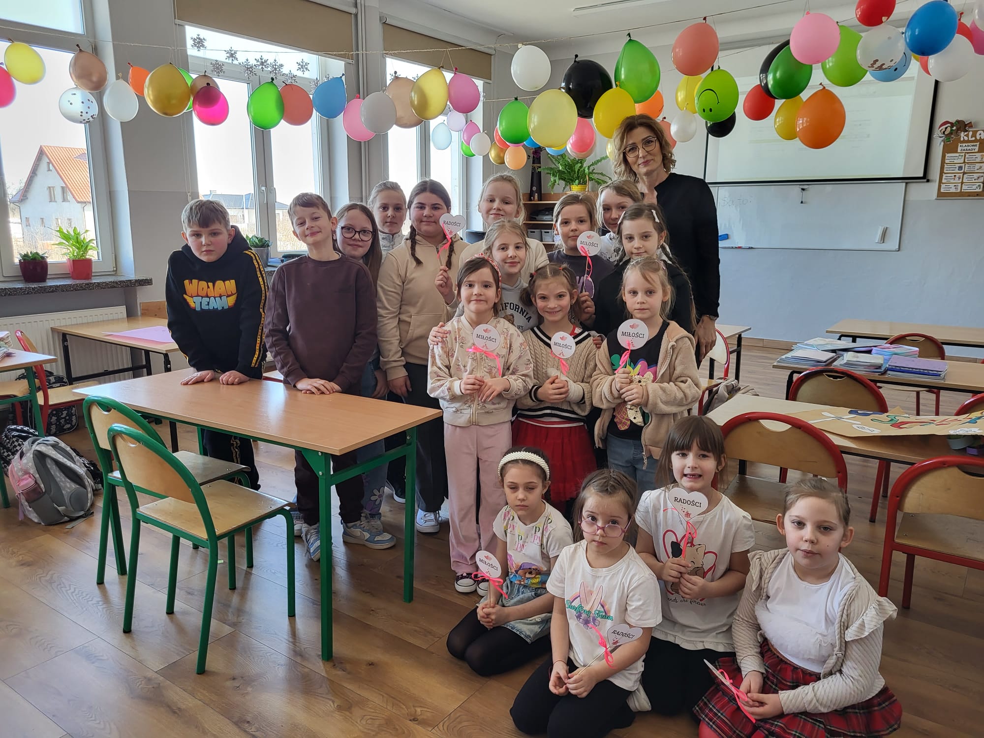 W ramach projektu dzieci wręczały pracownikom naszej szkoły specjalnie przygotowanie upominki. Można było na nich znaleźć życzenia: radości, miłości, czułości, uśmiechu oraz miłego dnia.
