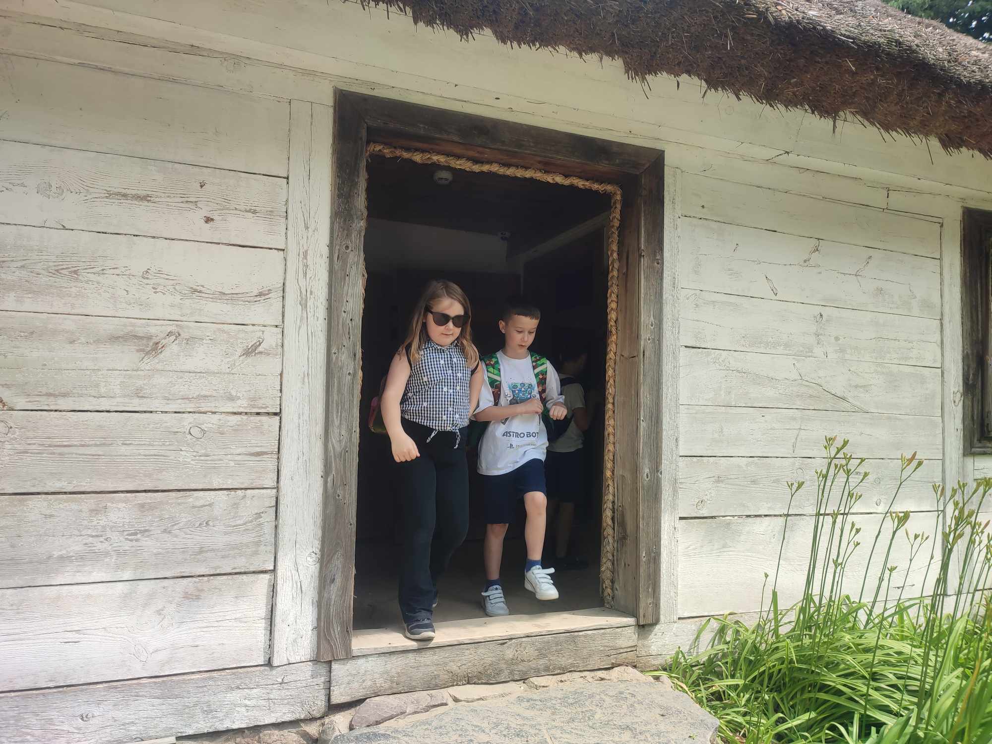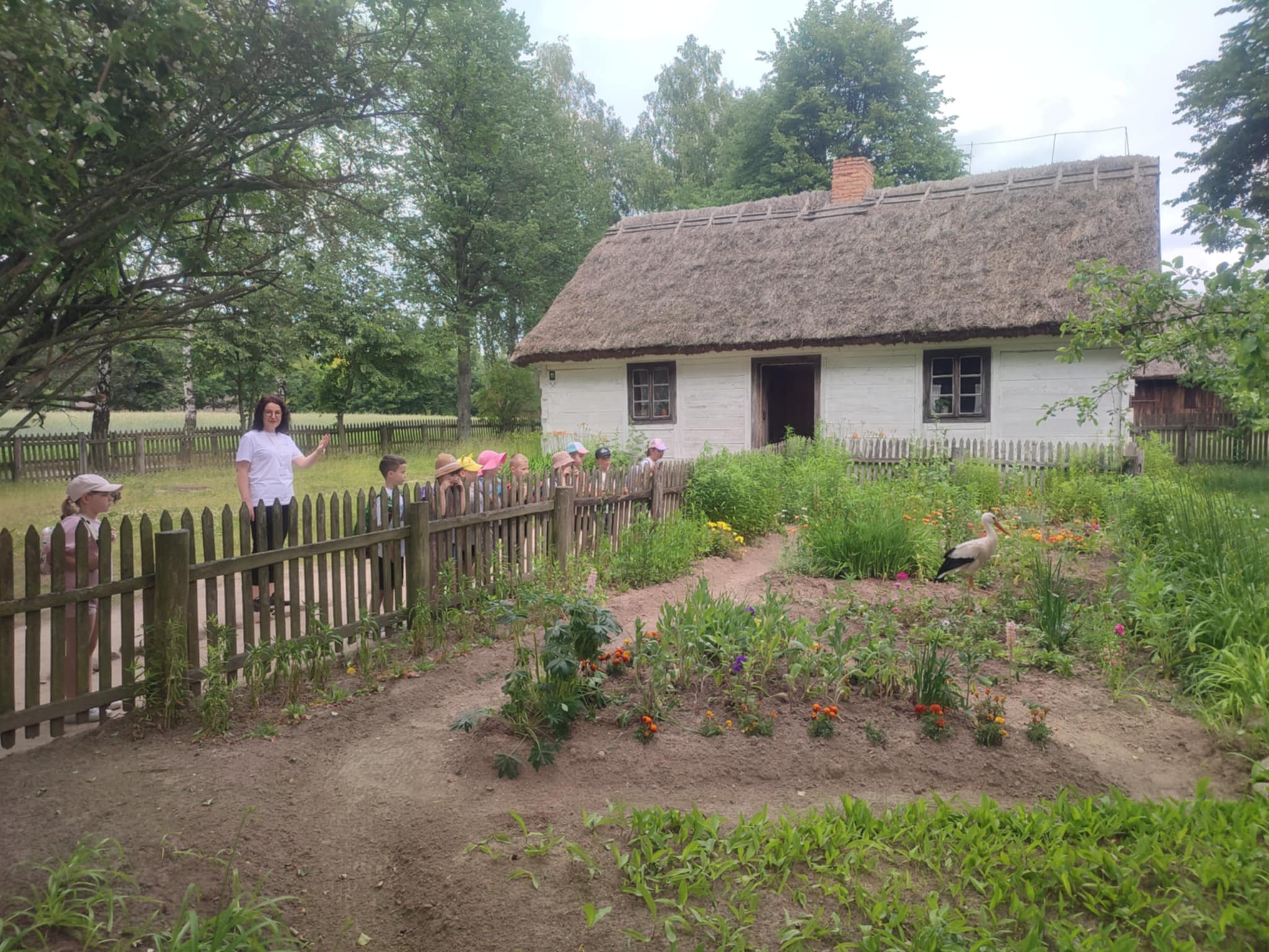 Uczniowie II a i II b, wraz z wychowawcami, uczestniczyli w wycieczce do Muzeum Wsi Mazowieckiej w Sierpcu. Dzieci wraz z przewodnikami wyruszyły w podróż po tym niezwykłym miejscu ekspozycji najważniejszych dla regionu zabytków kultury ludowej. Obejrzały m. in. izby w chatach pokrytych strzechą, szkołę, dom sołtysa, zabytkowy kościół, wnętrza dworku ziemiańskiego oraz budynki i narzędzia gospodarskie. Zapoznały się z codziennymi zajęciami i specyfiką życia naszych przodków żyjących na mazowieckiej wsi. W czasie spaceru wśród ogródków kwiatowych i ziołowych, warzywników i sadów spotkały pasące się zwierzęta. Duże zaciekawienie wzbudził bocian, który z powodu kontuzji, znalazł w skansenie bezpieczną przystań.