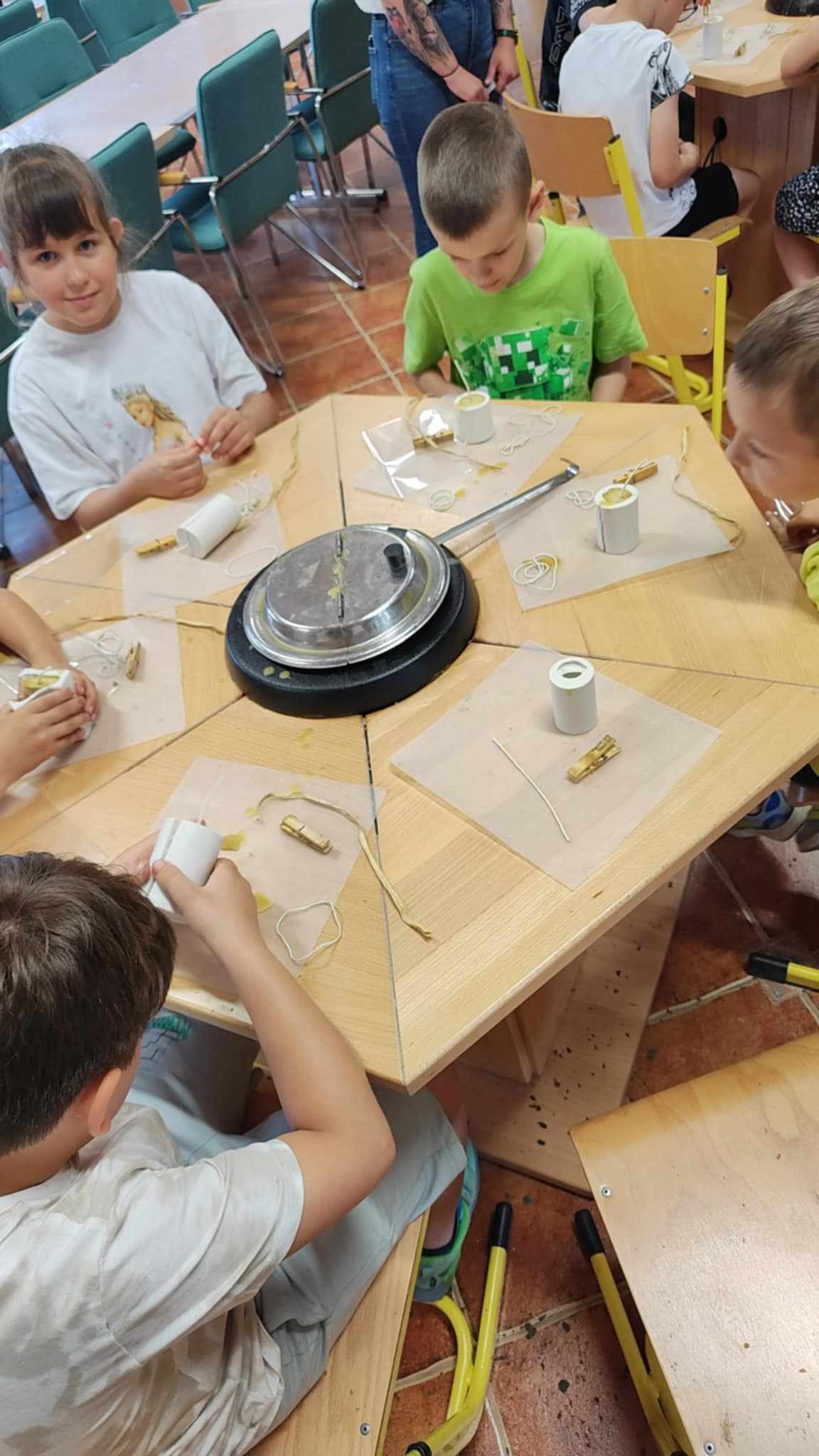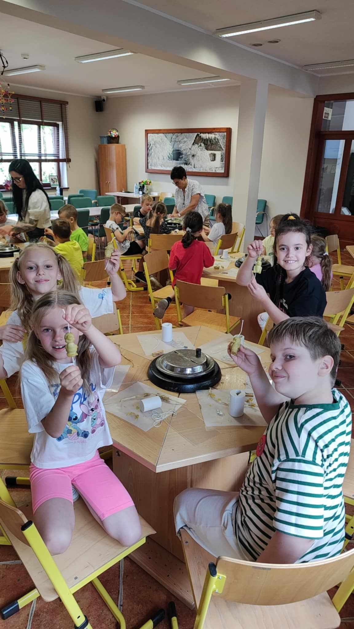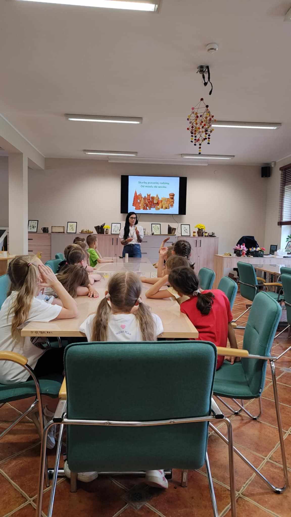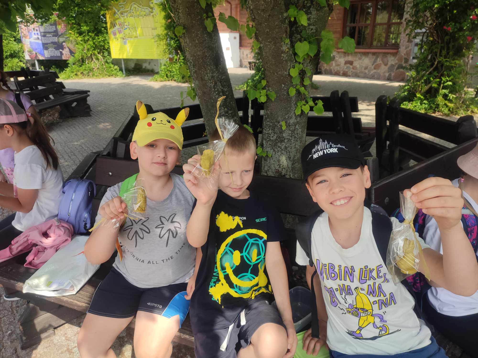 W czasie wyjazdu uczniowie mieli również okazję wziąć udział w warsztatach „Skarby pszczelej rodziny”, podczas których zapoznali się z życiem i rolą pszczół, produktami pszczelimi oraz tajnikami pracy pszczelarza. Siedząc przy stolikach nawiązujących swoim kształtem do komórek w plastrze pszczelim własnoręcznie wykonywali pachnące, naturalne świeczki z wosku pszczelego, które zabrali na pamiątkę.