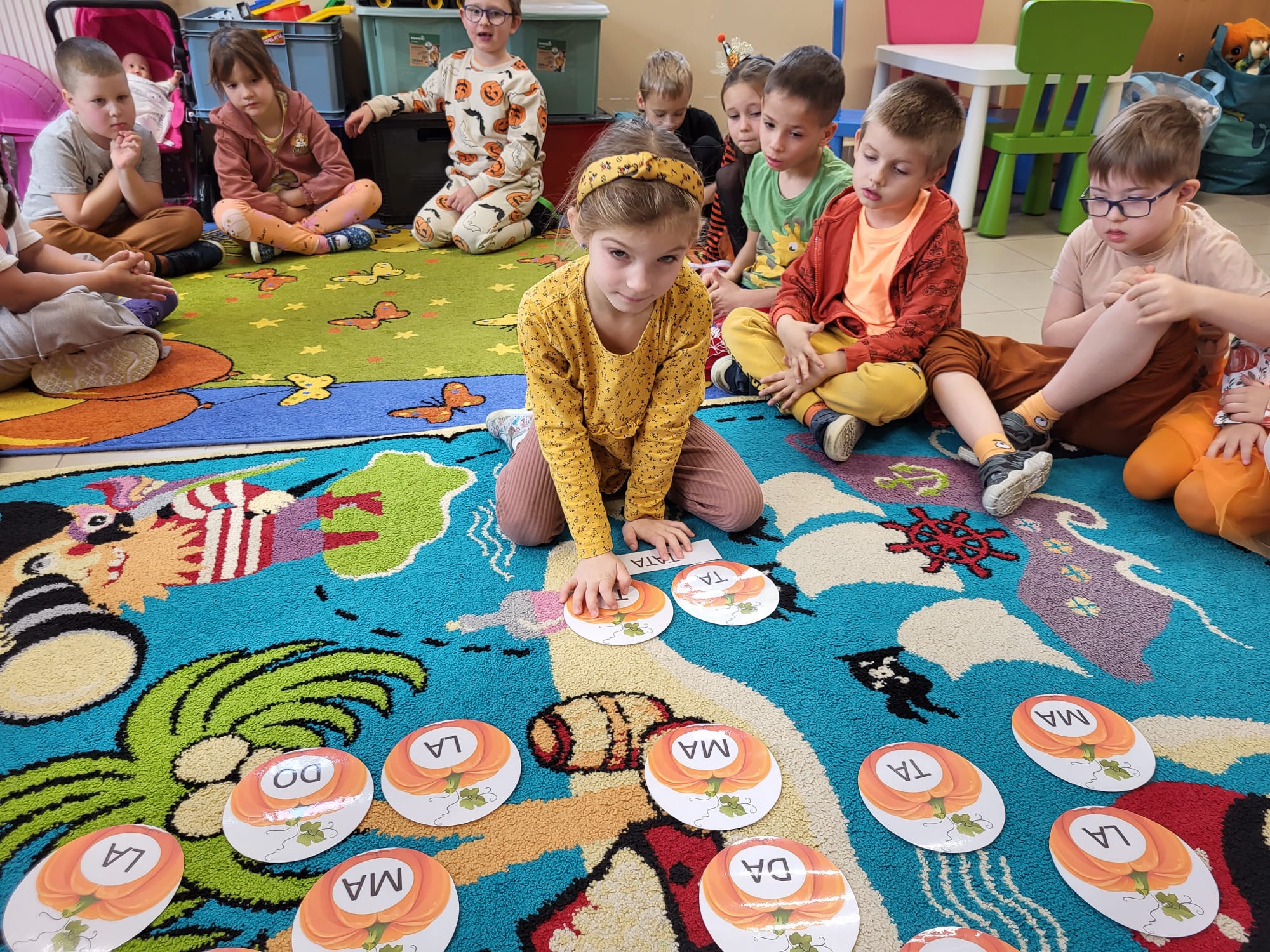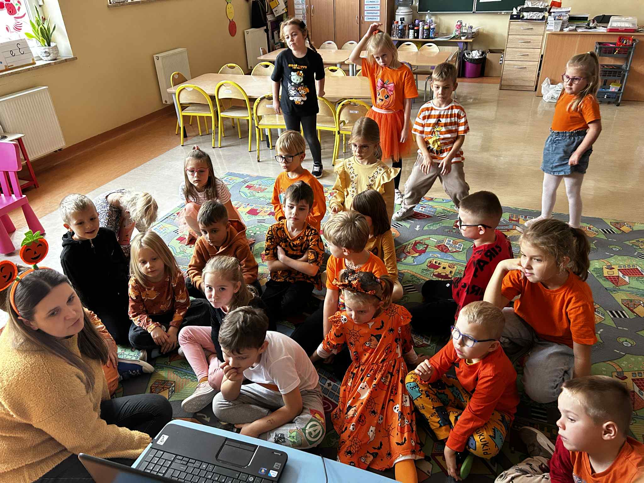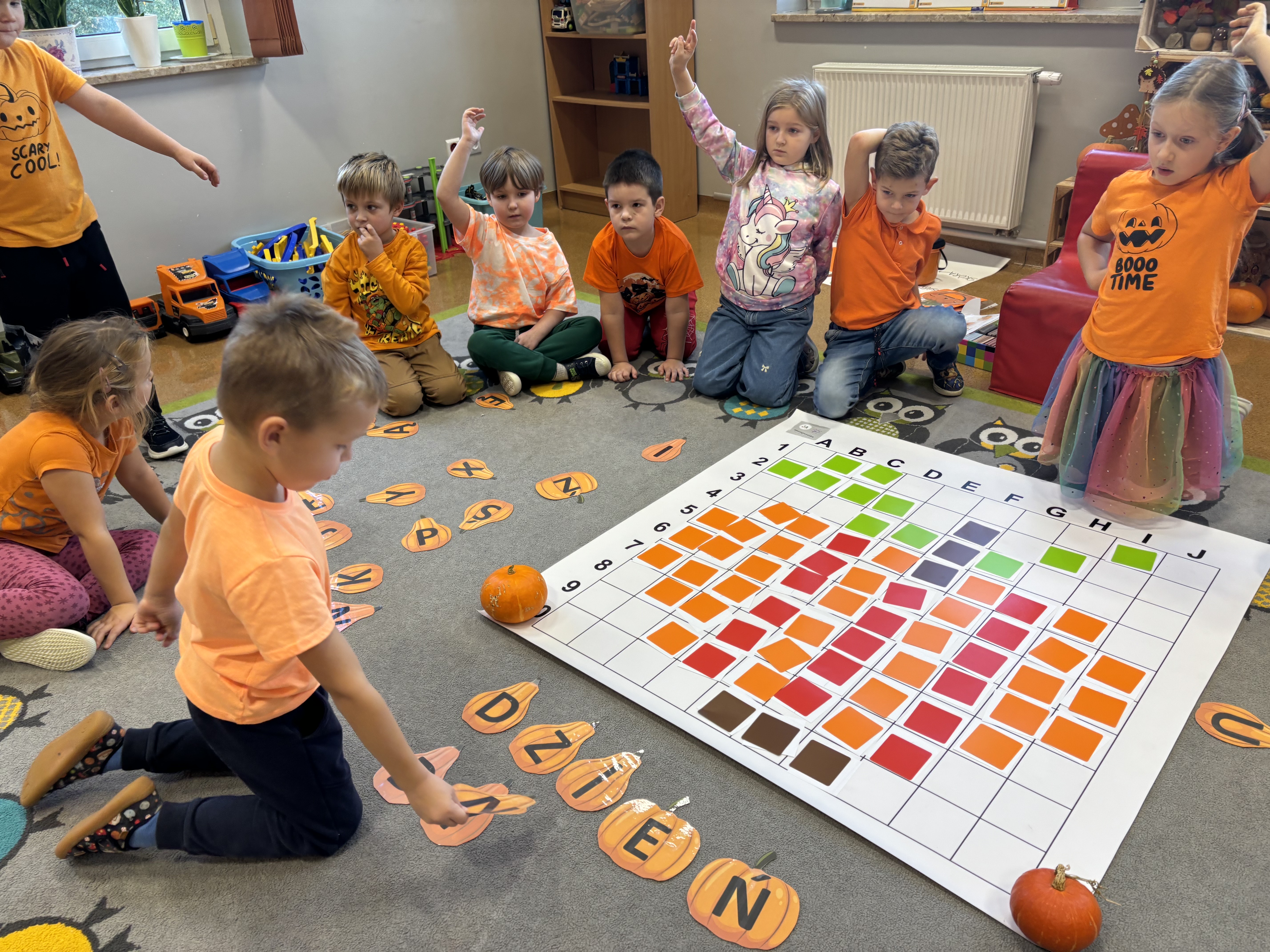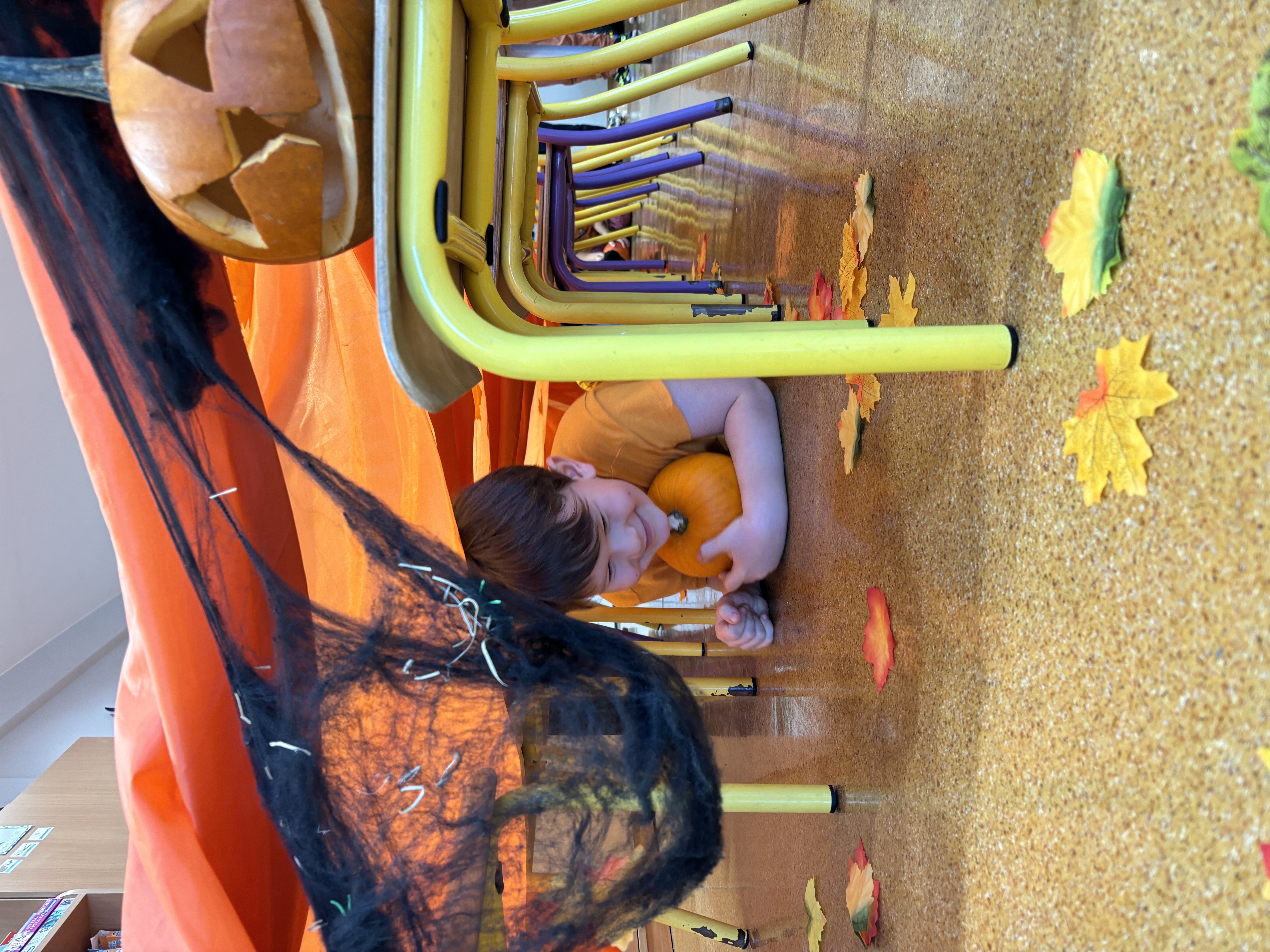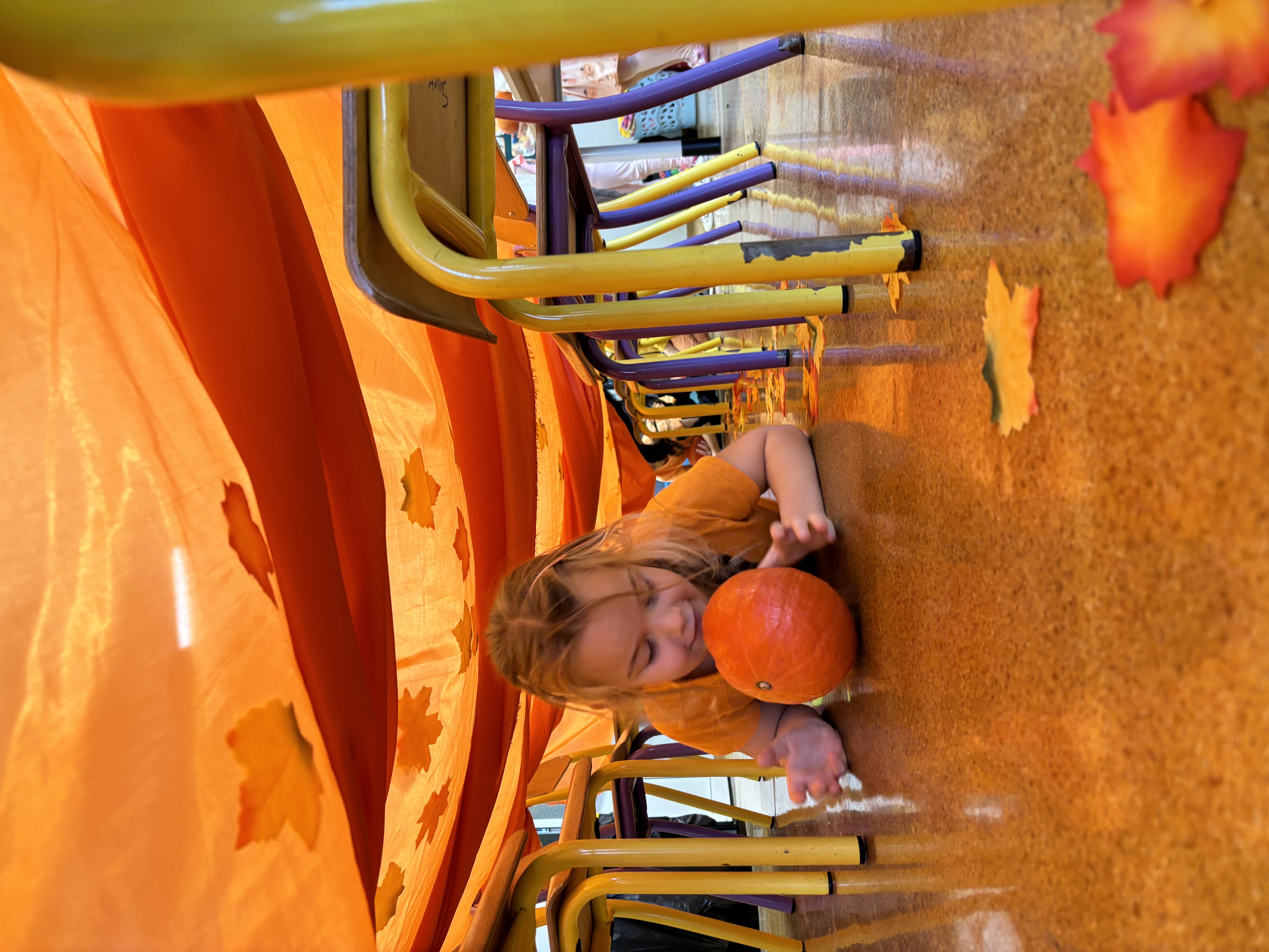 W naszym oddziale obchodziliśmy wyjątkowe, jesienne święto – Dzień Dyni. Tego dnia już od rana w salach panował prawdziwie pomarańczowy nastrój! Dzieci przyszły ubrane w stroje w odcieniach pomarańczu i żółci, a przedszkole zamieniło się w bajkową krainę pełną dyniowych dekoracji.