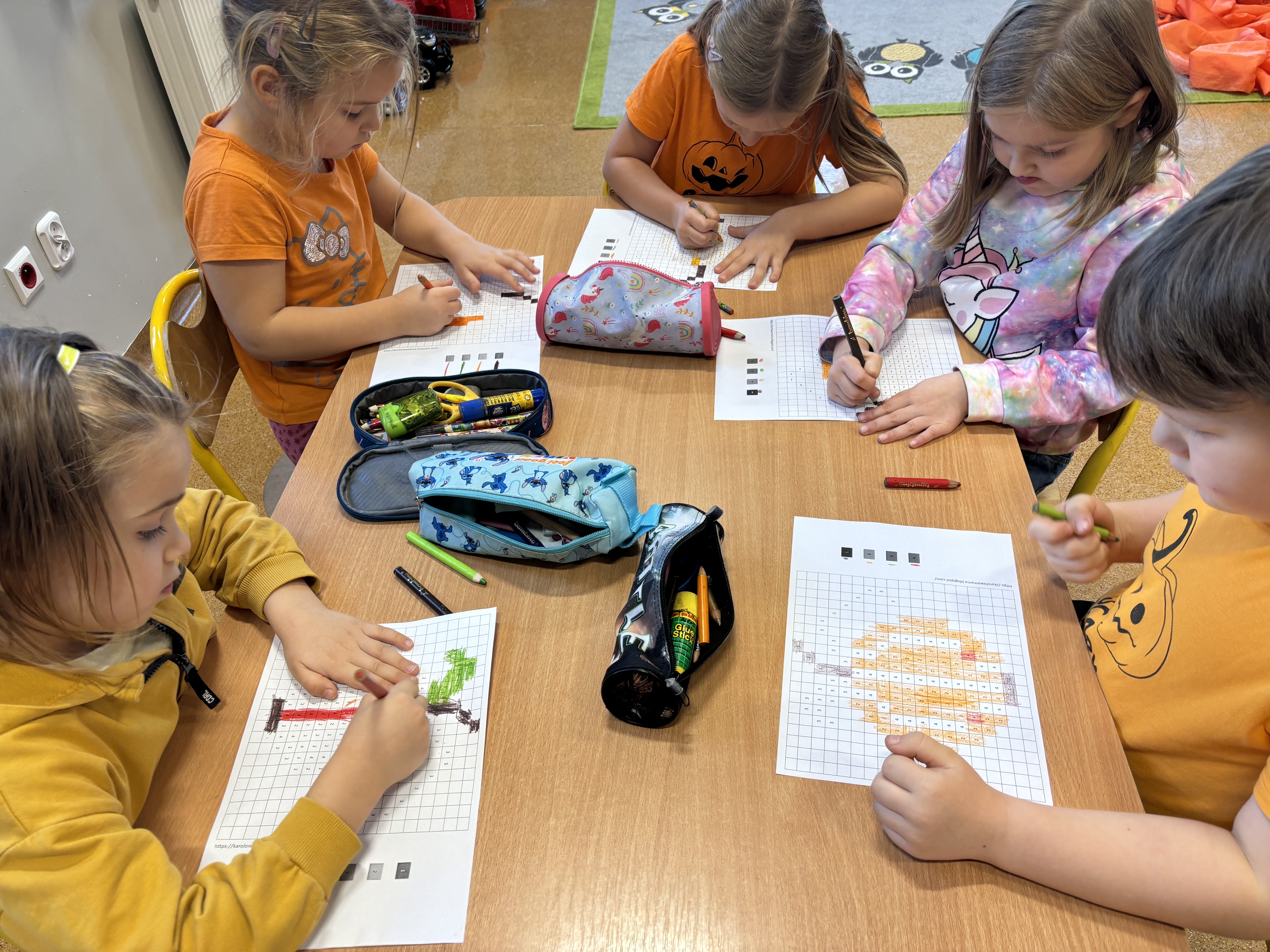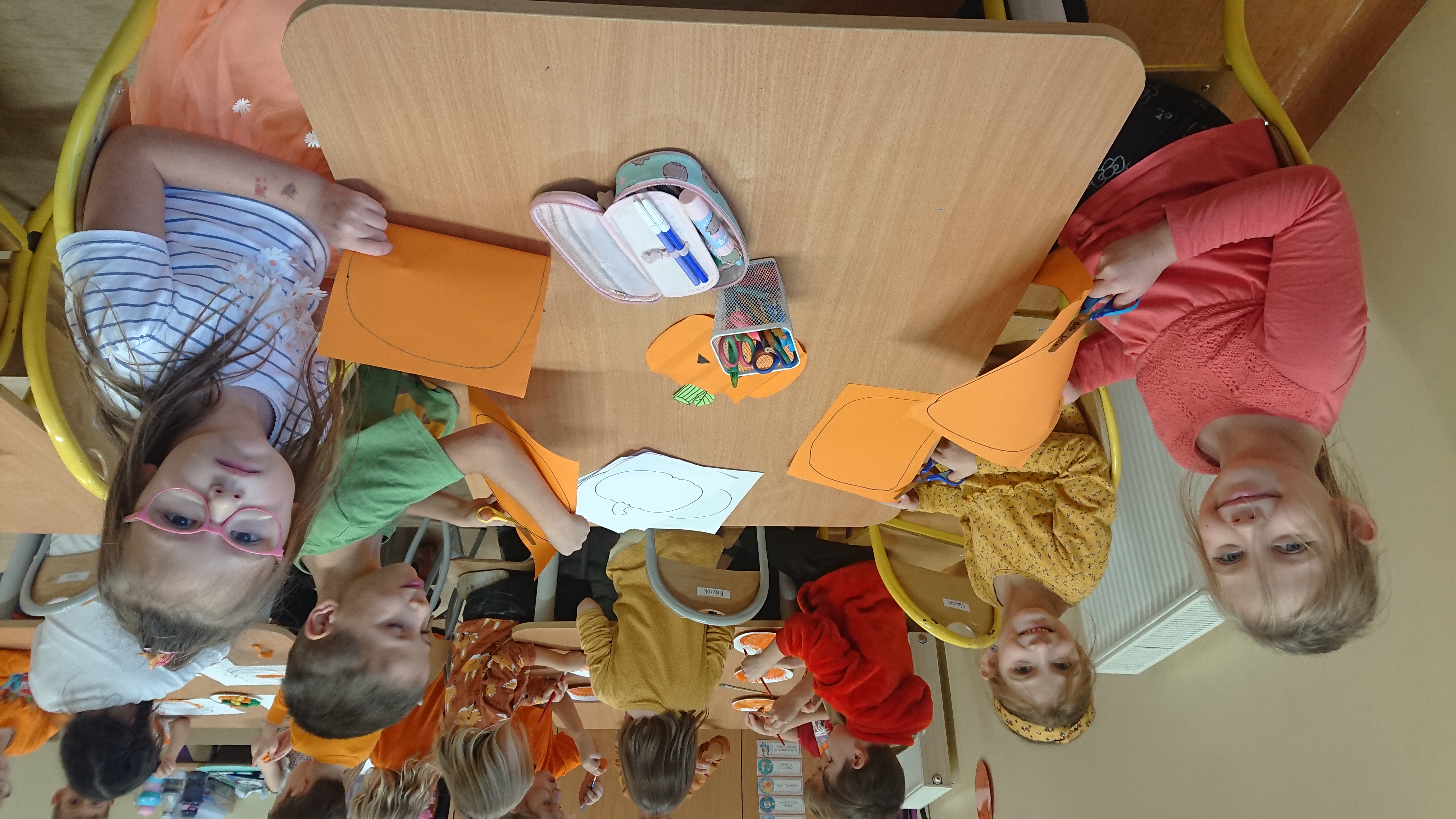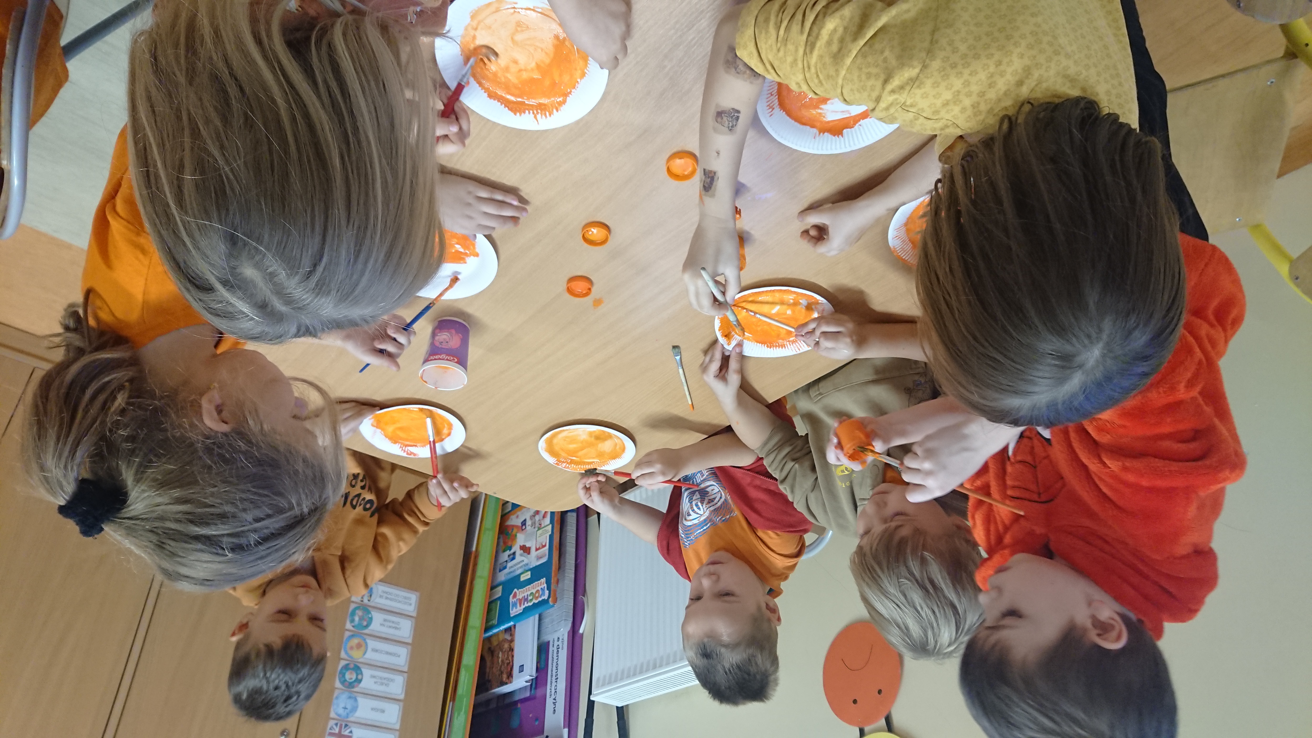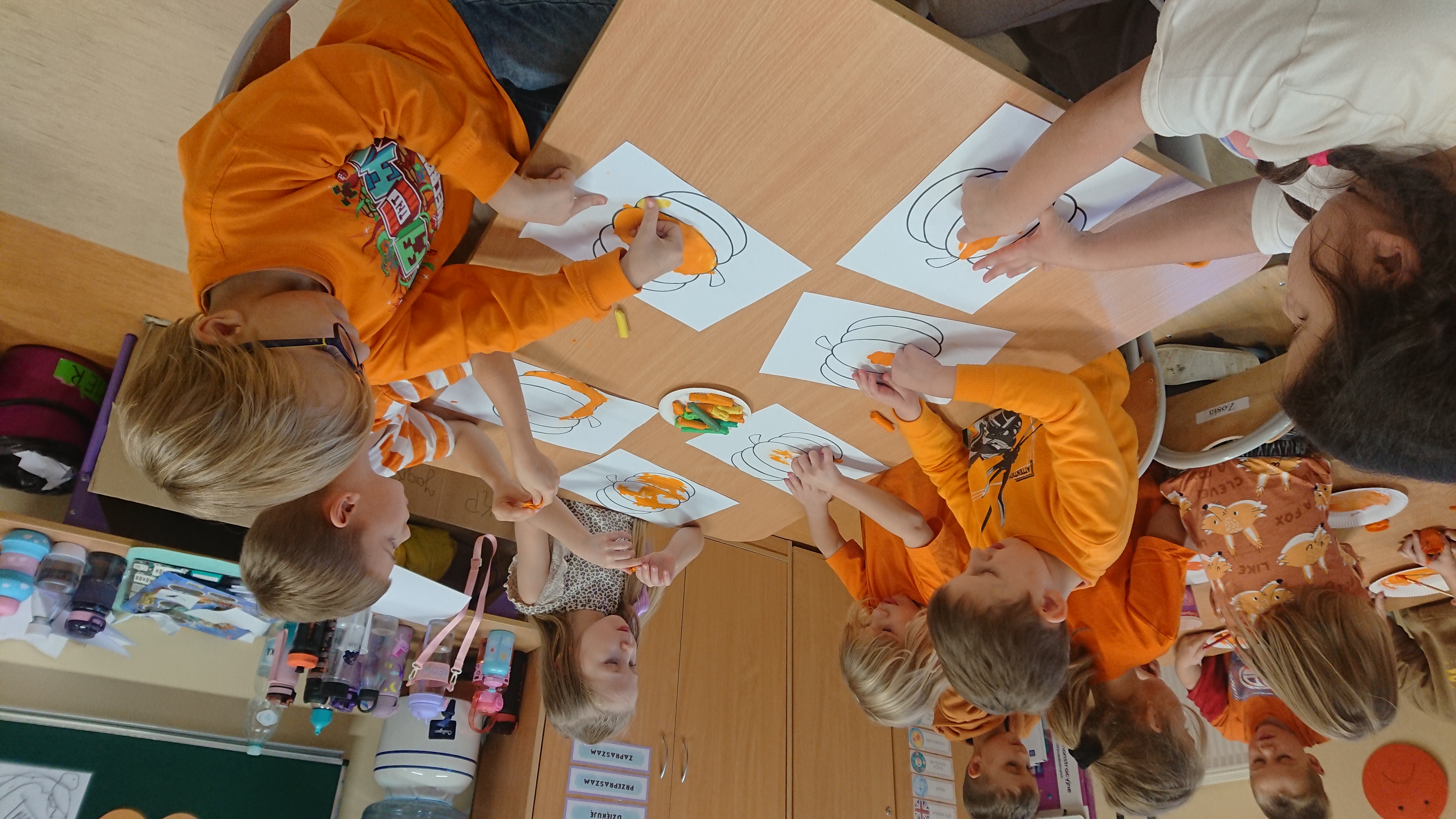 Nie zabrakło również części artystycznej – dzieci wykonywały dyniowe prace plastyczne. Powstały piękne dyniowe portrety, wesołe dyniowe stworki oraz kolorowe ozdoby, które udekorowały nasze sale.