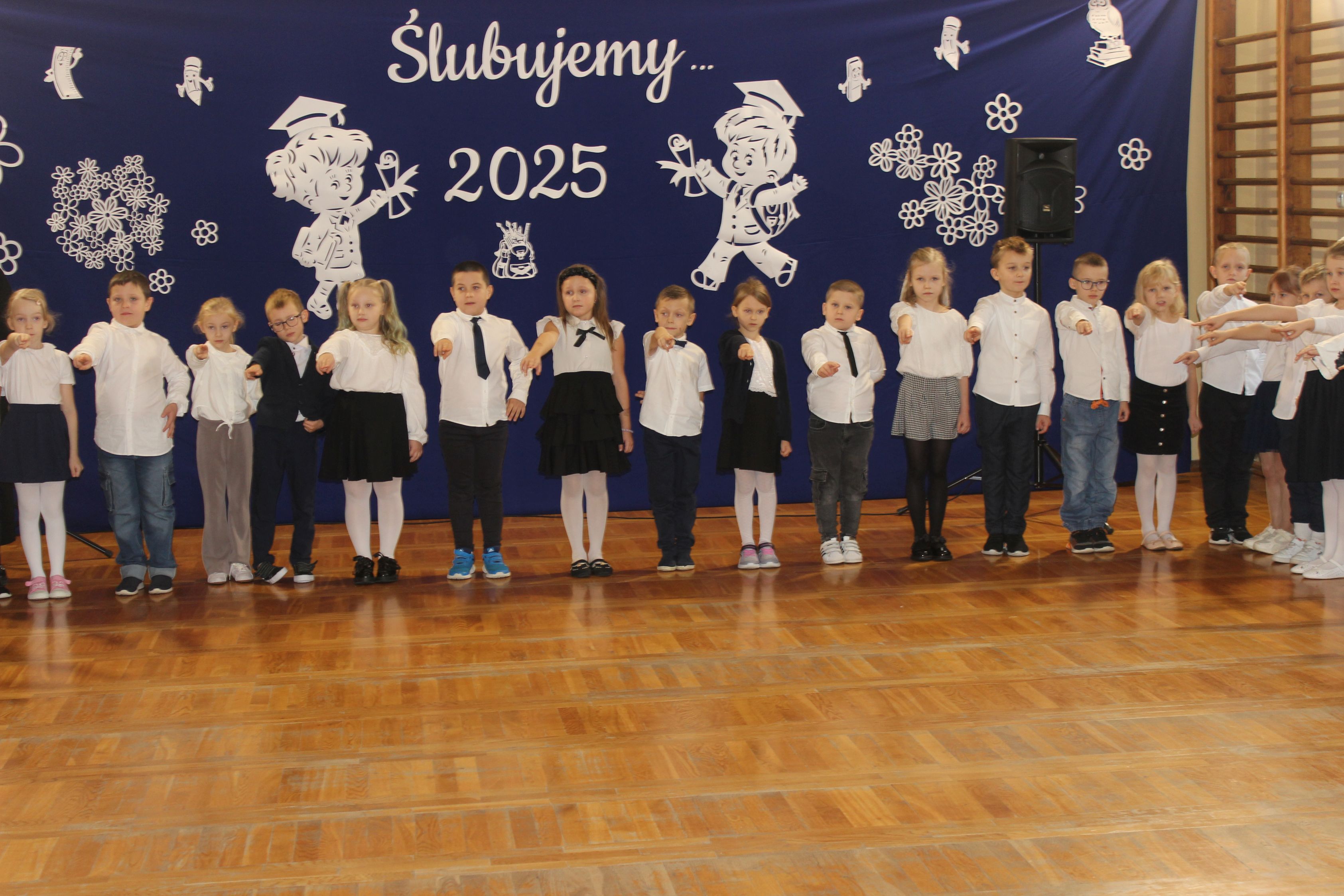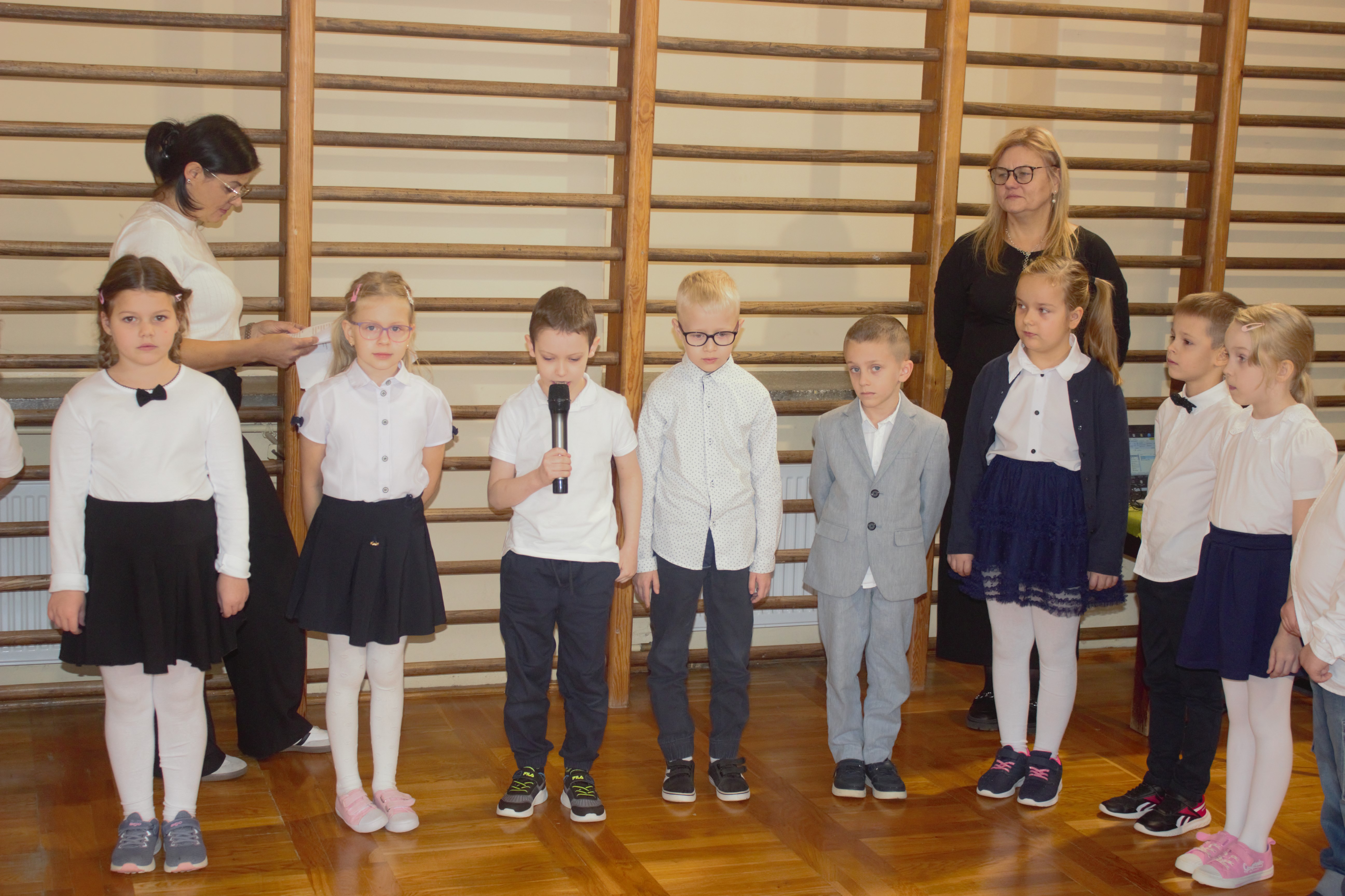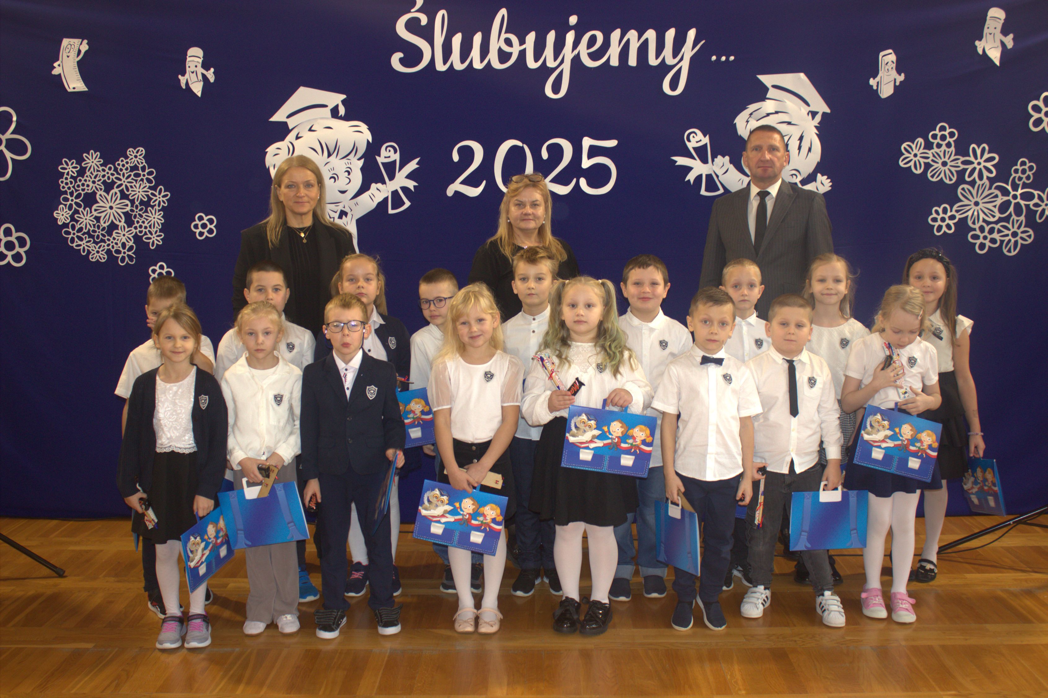 Pierwszoklasiści ubrani w galowe stroje zaprezentowali wspaniały program artystyczny, pełen piosenek, wierszy i uśmiechu. Po ślubowaniu Pani Dyrektor Anna Brodowska dokonała pasowania na ucznia, a każdy pierwszoklasista otrzymał pamiątkowy dyplom i gratulacje.