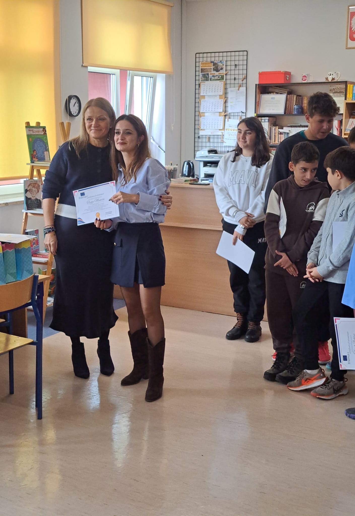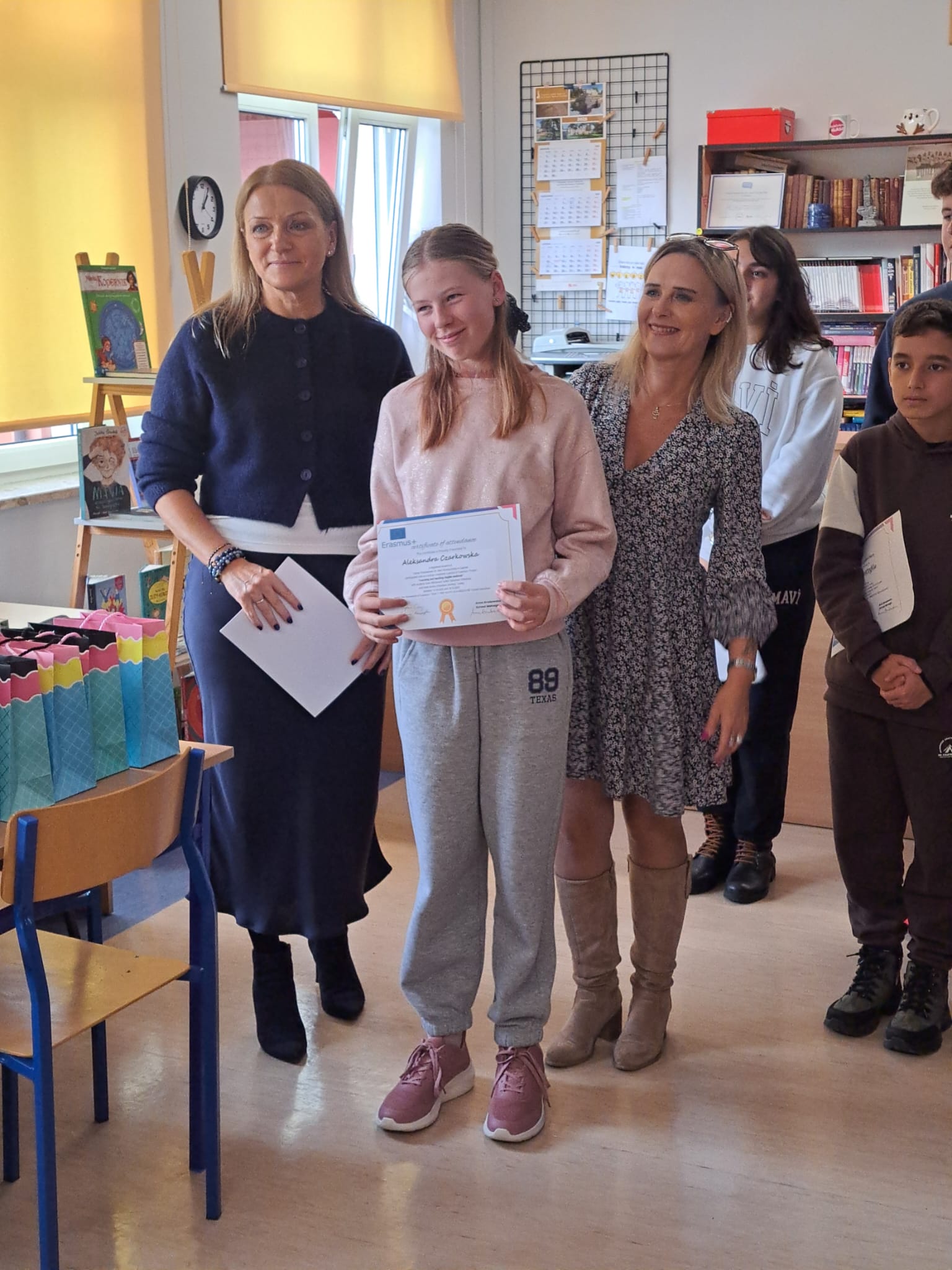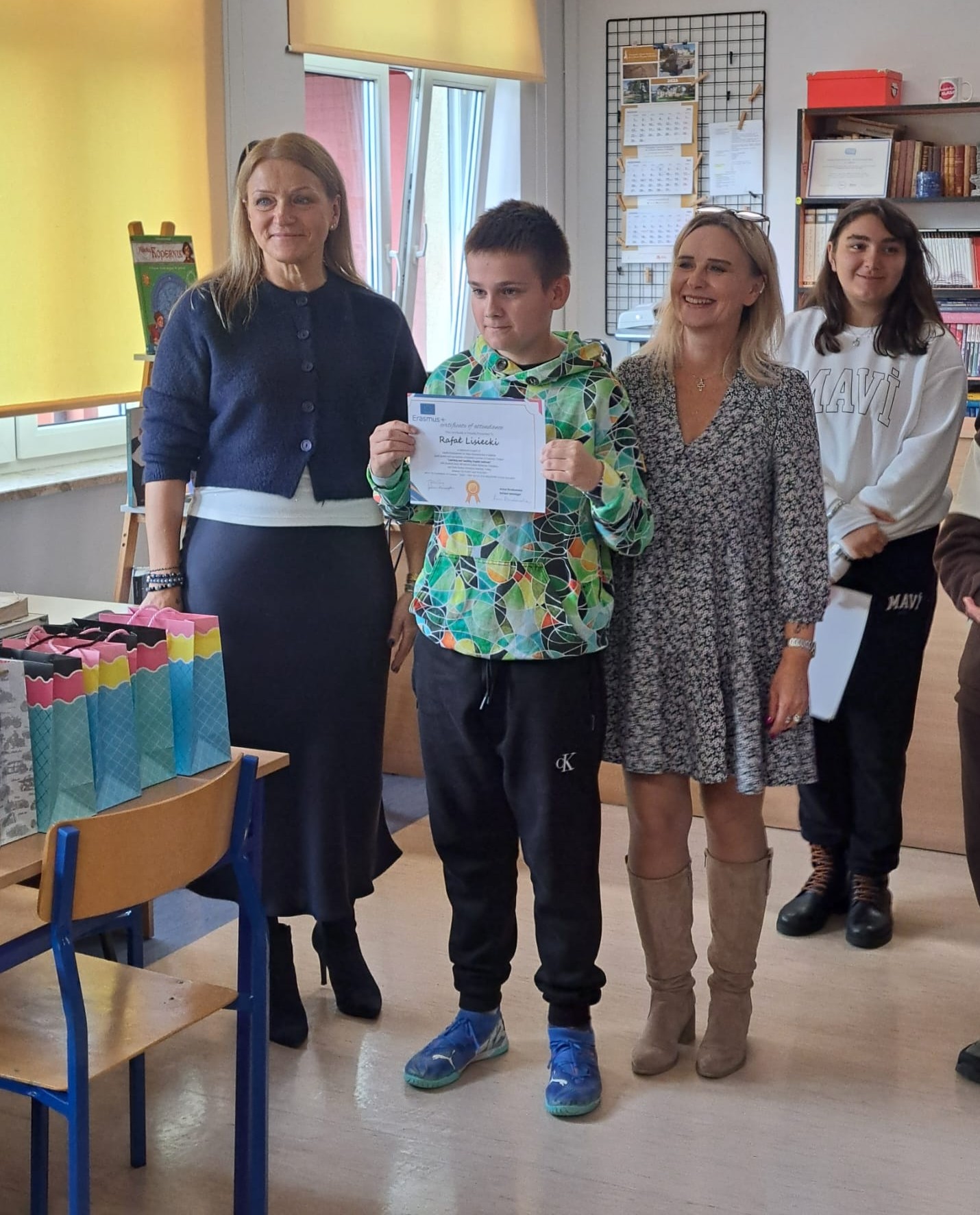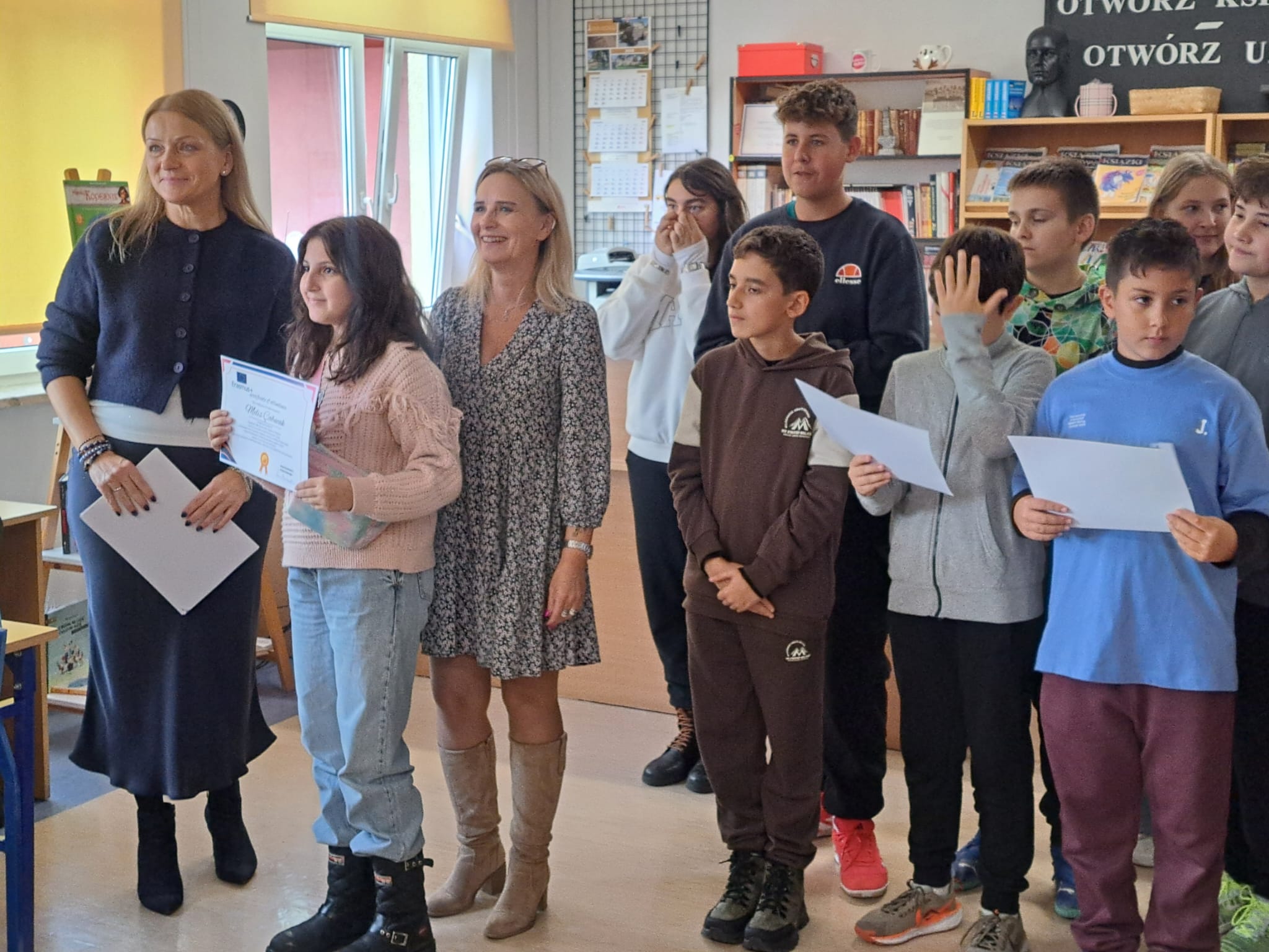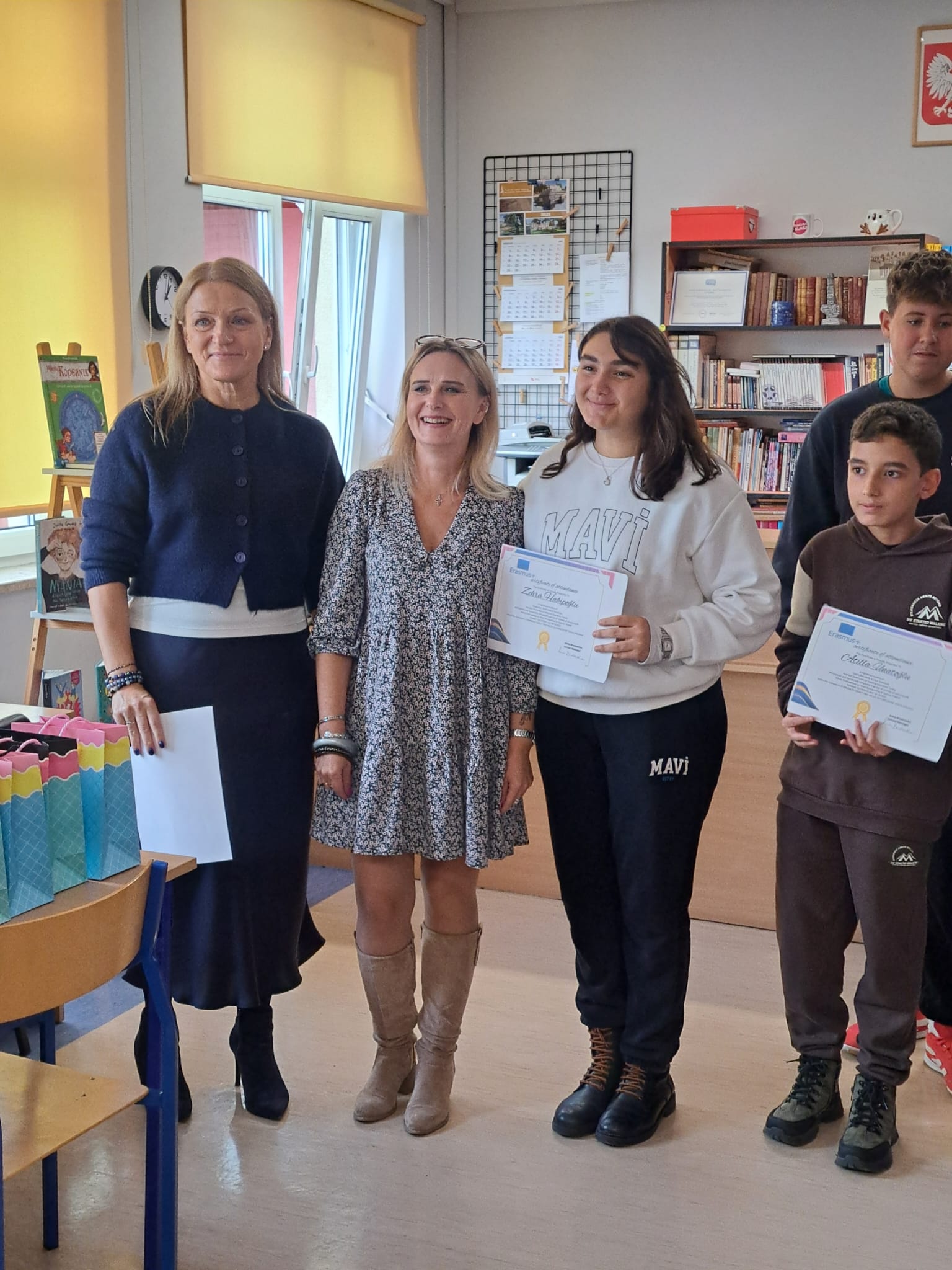 Zwieńczeniem pobytu było uroczyste spotkanie podsumowujące projekt. Podczas ceremonii wręczono certyfikaty uczestnictwa w programie Erasmus+, a także symboliczne upominki i podziękowania dla wszystkich osób zaangażowanych w przygotowanie i realizację wizyty. Całość zakończyła się serdecznym pożegnaniem, podczas którego nie zabrakło wzruszeń, uśmiechów i ciepłych słów wdzięczności. Uczniowie dzielili się swoimi wrażeniami, wspominali najciekawsze chwile i wymieniali się kontaktami, planując kolejne spotkania. Wspólne pamiątkowe zdjęcia utrwaliły te wyjątkowe momenty, które na długo pozostaną w pamięci wszystkich.