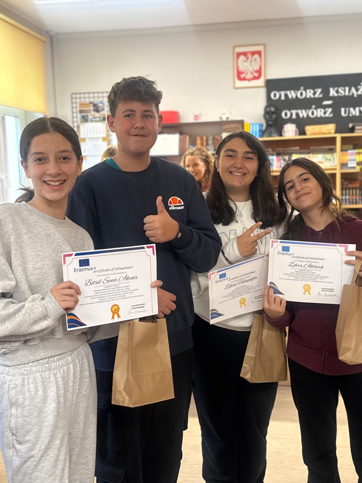 The idea of cooperation with the Turkish school arose, among other things, through activities on the eTwinning platform, which allows teachers from various European countries to to establish contacts and implement joint educational projects. After a series of online conversations and exchanges, we managed to establish contact with Turkish teachers Tuğçe Mumcu and Gülçin Recepoğlu, who work in Turkish schools. Planning the visit was a process requiring the commitment of both parties. The educational goals, the curriculum, forms of student cooperation, and the schedule of cultural activities were established. The teachers communicated regularly via online meetings to finalize the details of the stay. Everything was carefully prepared – from classes to tourist attractions and accommodations with host families. Finally, on Sunday, October 12th, we welcomed our guests at the Warsaw airport. During their stay, the Turkish students Betül, Zehra, Aysima, Zehra, Melis, Atilla, Tarık, and Egemen participated in English classes in grades 5–8, observed lessons, and actively participated in communicative exercises, group projects, and language games. The exchange of experiences between students and teachers from both countries allowed them to learn about different work styles and inspiring teaching methods.