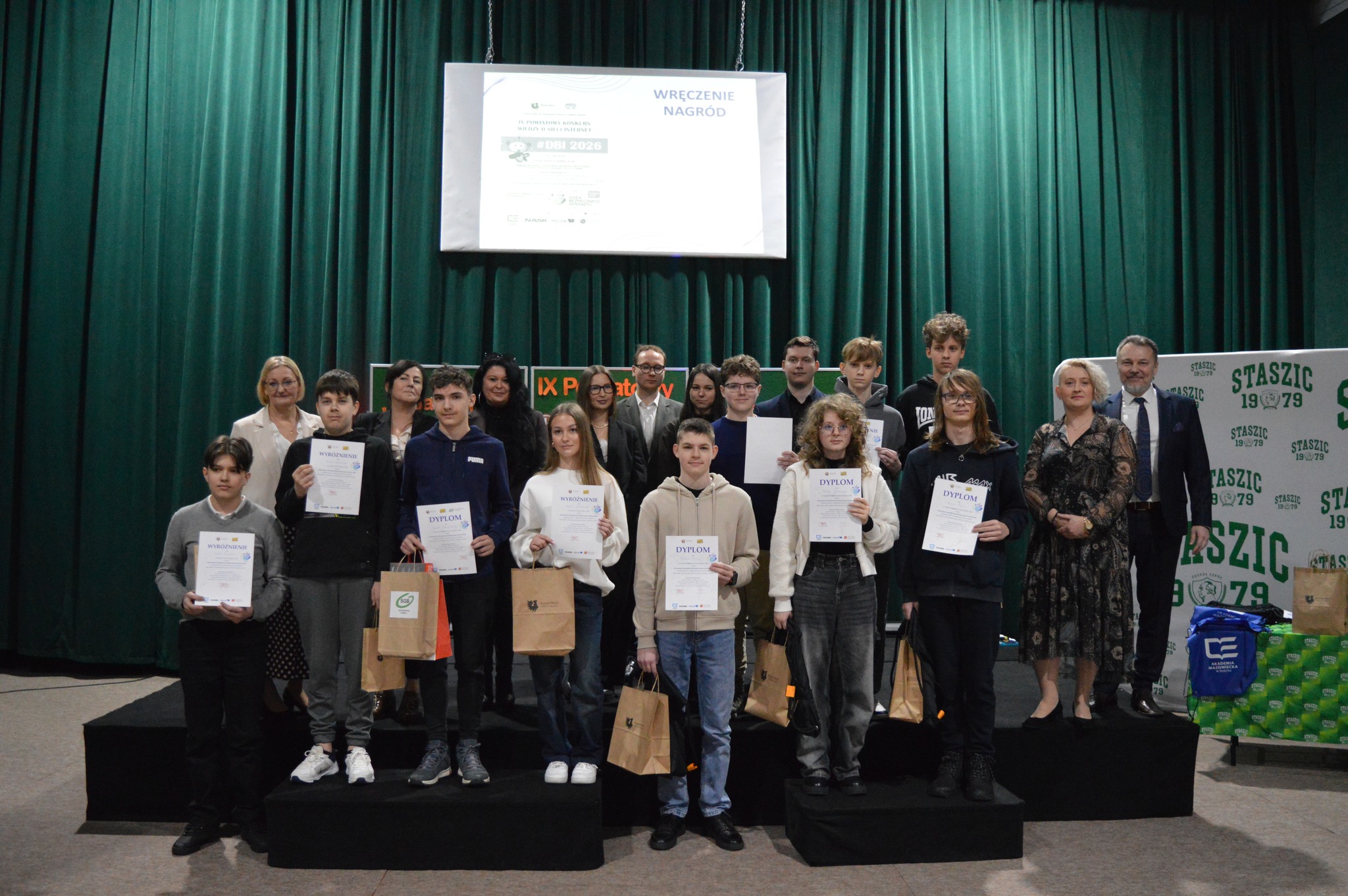 Obchody rozpoczęły się IX Powiatowym Konkursem Wiedzy poświęconym zagadnieniom bezpieczeństwa w sieci, ochrony danych osobowych, cyberzagrożeń oraz odpowiedzialnego korzystania z nowych technologii. Nasi uczniowie wykazali się wysokim poziomem wiedzy i świadomości cyfrowej.