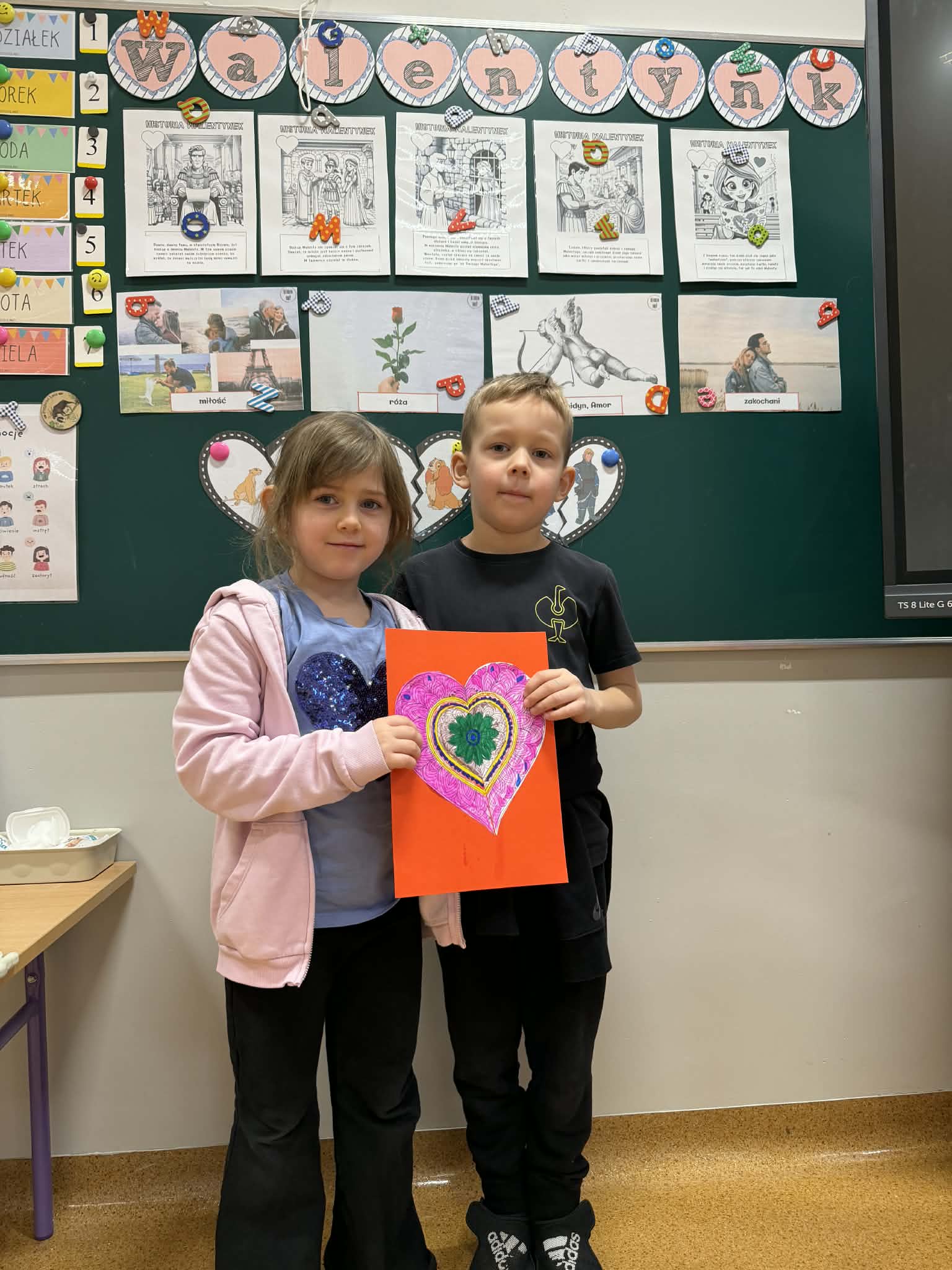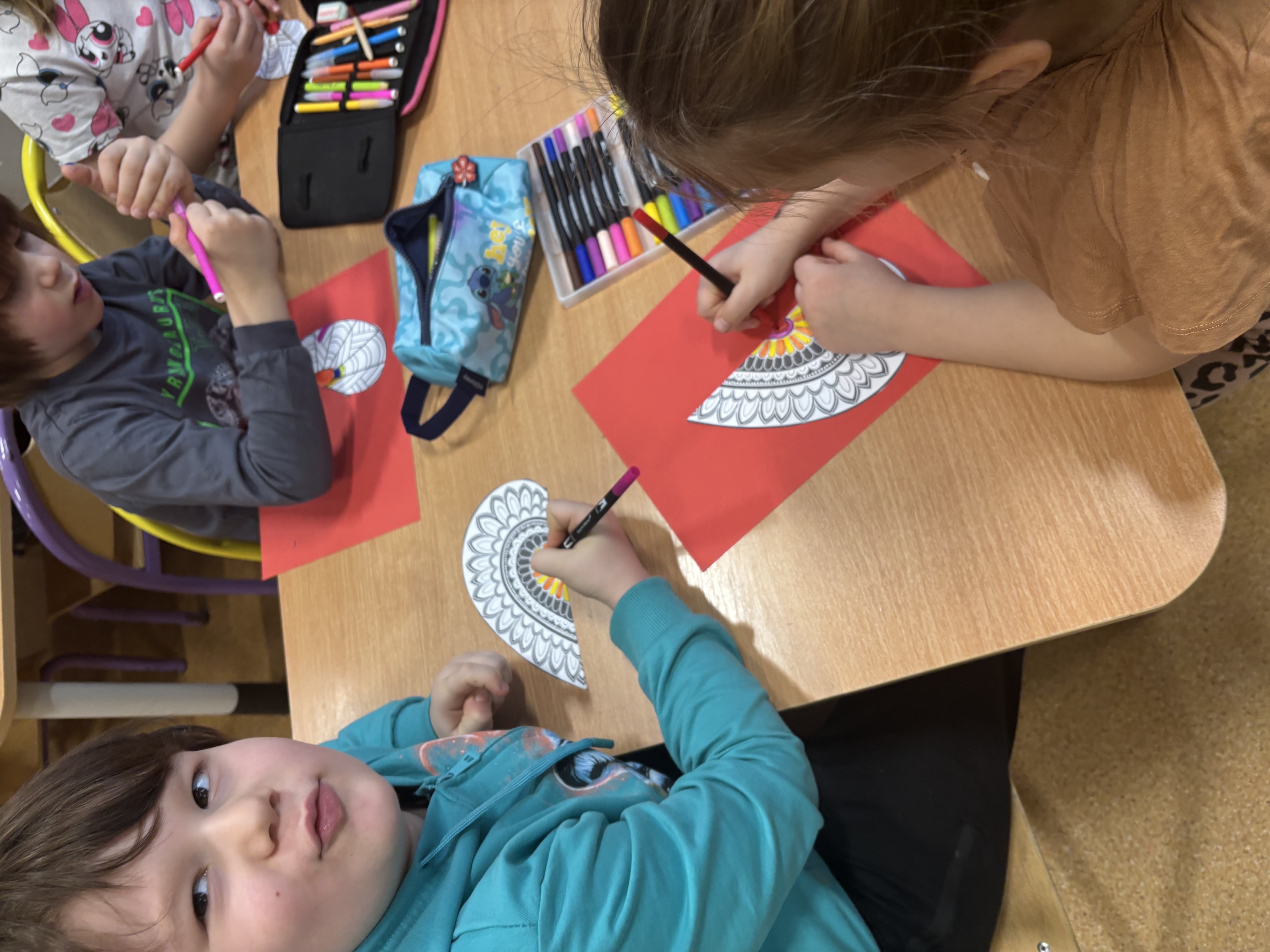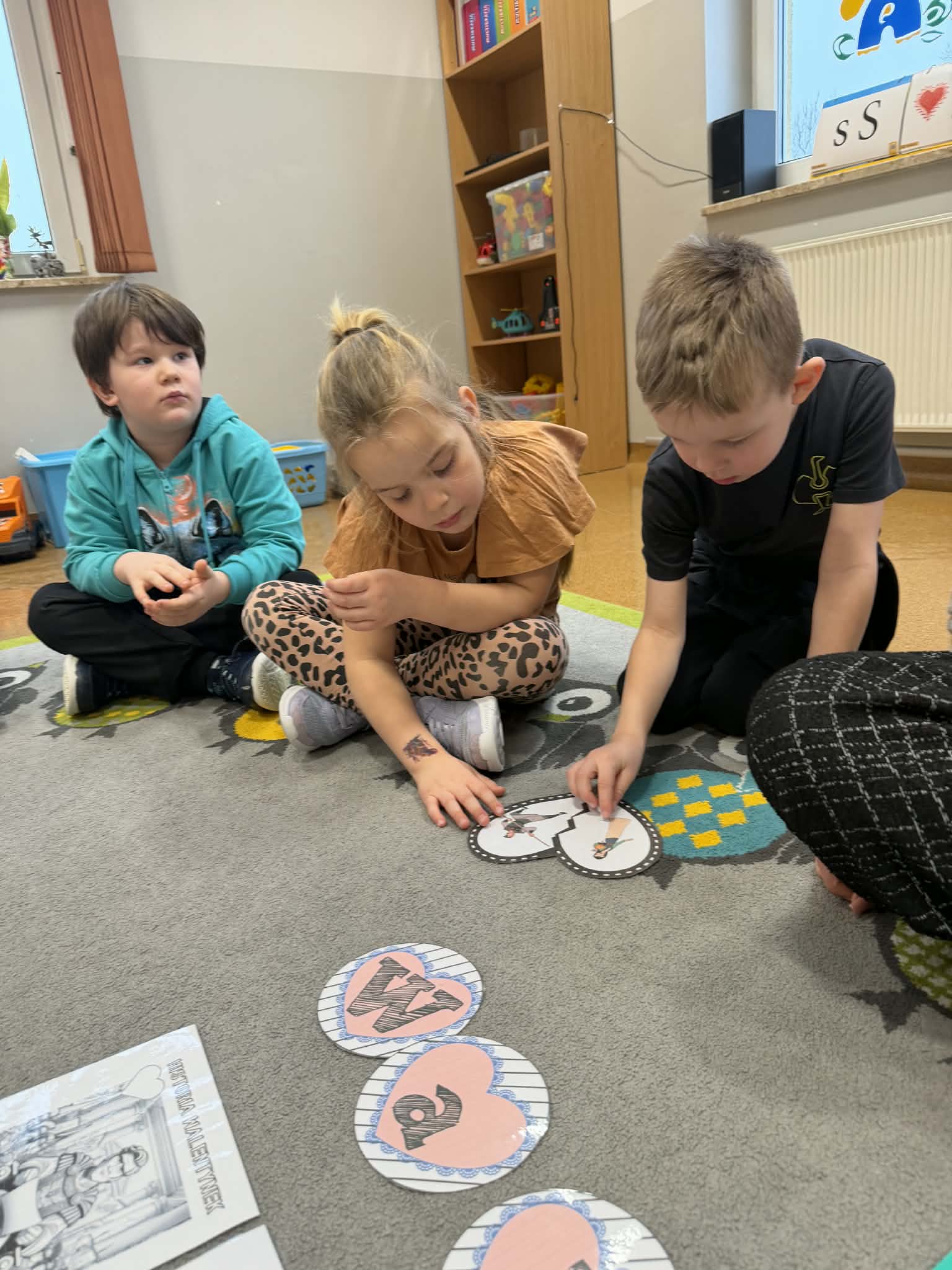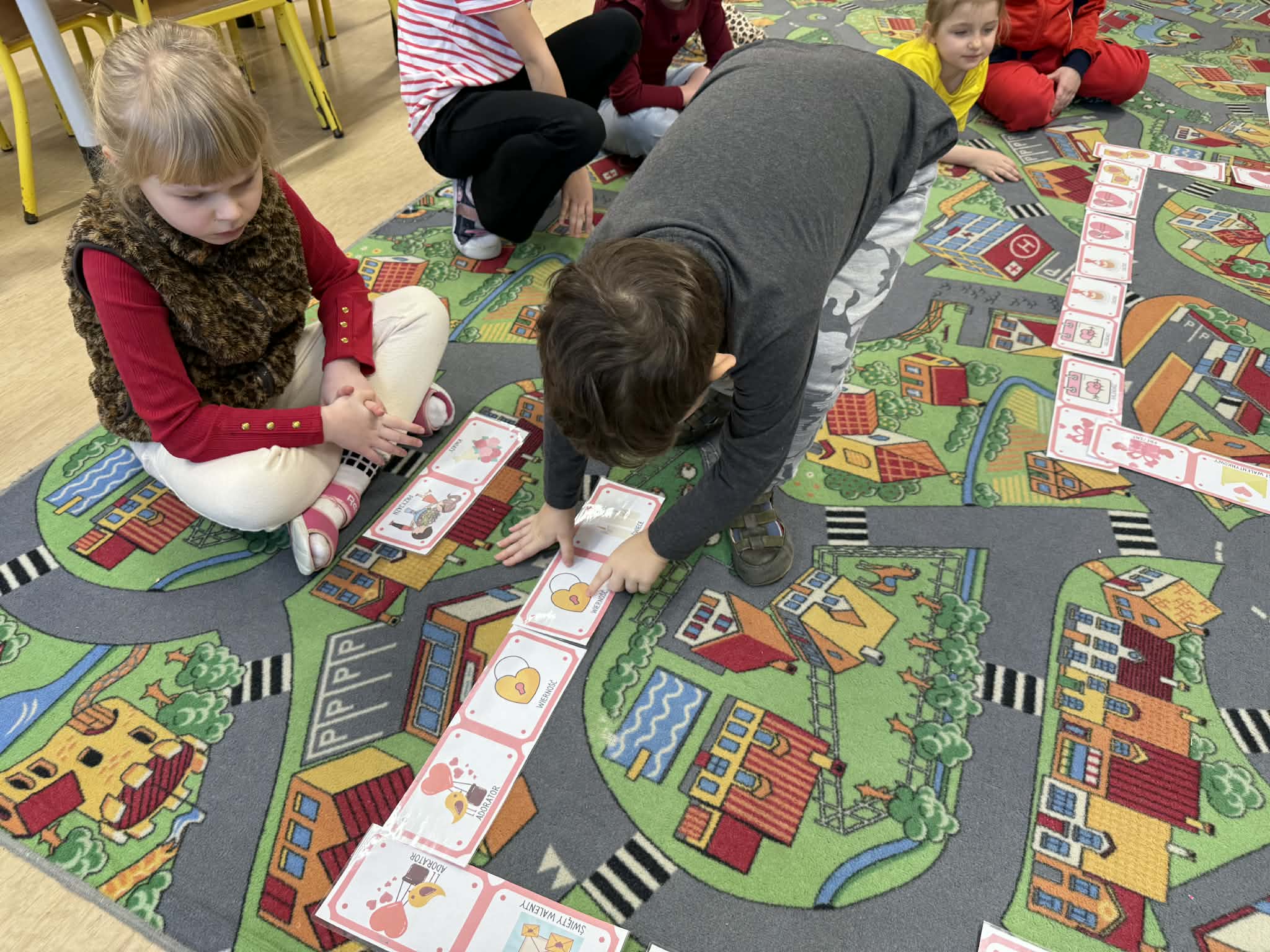 Przedszkolaki z radością szukały i łączyły połówki serduszek, wykonały piękne kartki walentynkowe oraz uczestniczyły w licznych zabawach i tańcach integracyjnych. W salach panowała radosna, pełna uśmiechu atmosfera.