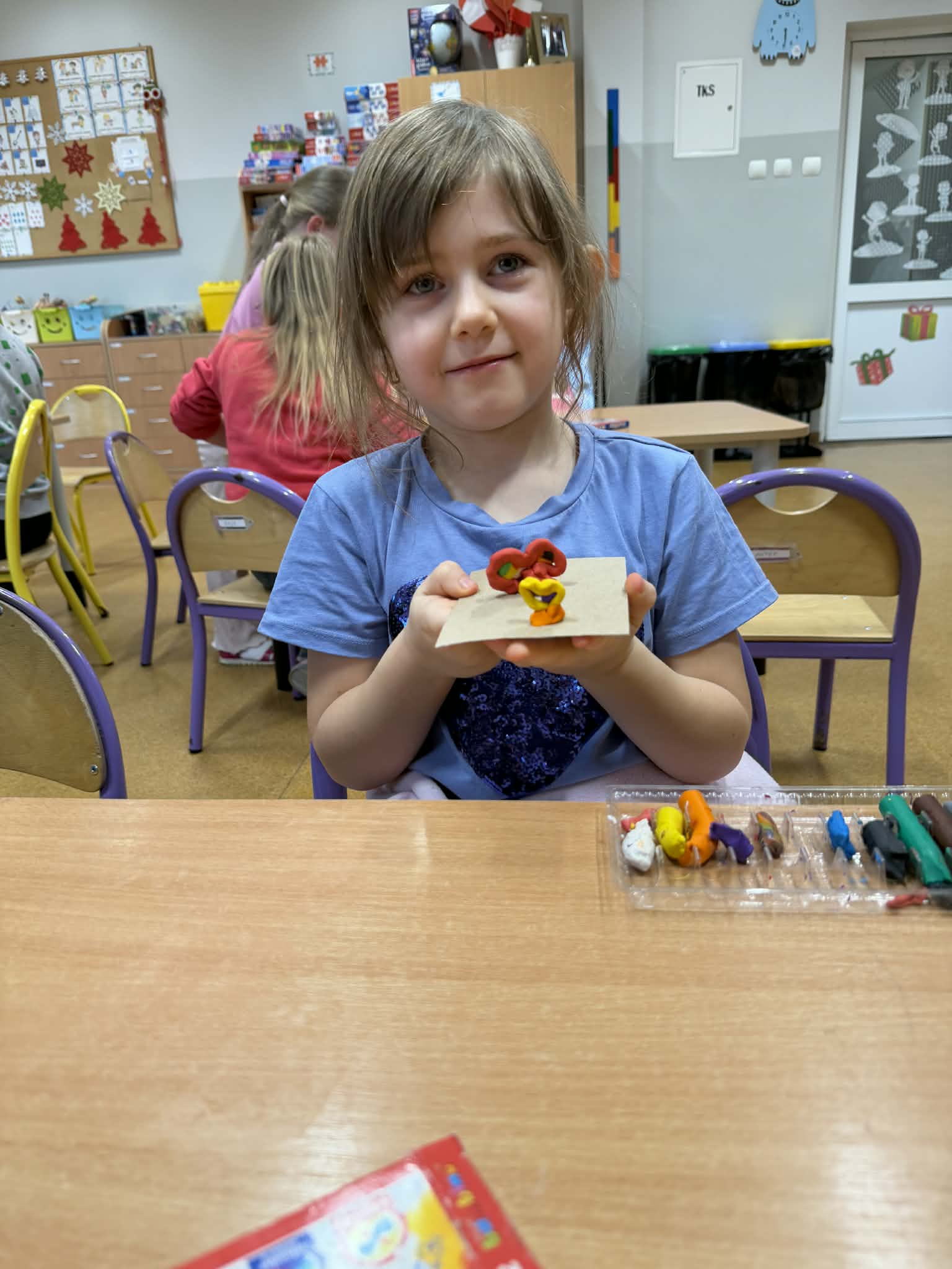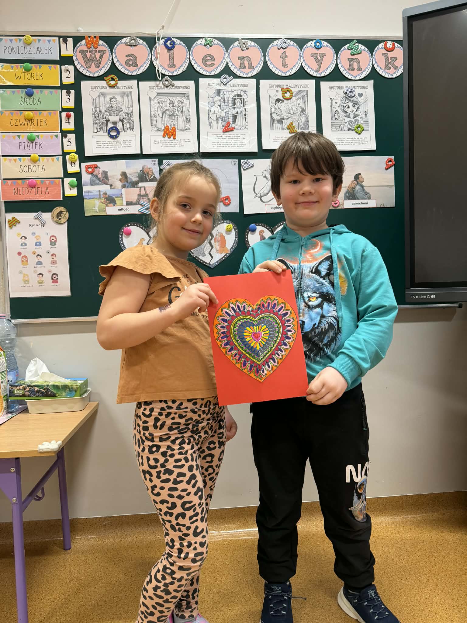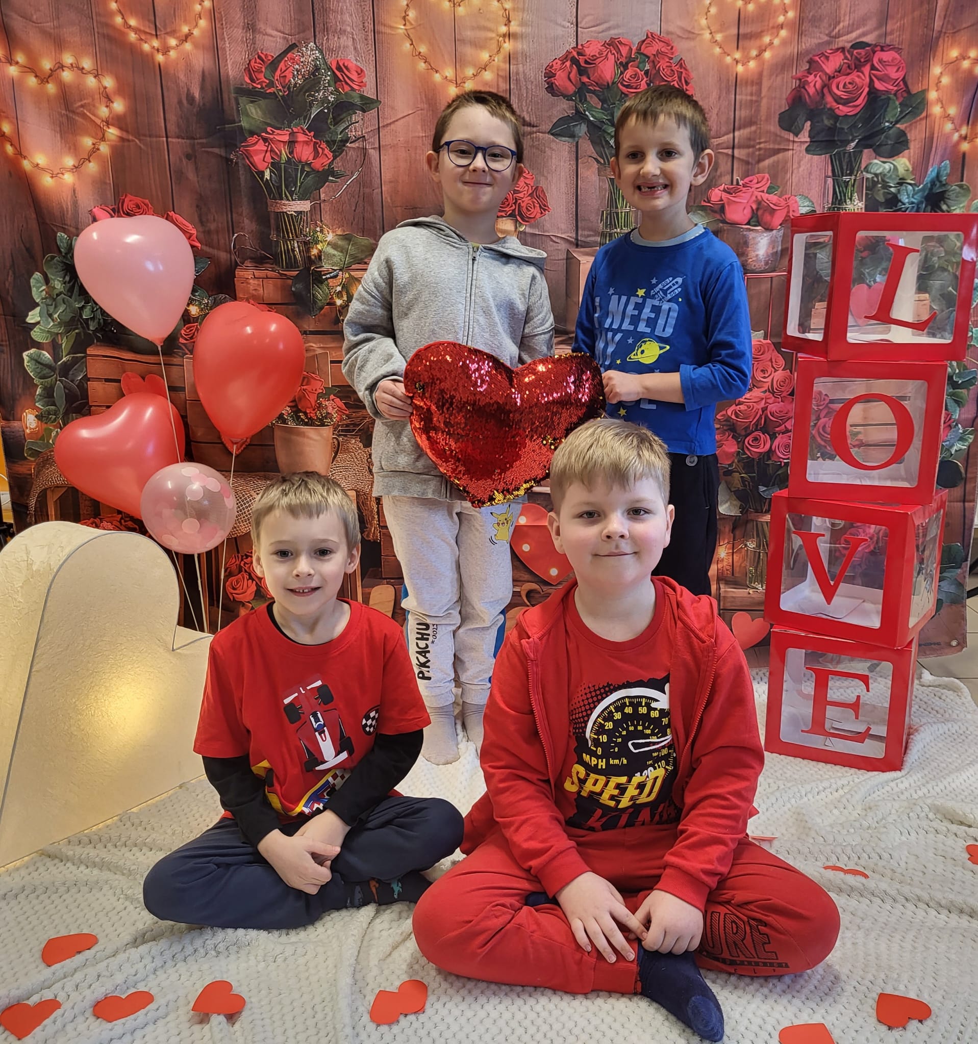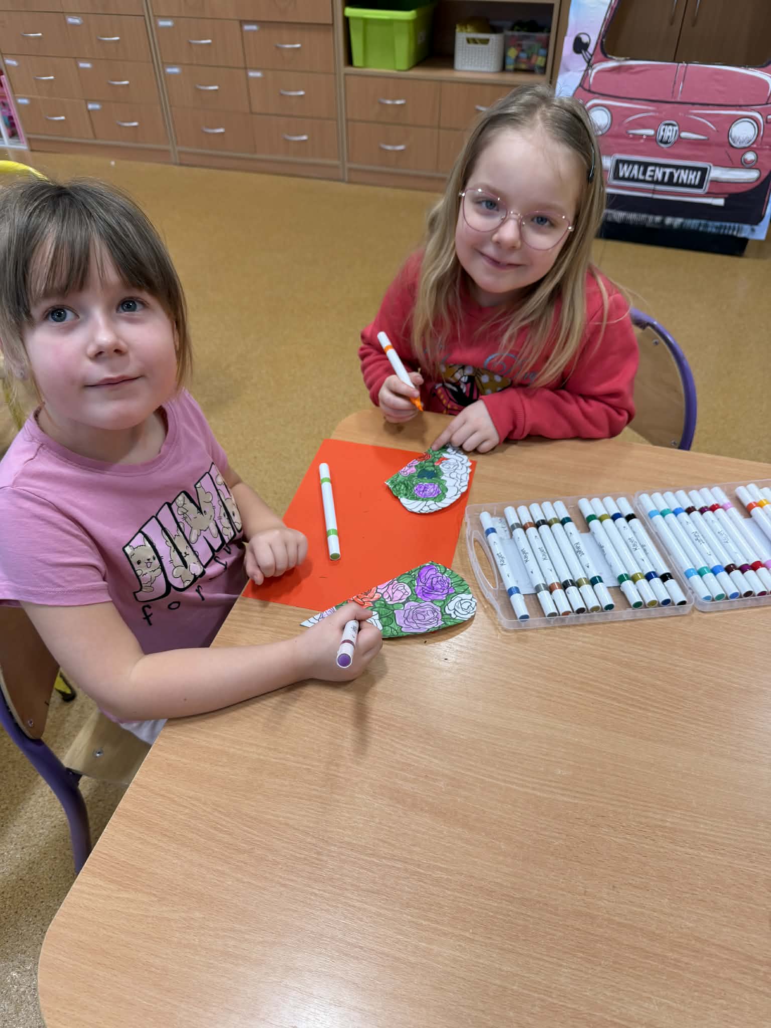 Przedszkolaki z radością szukały i łączyły połówki serduszek, wykonały piękne kartki walentynkowe oraz uczestniczyły w licznych zabawach i tańcach integracyjnych. W salach panowała radosna, pełna uśmiechu atmosfera.