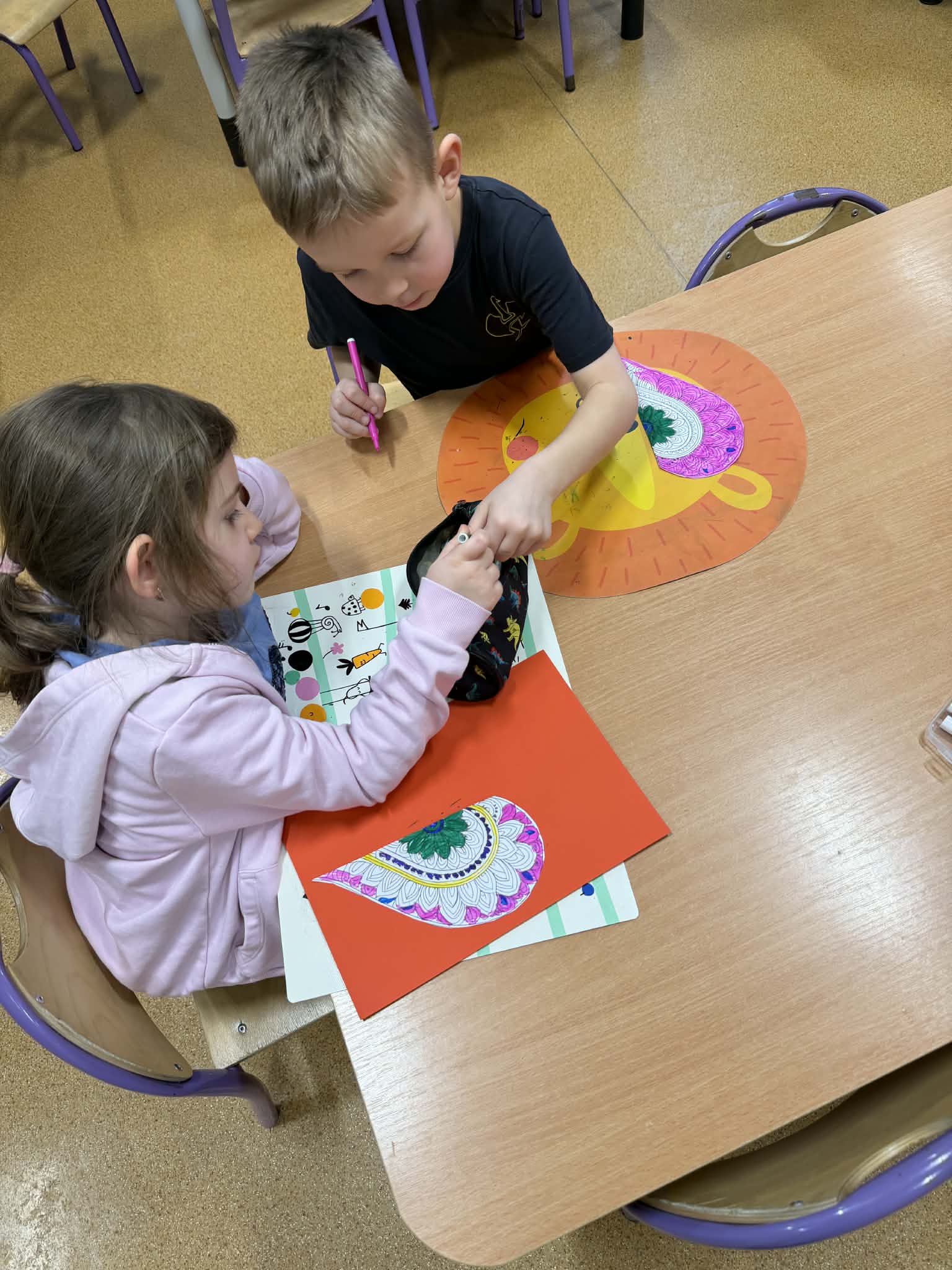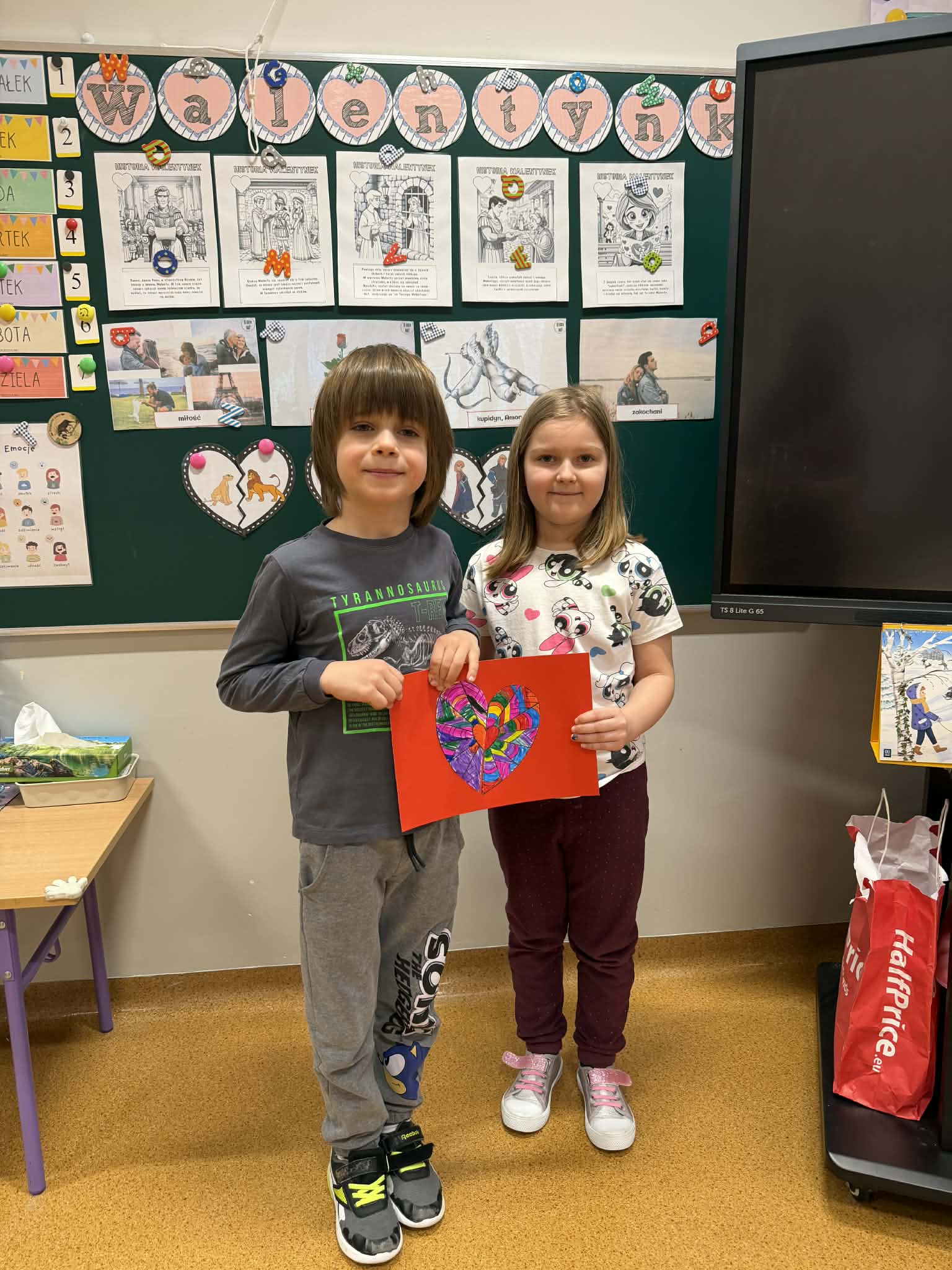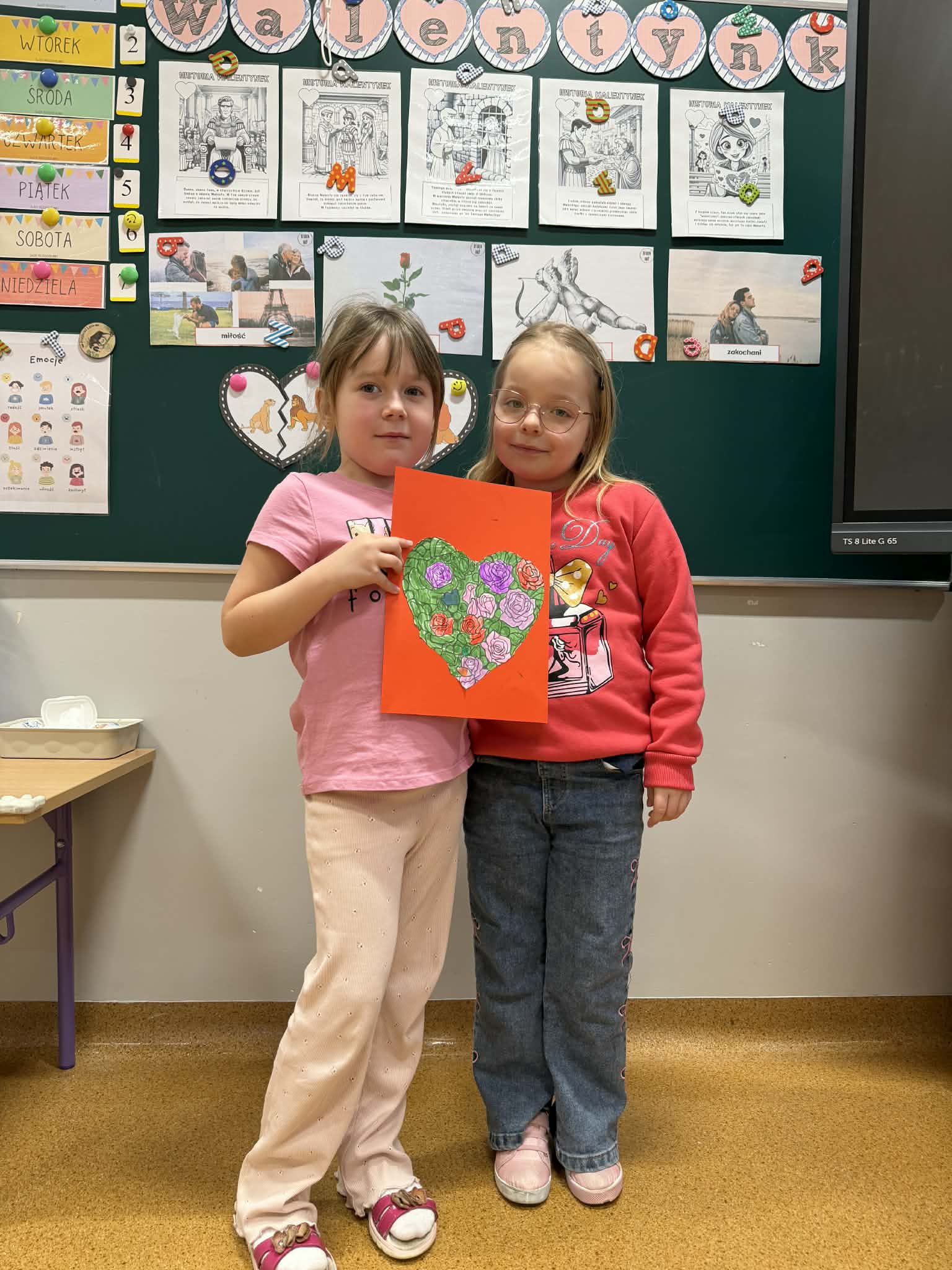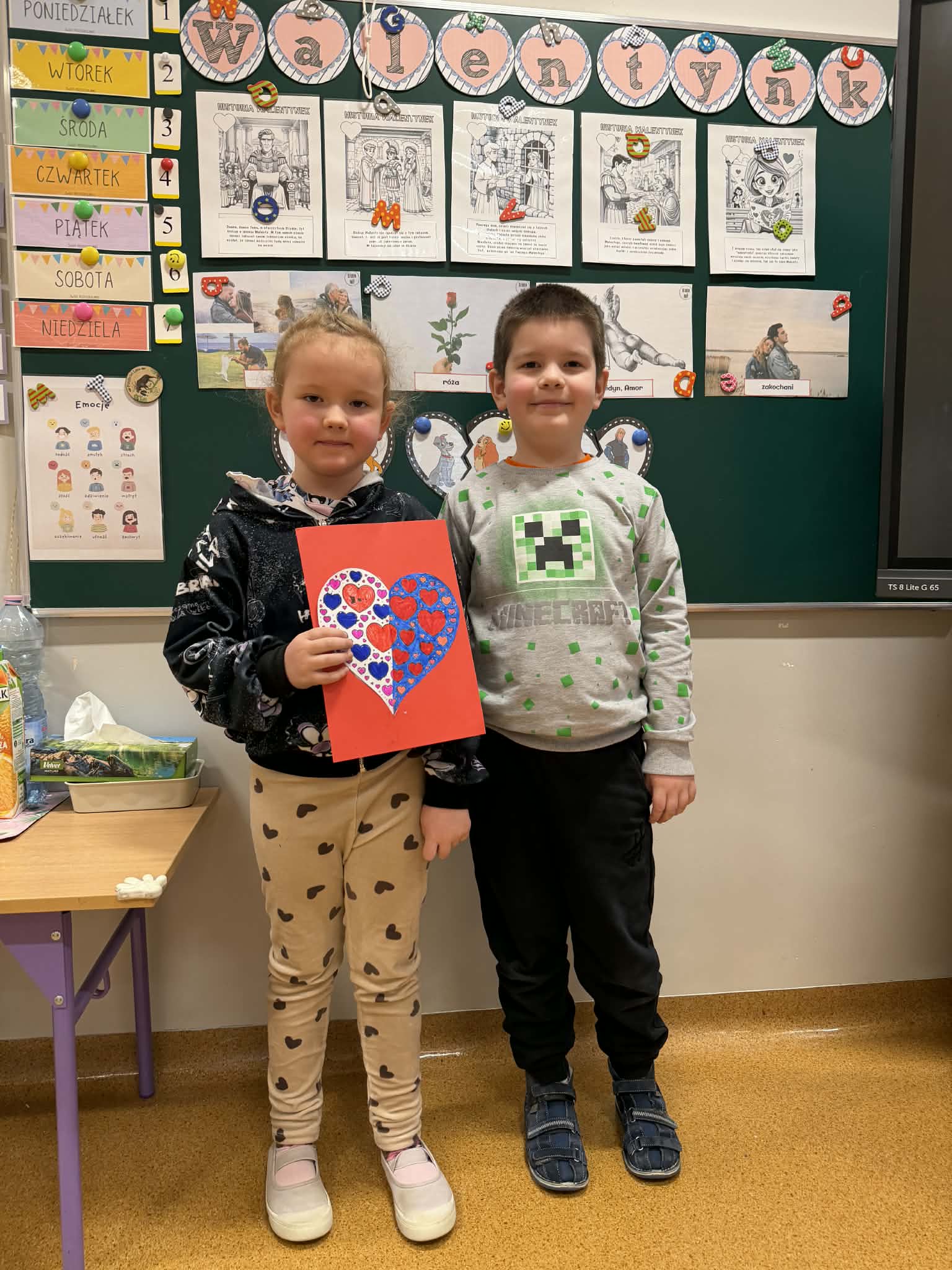Przedszkolaki z radością szukały i łączyły połówki serduszek, wykonały piękne kartki walentynkowe oraz uczestniczyły w licznych zabawach i tańcach integracyjnych. W salach panowała radosna, pełna uśmiechu atmosfera.