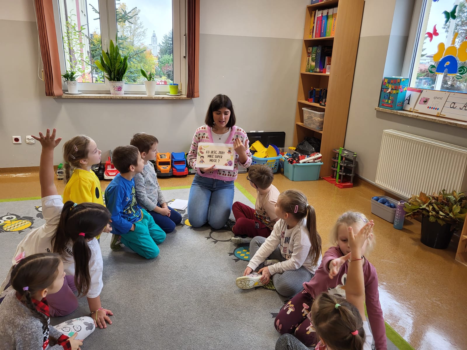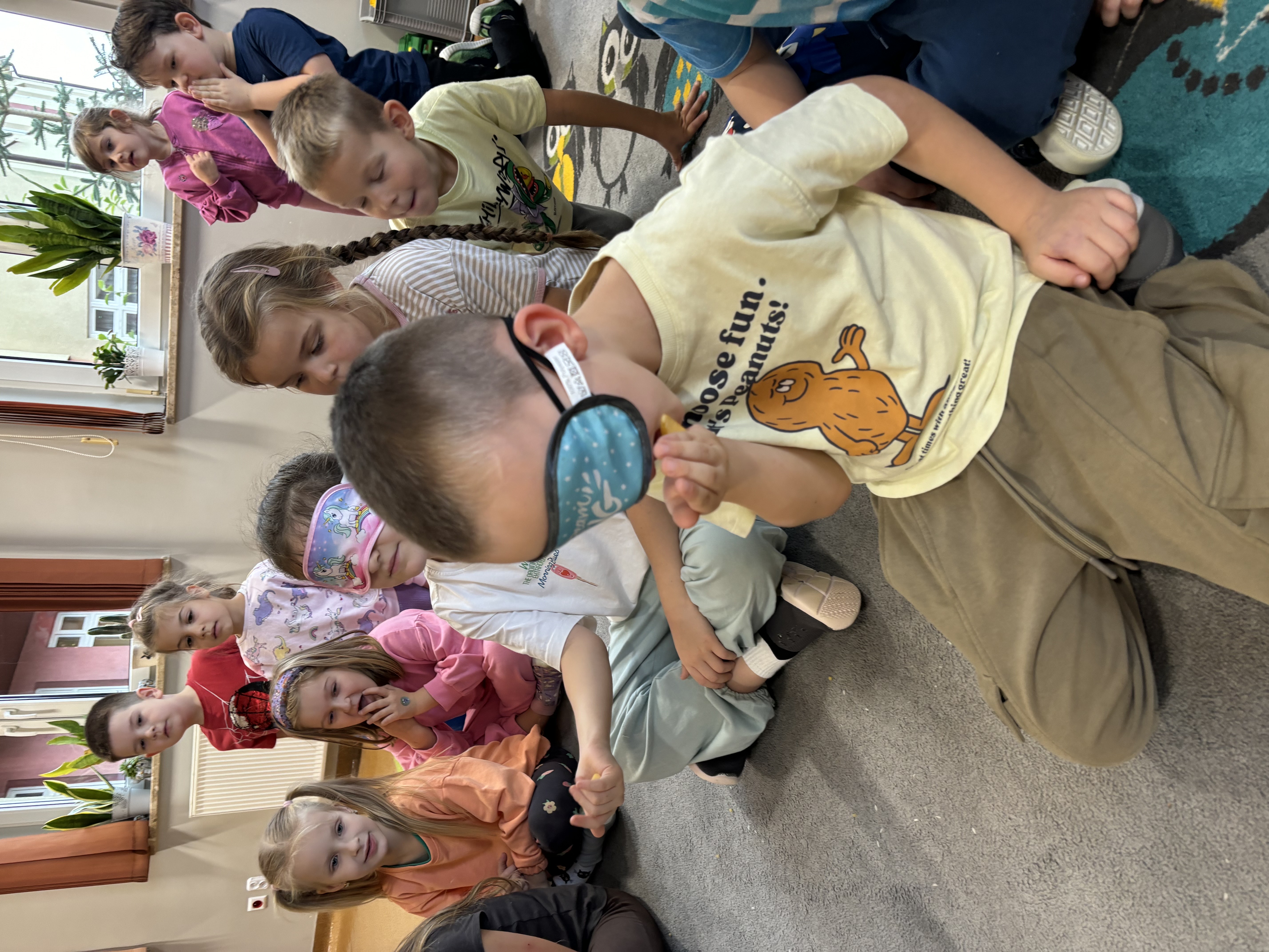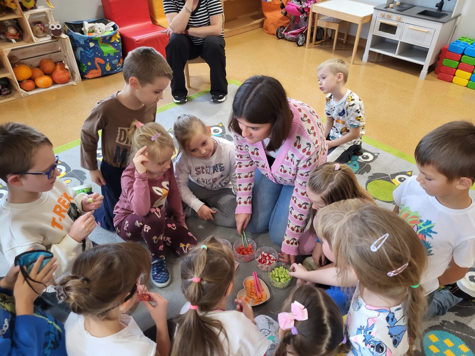 Dnia 17 października dzieci z oddziałów przedszkolnych Gumisie, Elfy i Jagódki uczestniczyły w wyjątkowych zajęciach z dietetykiem pod hasłem „Jedz więcej owoców i warzyw". Spotkanie odbyło się w ramach warsztatów „Zdrowiejemy", które miały na celu promowanie zdrowych nawyków żywieniowych wśród najmłodszych.