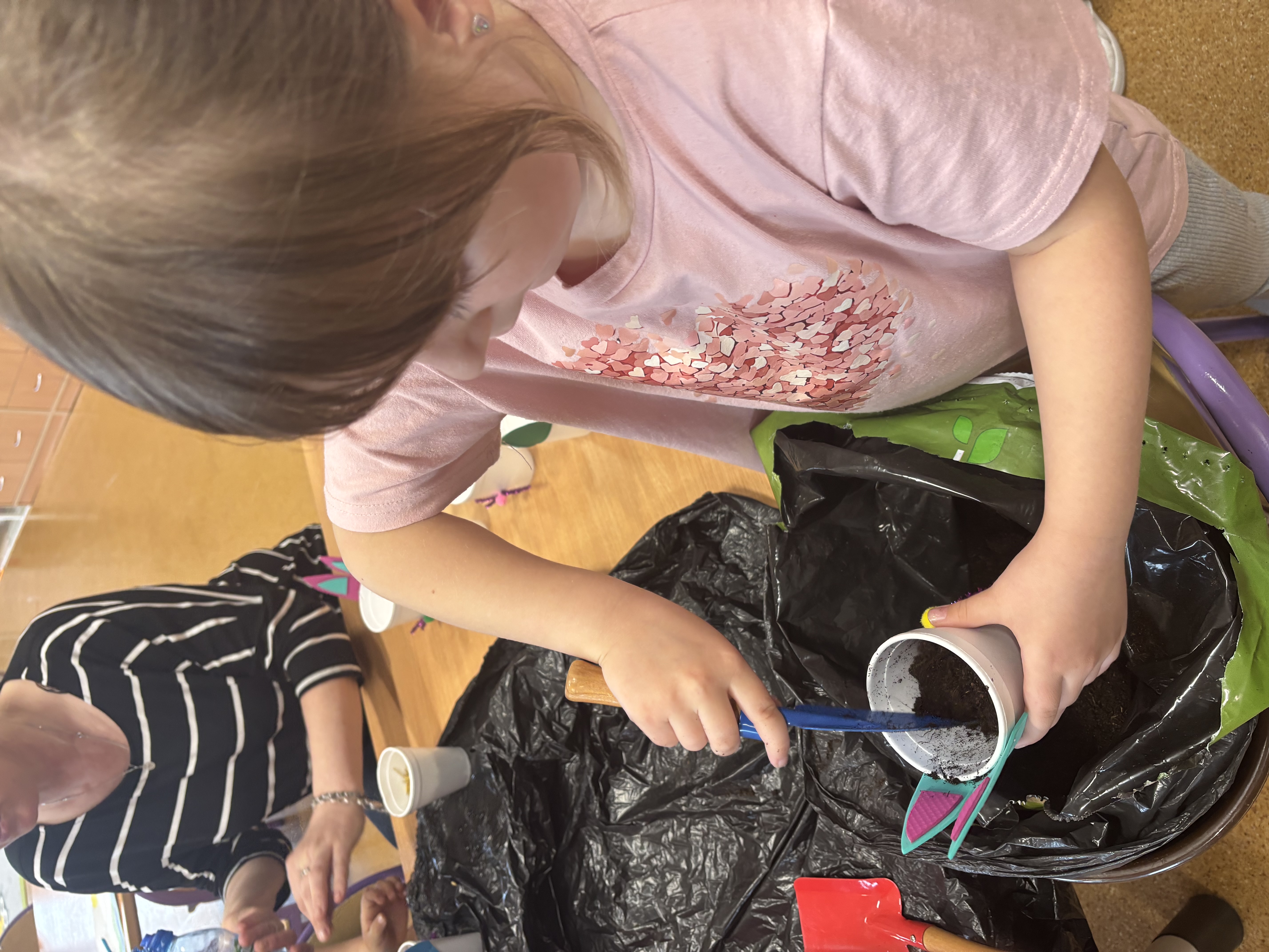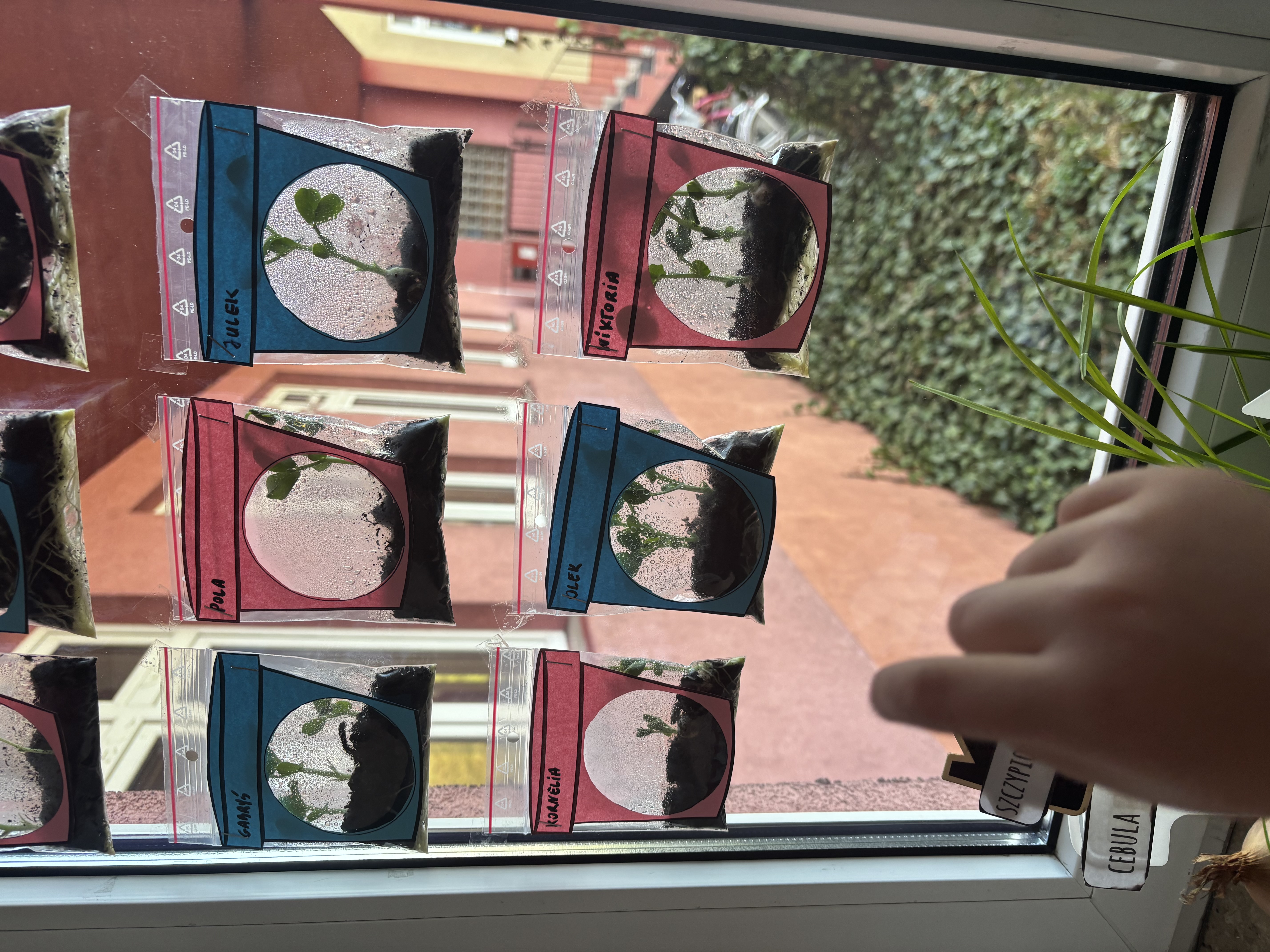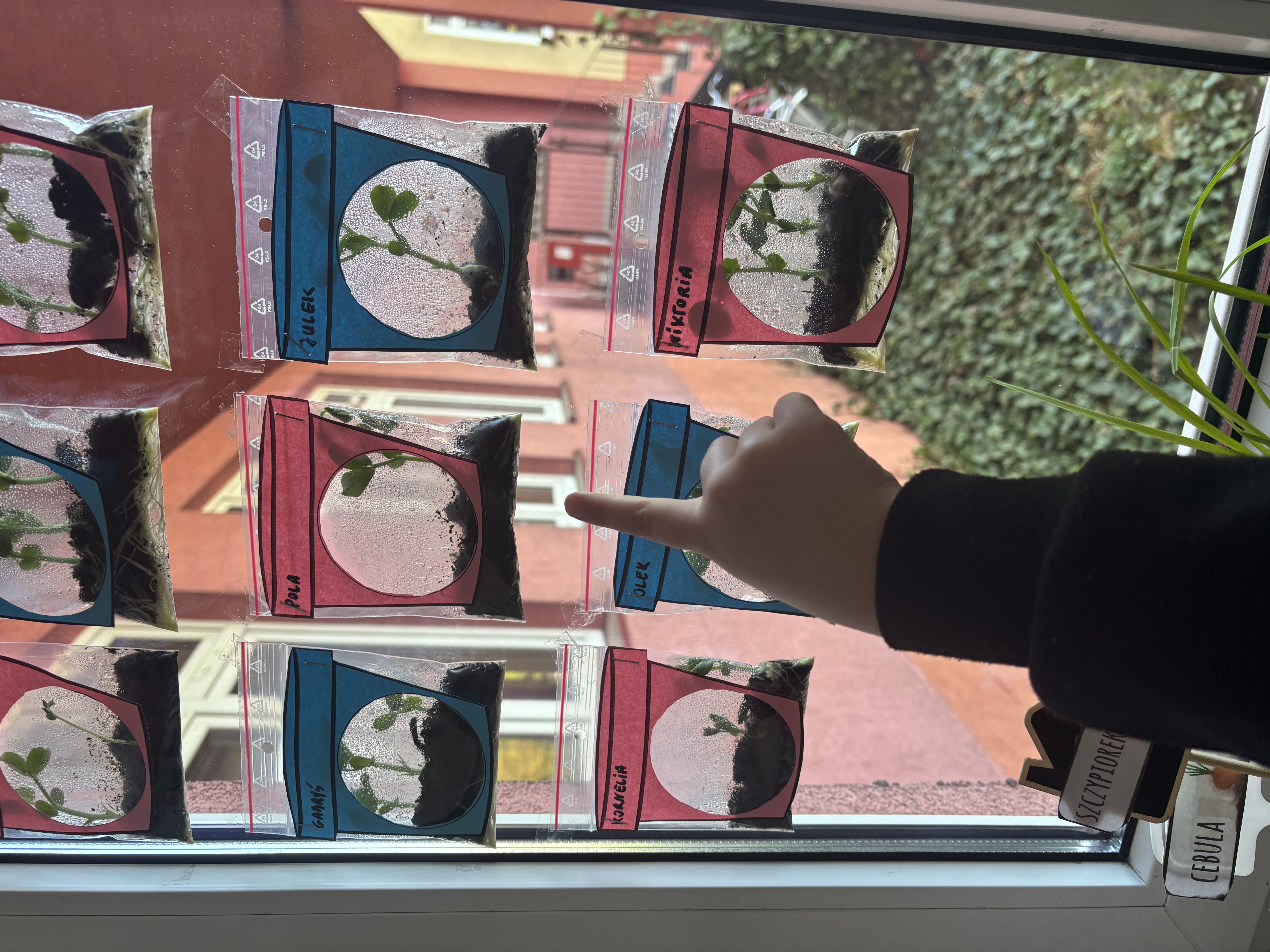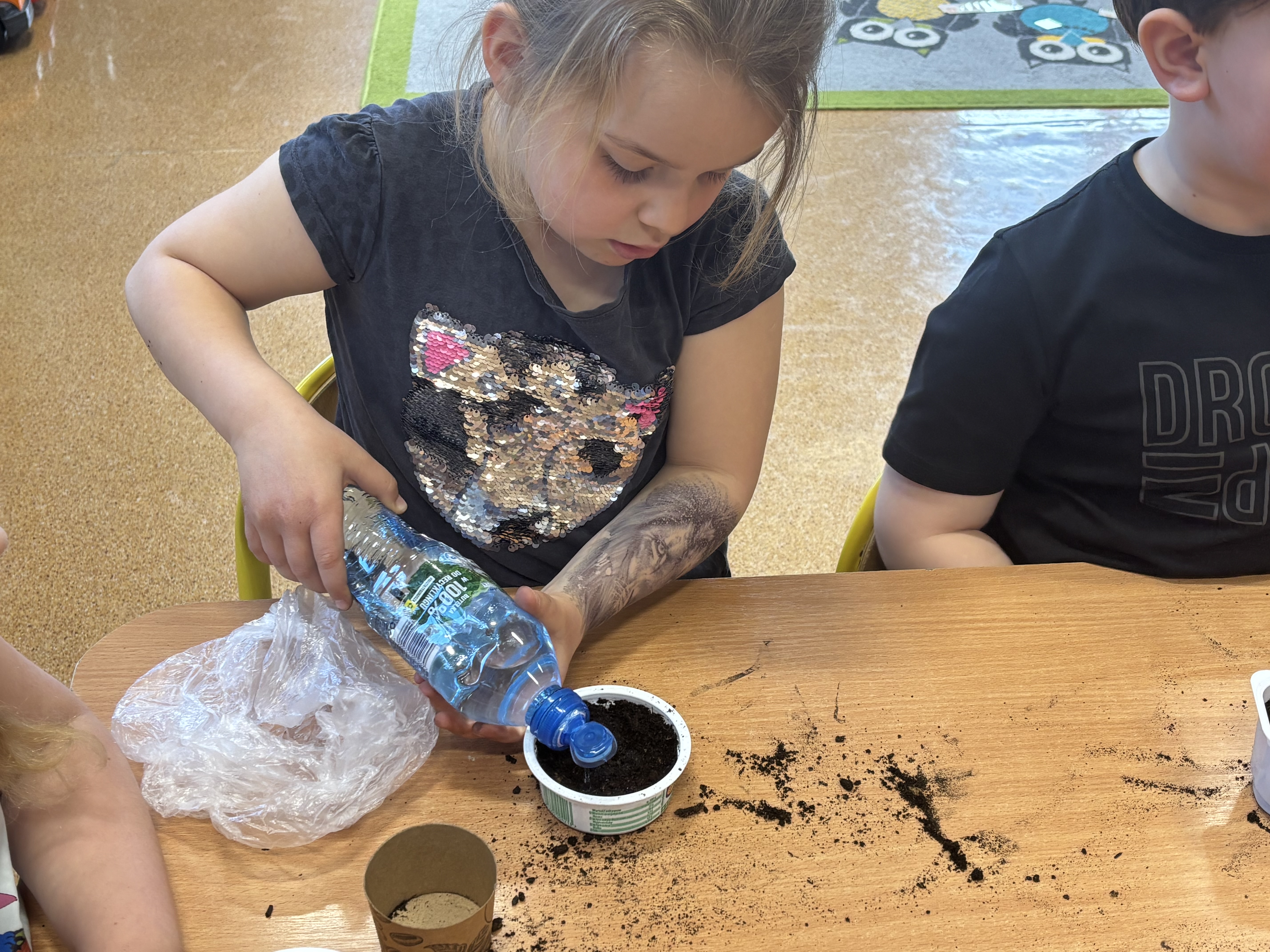 Przedszkolaki samodzielnie przygotowały „sztuczne szklarnie", w których umieściły nasiona fasoli oraz innych roślin. Dzieci codziennie obserwują, jak z małego nasionka wyrasta roślina – zauważają pierwsze korzonki, łodyżki oraz listki. To niezwykle ciekawe doświadczenie, które pozwala im na własne oczy śledzić proces wzrostu.