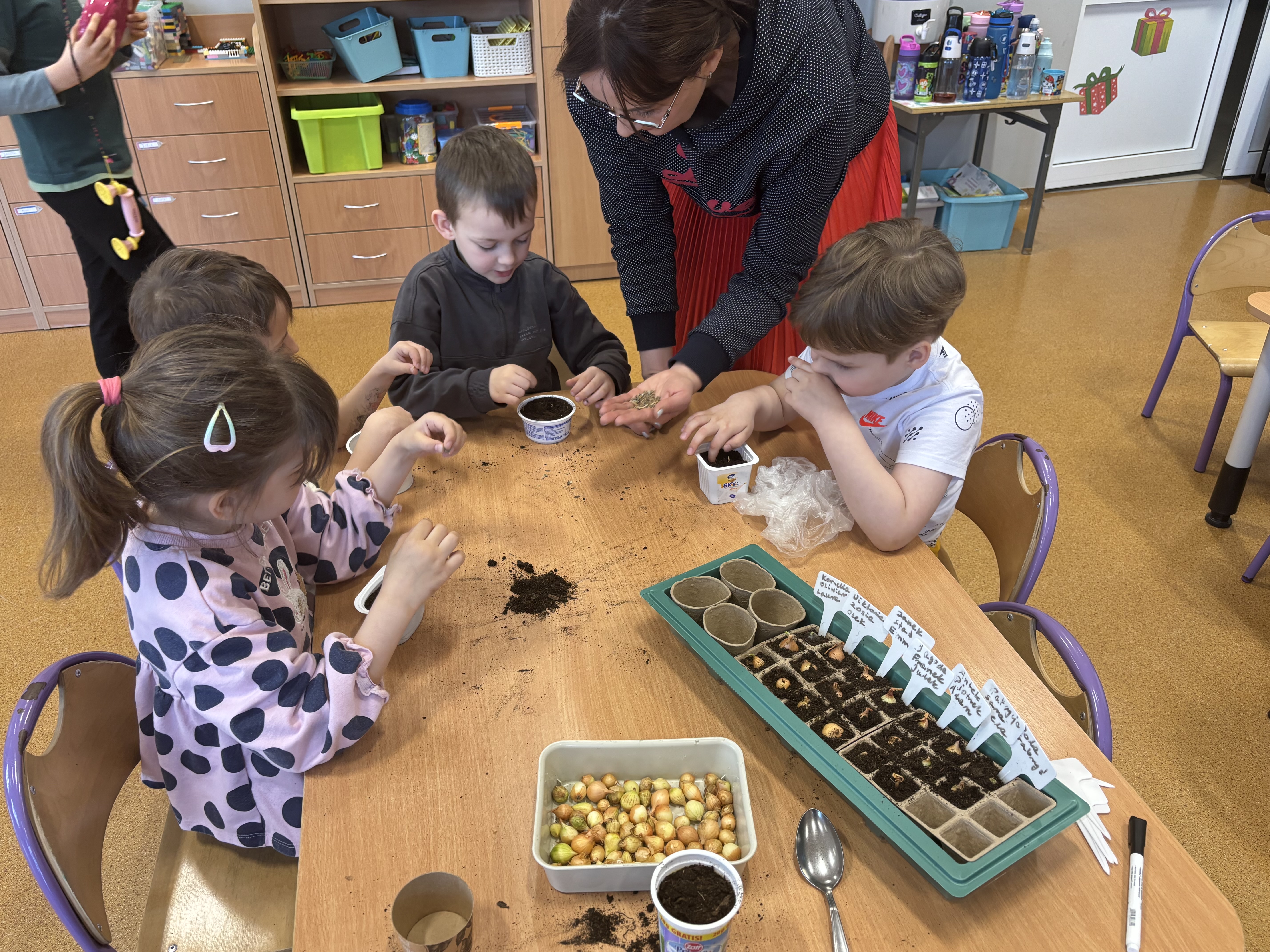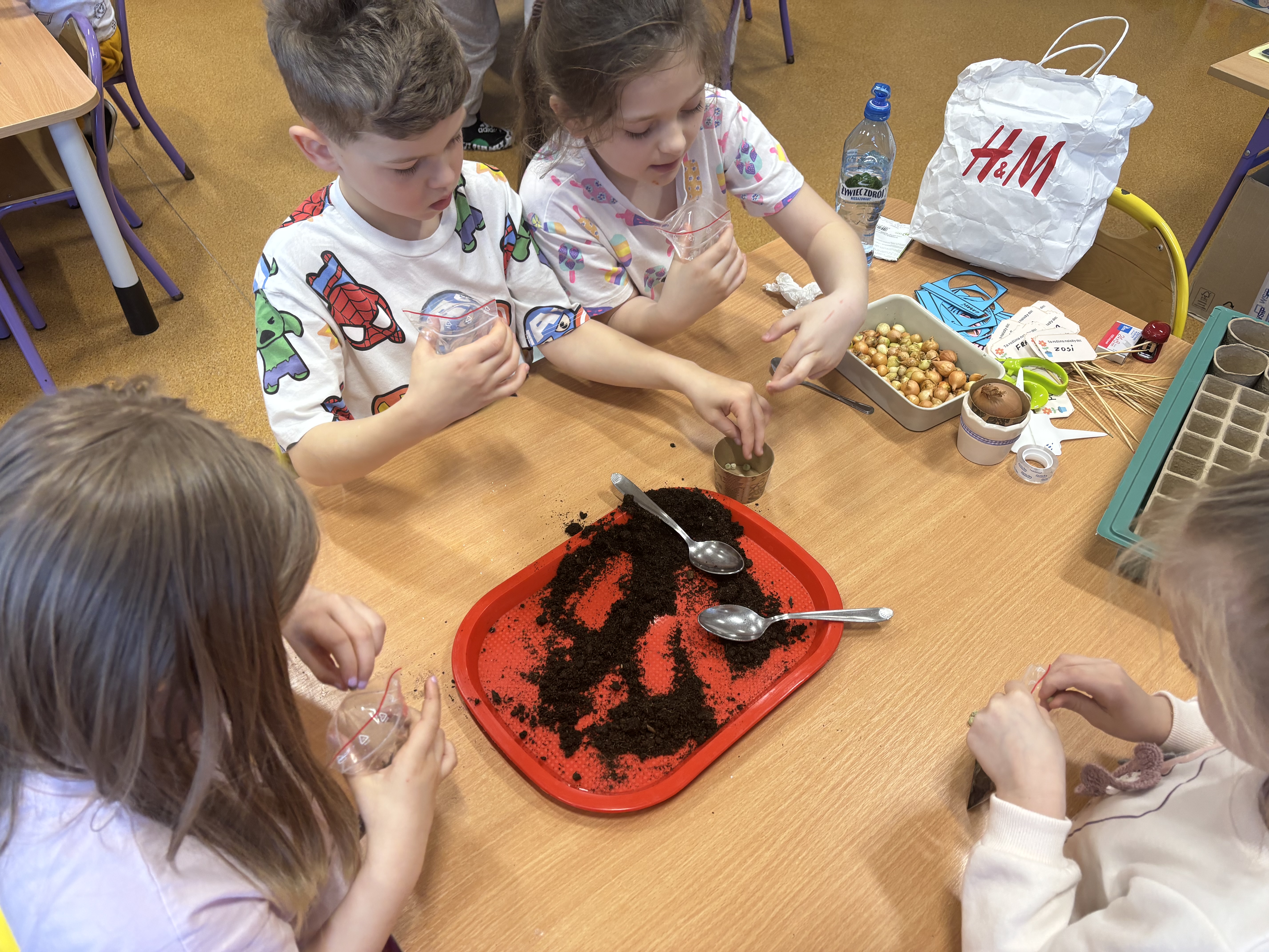Wraz z nadejściem wiosny dzieci z oddziału przedszkolnego z wielkim zaangażowaniem przystąpiły do zakładania swoich małych, zielonych ogródków w salach. Celem zajęć było nie tylko poznanie świata roślin, ale także rozwijanie ciekawości, cierpliwości i umiejętności obserwacji.