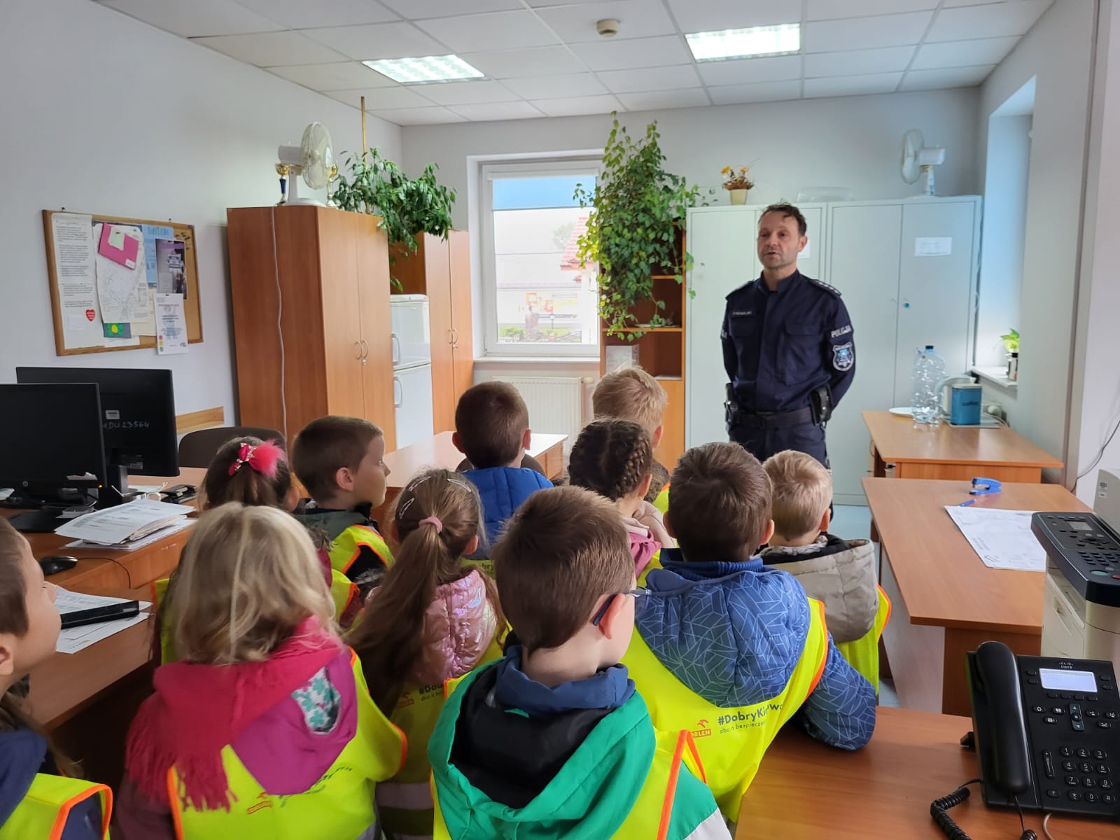 We wtorek, 7 października, dzieci z grupy Elfy miały wyjątkową okazję odwiedzić Komisariat Policji w Gąbinie. Była to nie tylko bardzo interesująca, ale przede wszystkim pouczająca wycieczka, która na długo pozostanie w pamięci naszych najmłodszych.