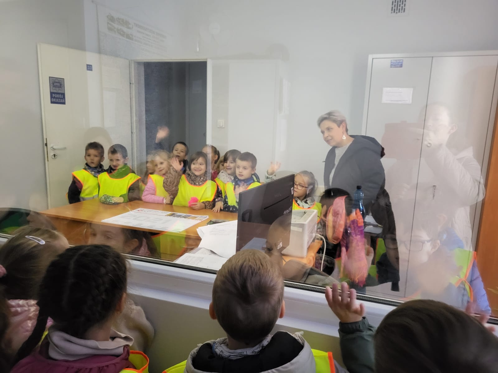 Podczas wizyty przedszkolaki mogły z bliska przyjrzeć się pracy policjantów, zwiedzić budynek komisariatu oraz zobaczyć, jak wygląda codzienna służba funkcjonariuszy. Dzieci z ogromnym zainteresowaniem oglądały radiowóz policyjny, a także miały możliwość wsiąść do środka i "przymierzyć się" do roli stróża prawa.