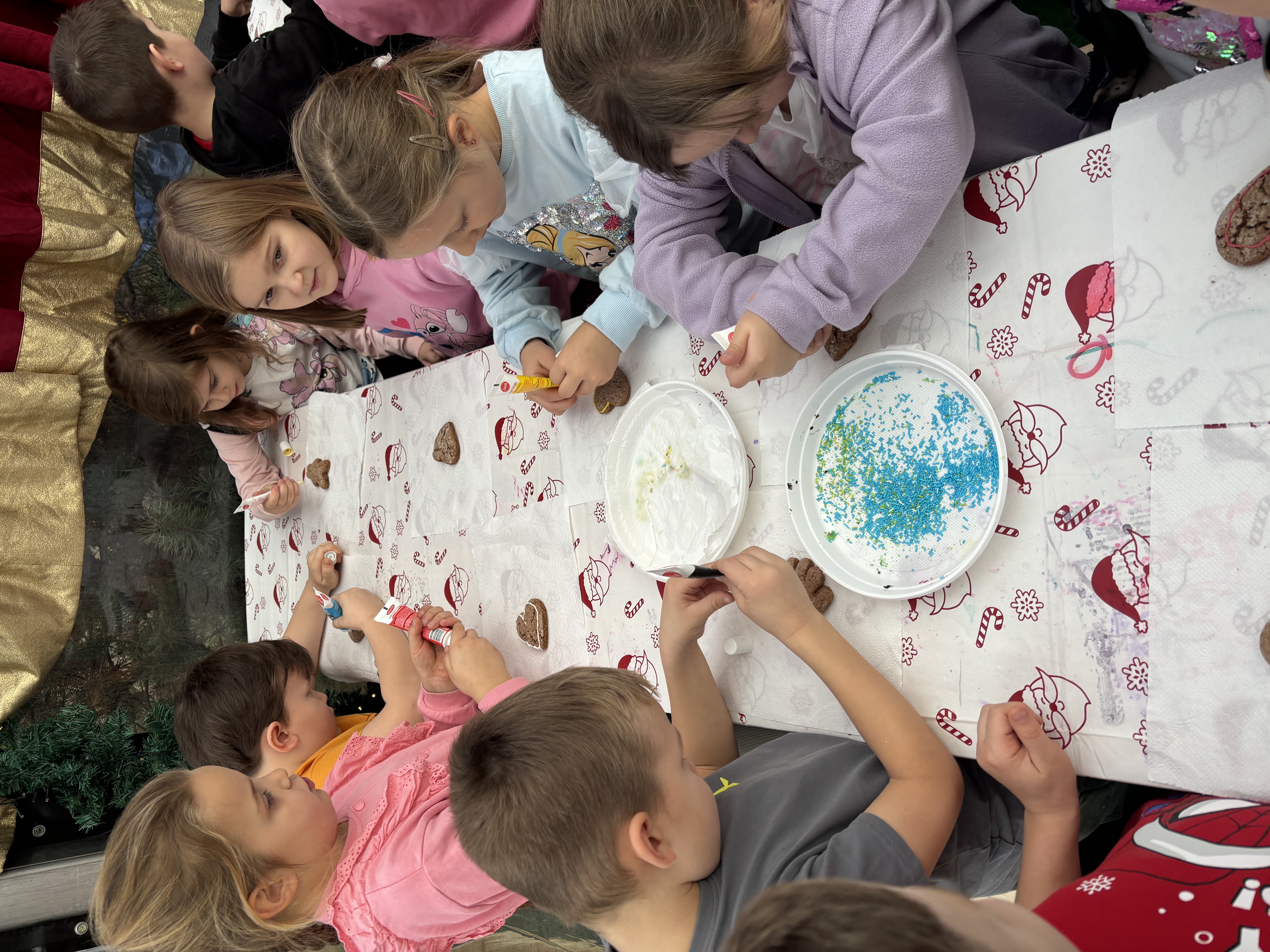 Nie zabrakło również spotkania ze Świętym Mikołajem, który przywitał dzieci w swoim magicznym świecie. Sześciolatki z zainteresowaniem słuchały opowieści elfów, brały udział w warsztatach i zabawach i oraz poznawały zwyczaje związane z okresem zimowym i świętami.