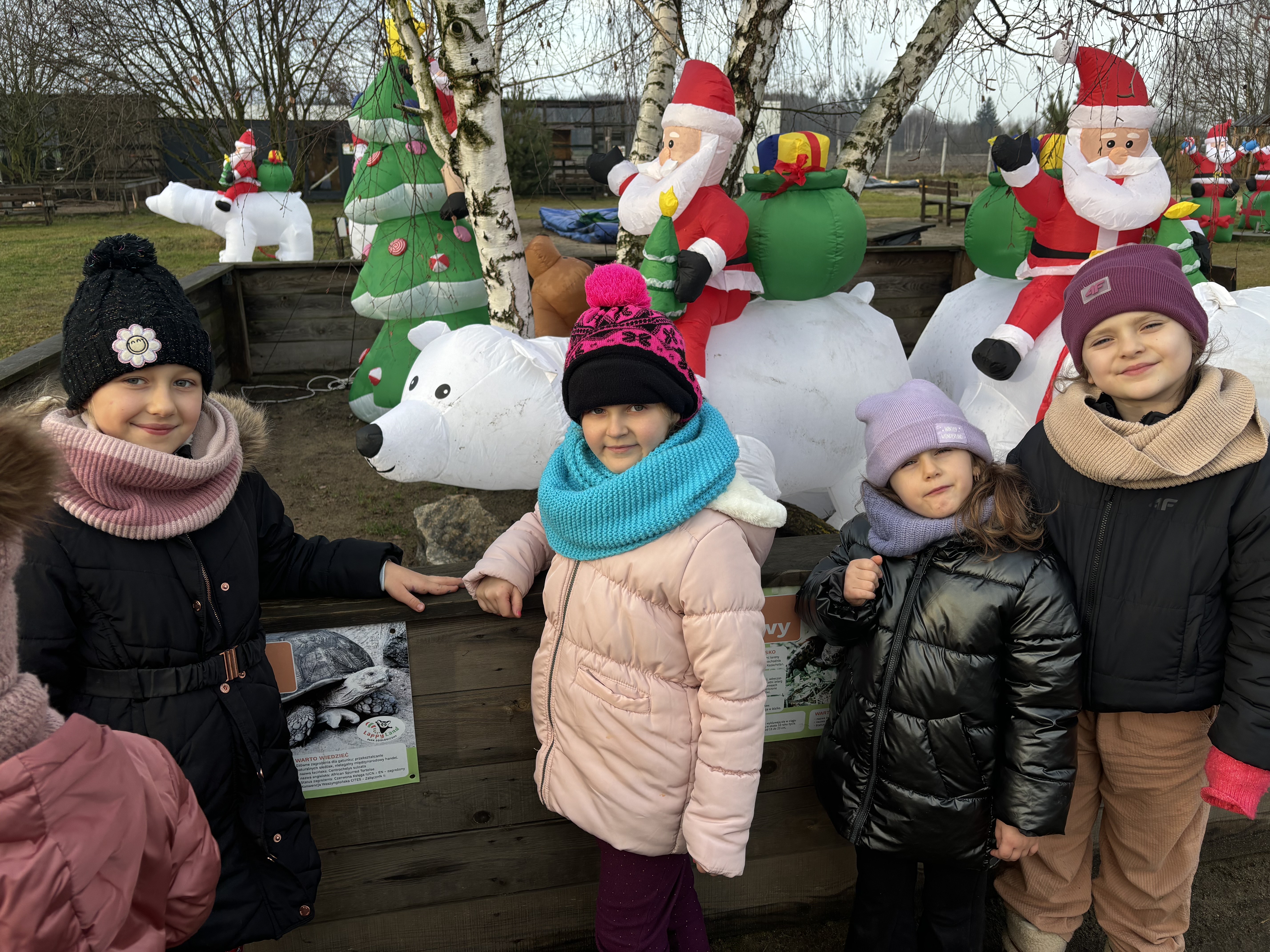 Podczas pobytu dzieci miały okazję poczuć prawdziwą, świąteczną atmosferę. Jedną z największych atrakcji było zwiedzanie mini zoo, gdzie uczniowie mogli z bliska zobaczyć zwierzęta oraz spotkać prawdziwego renifera, co wzbudziło ogromny zachwyt i radość.