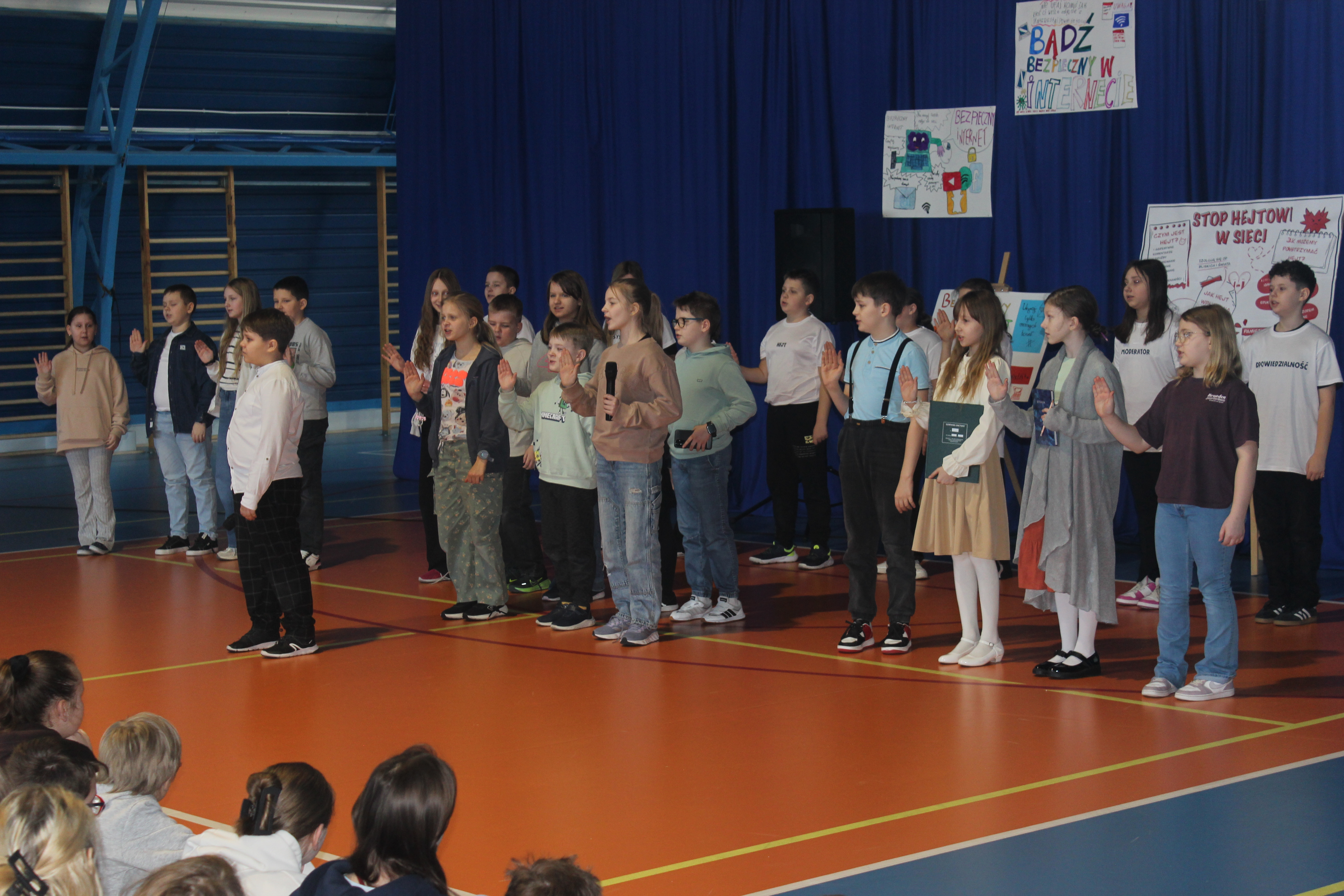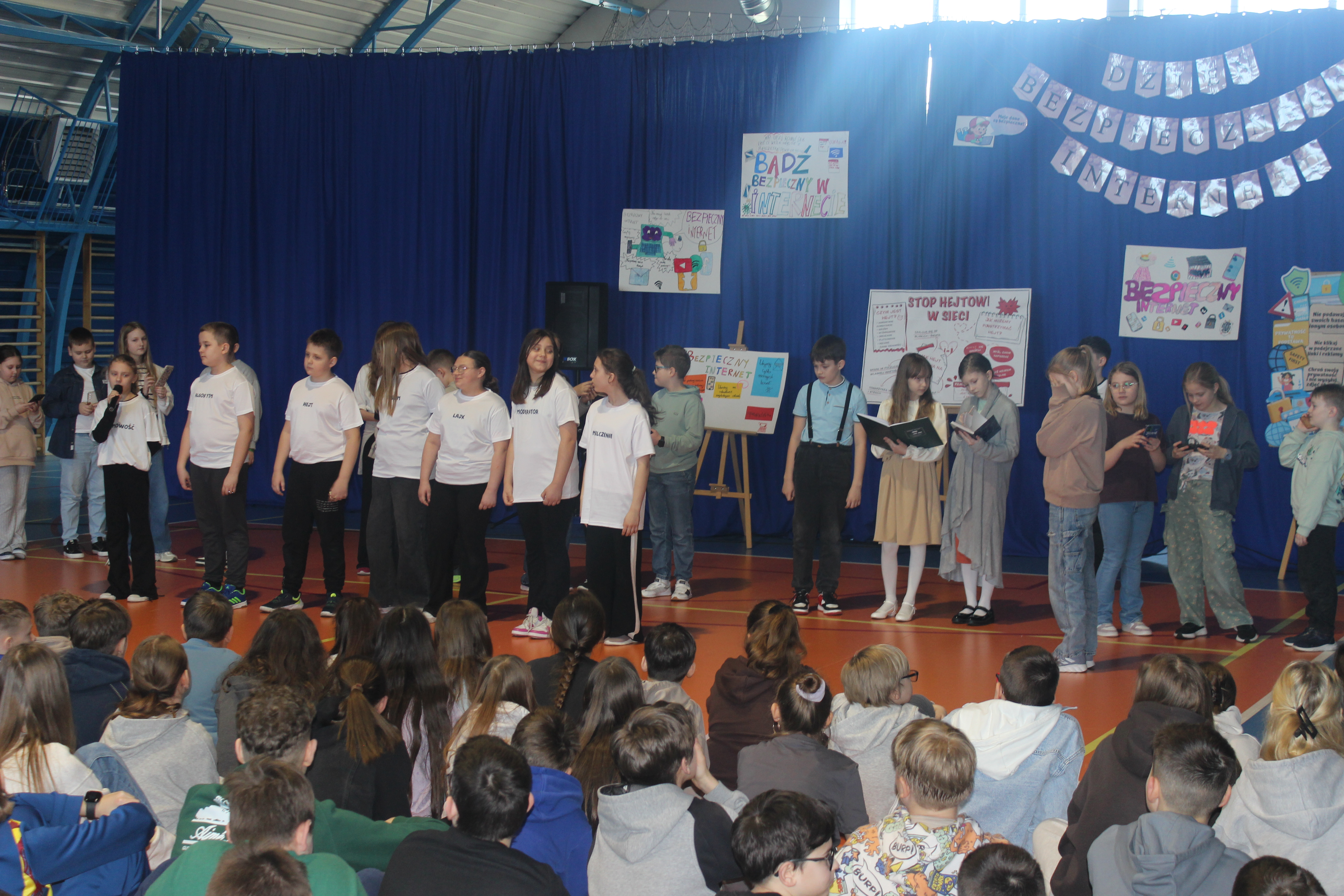Uczniowie wcielili się w role, które każdy z nas zna z codzienności: od Zosi, która mierzyła się z falą negatywnych komentarzy, po obserwatorów, którzy bali się zareagować. Na scenie pojawiły się też postacie symboliczne: Hejt, Anonimowość czy Lajk, pokazując nam, jak łatwo w sieci zapomnieć o drugim człowieku.